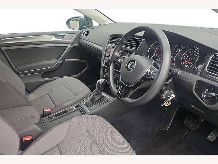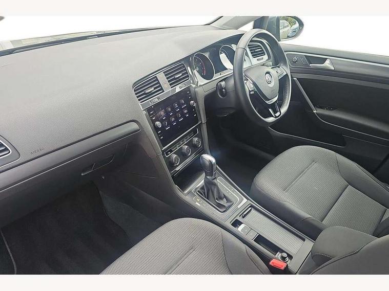 'Lights On' Reminder warning buzzer, ACC - Adaptive cruise control with front assist, forward collision warning, distance monitoring, city emergency brake and speed limiter, Bluetooth telephone and audio connection for compatible devices, Brake pad wear indicator warning light, Driver alert system, Driver profile selection, Driving Mode Selection with four preset modes - Eco, normal, sport or individual modes, Instrument cluster in white, Multifunction computer with visual gear change recommendation for fuel consumption, Power assisted speed sensitive electro-mechanical steering, Push tank flap, Speed limit display, Speedo, rev counter, electronic odometer, trip, service interval display, exterior temperature and fuel gauge, Stop/start system, Warning buzzer and light for front seatbelts unfastened, Battery regeneration during braking, XDS electronic differential lock, Composition media system, DAB Digital radio receiver, Driver Personalisation profile selection, MP3/WMA compatability, Multi device interface (MDI) with USB connection, Personalisation 1.1 profile for media, Premium USB cable in choice of either Apple or Android smartphone compatibility, SD card slot, SMS Functionality, USB and SD card connectivity, Black front air intake and radiator grille with chrome insert, Black rear diffuser, Body colour bumpers, Body colour door handles, Body colour door mirrors with integrated indicators, Dusk sensor + automatic driving lights, Electric front windows, Electric rear windows, Electrically adjustable and heated door mirrors, Fully galvanised body, Heated rear windscreen, Hidden exhaust pipe, High level 3rd brake light incorporating LED Technology, LED daytime running lights, LED front fog lights with static cornering light function, Rear fog lamp, Rear tinted glass 65% light absorbing from B pillar backwards, Rear window aerial, Rear window wash/wipe with intermittent wipe, Reflectors in all doors, Tailgate with integrated rear roof spoiler, Windscreen wipers/ intermittent wipe + 4 position delay, 12V socket in luggage compartment, 3 rear headrests, 4 load lashing points in luggage compartment, 60/40 split folding rear seat backrest, Auto fold down lever in rear seat backrest, Bag hook in luggage compartment x 2, Cooled glovebox, Cupholder cover, Dust/pollen filter, Front and rear reading lights incorporating LED technology, Front centre armrest with storage compartment and two rear air vents, Front seat back storage pockets, Grab handles front x 2, rear x 2 with integrated coat hooks, Height and reach adjustable steering wheel, Illuminated vanity mirrors, Instrument lighting white adjustable panel illumination, Interior light delay, Isofix preparation for 2 rear child seats, Load through provision with rear centre armrest and cupholders x2, Luggage compartment lighting, Overhead storage box, Passenger underseat drawer, Pearl grey headlining, Storage box in luggage compartment, Storage compartment in roof console with cover, Storage compartments in centre console, Storage compartments in front doors, Storage compartments in rear doors, Stowable luggage compartment cover, Sun visors, Variable boot floor, height adjustable and removable, Convenience Pack - Golf, Light and Sight pack - Golf, Mirror pack - Golf, 3 rear three point seatbelts, Airbags - Driver's and front passenger's, curtain airbag, Driver's knee, front side impact and passenger's airbag deactivation switch, Anti-lock Braking System (ABS) with Hydraulic Brake Assist (HBA), Automatic post collision braking system, Child locks on rear doors, Driver/Passenger optimised head restraints, Electronic parking brake with auto hold, Electronic stability control (ESC) including Electronic differential lock (EDL) and ASR (Traction control) with deactivation via infotainment system, Front ventilated disc brakes and rear disc brakes, Pre crash preventive occupant protection, Three point height adjustable front seatbelts with tensioners, Tyre pressure loss indicator, Alarm with interior protection and deactivation via infotainment system, Electronic engine immobiliser, Remote central locking with 2 remote folding keys, Brushed dark silver decorative inserts in dash and door panels, Chrome plated air vent surround, Chrome plated electric mirror adjustment light switch surround, Polar night black centre console, Steel space saver spare wheel,