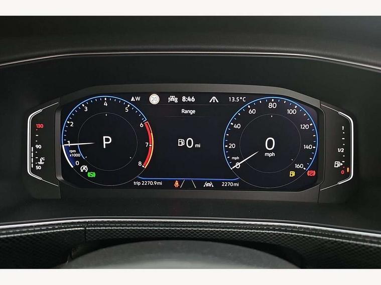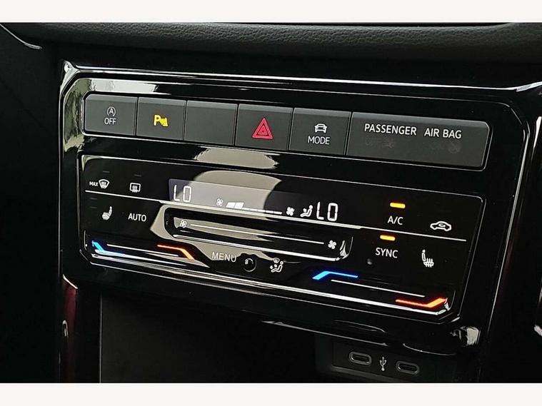 'Lights On' Reminder warning buzzer, 10.25" Digital cockpit pro, Advanced driver attention and drowsiness monitor, Blind spot monitoring, Car information display, Driver profile selection including ECO function, Dynamic road sign display, E-Sim card for online connectivity, eCall emergency call system, Front and rear parking sensors, Front assist, forward collision warning, autonomous emergency braking and speed limiter, Low washer fluid warning light, Multifunction computer with visual gear change recommendation for fuel consumption, Multifunction front facing camera for distance control, Operating permit alteration, Power assisted steering, Predictive adaptive cruise control, Preparation for navigation system with media and internet package, Preparation for We connect and We connect plus, Semi-automated driving assistance, travel assist including lane keeping system Lane Assist and emergency assisst, Speedo, rev counter, electronic odometer, trip, service interval display, exterior temperature and fuel gauge, Warning sound and light for doors and tailgate open, Warning sound and light for front seatbelts unfastened, Wireless Car net app connect with Apple CarPlay, combined functionality of Apple CarPlay/Android Auto and MirrorLink, Wireless charging, Misfuel prevention device, Start-stop system with battery regeneration (recuperation - energy recovery during braking), 2 USB C ports in front, 2 USB charging sockets on the centre console in the rear charging capacity upto 45W, Diversity antenna for FM reception, Music playback - MP3, WMA and AAC files, Radio, Automatic dimming interior rear view mirror, Automatic hazard lights activation under emergency braking, Automatic headlight control with LED separate daytime running light and coming home and leaving home feature, Body colour door handles, Body colour door mirrors, Body coloured bumpers, Dynamic headlight range control with self adjusting whilst driving, Electric folding door mirror, adjustable, heated with front passenger exterior mirror lowering function, Exterior mirrors convex on the left and aspherical on the right, Front and rear electric windows, Front door sill protectors with R-Line logo, Galvanised body, Heat insulating and laminated safety glass windshield, Heat insulating darkened glass in side and rear windows, High Beam Assist, automatic sensing for switching between dipped and main beam, LED rear combination lights, LED third brake light, Lower door sills and door pillars in black, Privacy glass for rear side windows and rear window, Rain sensor, Rear fog light on one side, reversing light on both sides, Rear side wing doors, Rear window aerial, Rear window wiper with intermittent control, Reflectors in all doors, Scuff plates, Tailgate with integrated roof spoiler, 12V Accessory socket in centre console, 2 Front and rear reading lights incorporating LED technology, 3 rear head restraints, 3 seat bench in 2nd row, 60/40 split folding rear seat backrest, Air care climatronic 2 zone air conditioning system, Ambient lighting, Brushed stainless steel pedals, Chrome plated radiator grille inserts, air vent surrounds and light switch surrounds, Cloth upholstery, Comfort front sport seats, Door and side trim panel, Drawer under drivers seat, Driver and front passenger sunvisor with vanity mirror, Dust and pollen filter, Front + rear carpet mats, Front centre armrest with storage compartment, Front footwell illumination, Front seat back storage pockets, Glove compartment door with light, Heated front seats, Heating and fresh air system with 4 stage blower, Height/reach adjust steering wheel, Instrument lighting white adjustable panel illumination, Interior light with switch off delay and dimmer, Isofix anchors for child seats on outer rear seats and front passenger seats, Leather gearshift handle, Leather wrapped multifunction steering wheel, Luggage compartment floor, Luggage compartment lighting, Manual front seats with height adjustment, Padded dashboard, Removable luggage compartment cover, Single front passenger seat, Storage compartment in drivers and front passengers door, Titanium black roof lining, Unsplit sliding rear seat bench, 3 point outer rear seat belts with ECE label, 3 Point seatbelt for centre rear seat, Anti-lock Braking System (ABS) with Hydraulic Brake Assist (HBA), Automatic post collision braking system, Disc brakes in front, Disc brakes in rear, Driver and front passenger safety-optimised head restraints, Drivers and Front Passengers airbags with front passengers airbag deactivation switch, ESC with EDL and ASR (traction control), Extended and predictive pedestrian/cyclist protection, Front and rear passenger curtain airbag system including front side airbags, Height adjustable front 3 point seatbelts + pretensioners, Hill start assist, Pre crash preventive occupant protection, Proactive passenger protection system in combination with front assist, Rear door child safety locks, Rigid safety cell with front and rear crumple zones, Single tone horn, Tyre pressure loss indicator, Volkswagen roadside assistance, Alarm with interior protection, Anti theft alarm system, Electronic engine immobiliser, Remote tailgate unlocking using key fob, Titanium Black Decorative inserts - R Line, Low rolling resistance tyres,