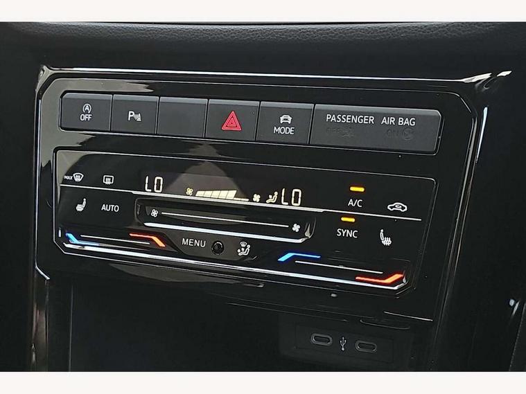 'Lights On' Reminder warning buzzer, 10.25" Digital cockpit pro, Advanced driver attention and drowsiness monitor, Blind spot monitoring, Car information display, Driver profile selection including ECO function, Dynamic road sign display, E-Sim card for online connectivity, eCall emergency call system, Front and rear parking sensors, Front assist, forward collision warning, autonomous emergency braking and speed limiter, Low washer fluid warning light, Multifunction computer with visual gear change recommendation for fuel consumption, Multifunction front facing camera for distance control, Operating permit alteration, Power assisted steering, Predictive adaptive cruise control, Preparation for navigation system with media and internet package, Preparation for We connect and We connect plus, Semi-automated driving assistance, travel assist including lane keeping system Lane Assist and emergency assisst, Speedo, rev counter, electronic odometer, trip, service interval display, exterior temperature and fuel gauge, Warning sound and light for doors and tailgate open, Warning sound and light for front seatbelts unfastened, Wireless Car net app connect with Apple CarPlay, combined functionality of Apple CarPlay/Android Auto and MirrorLink, Wireless charging, Misfuel prevention device, Start-stop system with battery regeneration (recuperation - energy recovery during braking), 2 USB C ports in front, 2 USB charging sockets on the centre console in the rear charging capacity upto 45W, Diversity antenna for FM reception, Music playback - MP3, WMA and AAC files, Radio, Automatic dimming interior rear view mirror, Automatic hazard lights activation under emergency braking, Automatic headlight control with LED separate daytime running light and coming home and leaving home feature, Body colour door handles, Body colour door mirrors, Body coloured bumpers, Dynamic headlight range control with self adjusting whilst driving, Electric folding door mirror, adjustable, heated with front passenger exterior mirror lowering function, Exterior mirrors convex on the left and aspherical on the right, Front and rear electric windows, Front door sill protectors with R-Line logo, Galvanised body, Heat insulating and laminated safety glass windshield, Heat insulating darkened glass in side and rear windows, High Beam Assist, automatic sensing for switching between dipped and main beam, LED rear combination lights, LED third brake light, Lower door sills and door pillars in black, Privacy glass for rear side windows and rear window, Rain sensor, Rear fog light on one side, reversing light on both sides, Rear side wing doors, Rear window aerial, Rear window wiper with intermittent control, Reflectors in all doors, Scuff plates, Tailgate with integrated roof spoiler, 12V Accessory socket in centre console, 2 Front and rear reading lights incorporating LED technology, 3 rear head restraints, 3 seat bench in 2nd row, 60/40 split folding rear seat backrest, Air care climatronic 2 zone air conditioning system, Ambient lighting, Brushed stainless steel pedals, Chrome plated radiator grille inserts, air vent surrounds and light switch surrounds, Cloth upholstery, Comfort front sport seats, Door and side trim panel, Drawer under drivers seat, Driver and front passenger sunvisor with vanity mirror, Dust and pollen filter, Front + rear carpet mats, Front centre armrest with storage compartment, Front footwell illumination, Front seat back storage pockets, Glove compartment door with light, Heated front seats, Heating and fresh air system with 4 stage blower, Height/reach adjust steering wheel, Instrument lighting white adjustable panel illumination, Interior light with switch off delay and dimmer, Isofix anchors for child seats on outer rear seats and front passenger seats, Leather gearshift handle, Leather wrapped multifunction steering wheel, Luggage compartment floor, Luggage compartment lighting, Manual front seats with height adjustment, Padded dashboard, Removable luggage compartment cover, Single front passenger seat, Storage compartment in drivers and front passengers door, Titanium black roof lining, Unsplit sliding rear seat bench, 3 point outer rear seat belts with ECE label, 3 Point seatbelt for centre rear seat, Anti-lock Braking System (ABS) with Hydraulic Brake Assist (HBA), Automatic post collision braking system, Disc brakes in front, Disc brakes in rear, Driver and front passenger safety-optimised head restraints, Drivers and Front Passengers airbags with front passengers airbag deactivation switch, ESC with EDL and ASR (traction control), Extended and predictive pedestrian/cyclist protection, Front and rear passenger curtain airbag system including front side airbags, Height adjustable front 3 point seatbelts + pretensioners, Hill start assist, Pre crash preventive occupant protection, Proactive passenger protection system in combination with front assist, Rear door child safety locks, Rigid safety cell with front and rear crumple zones, Single tone horn, Tyre pressure loss indicator, Volkswagen roadside assistance, Alarm with interior protection, Anti theft alarm system, Electronic engine immobiliser, Remote tailgate unlocking using key fob, Titanium Black Decorative inserts - R Line, Low rolling resistance tyres,