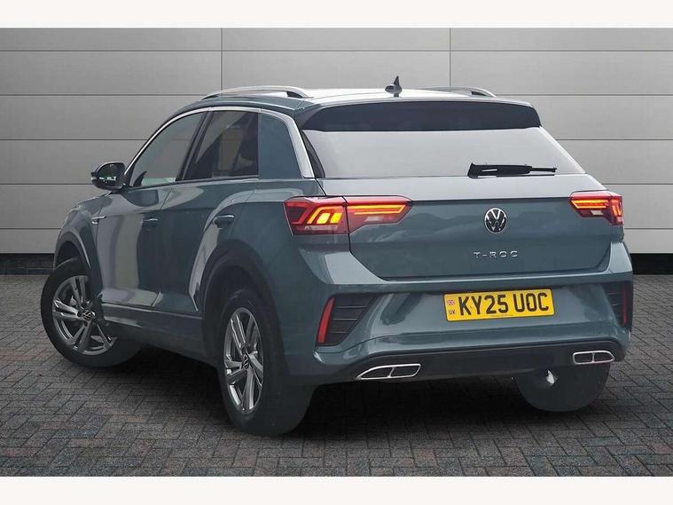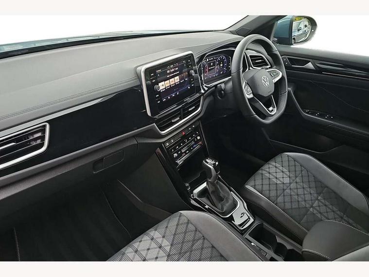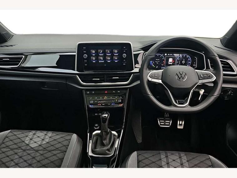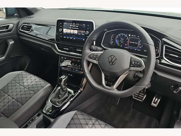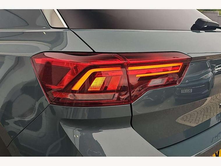 10.25" Digital cockpit pro, Advanced driver attention and drowsiness monitor, Emergency call service, Lane keeping system Lane Assist, Mobile phone interface, Modified key software - reduce switch off time for key status change to Long no motion, Online services, Park assist including front and rear parking sensors, Service interval indicator, Tailgate/trunk lid release from outside, Think blue trainer driver tips and journey analysis, Warning sound and light for front seatbelts unfastened, Wireless app connect, Battery regeneration during braking, Start/stop function with battery regeneration, DAB Digital radio, Diversity antenna for FM reception, Front and rear 6 speakers, Music playback - MP3, WMA and AAC files, Premium USB cable in choice of either Apple or Android smartphone compatibility, SD card slot, Simultaneous pairing of 2 compatible mobile devices, Title and cover art display, We Connect and We Connect Plus functionality, Auto dimming interior rear view mirror, Automatic hazard lights activation under emergency braking, Automatic headlight control with LED separate daytime running lights with coming/leaving home function, Body coloured exterior mirror housings and door handles, Electrically adjustable and heated door mirrors, Extended roof spoiler, Exterior mirrors aspherical on driver side, convex on front passenger side, External USB type C socket and charging sockets, Front windscreen wiper with intermittent wipe and 4 position delay, Heated rear window, LED 3rd brake light, LED rear combination lamps, LED rear number plate lights, Power windows with comfort operation and circuit breaker, Privacy glass for rear side windows and rear window, R-Line design body coloured bumpers, Rain sensor, Rear exhaust tailpipe, Rear fog light on one side and reversing lights on both sides, Rear side wing doors, Rear wash/wipe with intermittent wipe setting, Remote electrically foldable door mirrors, puddle lights and reverse activated passenger's door mirror, 12V power socket in centre console, 3 rear head restraints, 3 seat bench in 2nd row, 4 load lashing points in luggage compartment, Air care climatronic air conditoning system with active combination filter and 2-zone temperature control, Black roof lining, Chrome plated decorative trims, Chrome plated radiator grille inserts, air vent surrounds and light switch surrounds, Door and side trim panel with leatherette insert, Front + rear carpet mats, Front centre armrest, Front cupholders x 2, Front footwell illumination, Front reading light, Front scuff plates with R Line logo, Front seat back storage pockets, Glove compartment door with light, Instrument lighting, white adjustable panel illumination, Interior ambient lighting and surround lighting, Interior light delay, Isofix child seat preparation, Leather gearshift handle, Load-through provision with cup holder when folded down ('Unsplit rear seat bench, split folding backrest, with centre armrest), Luggage compartment lighting, Single front passenger seat, Stainless steel pedals, Storage compartment in left and right luggage area, Storage compartment in rear doors, Storage compartments in driver and front passenger doors, Sunvisors with illuminated vanity mirrors, Variable boot floor, height adjustable and removable, Driver assistance pack without proactive passenger protection - T-Roc, 3 point height adj front seatbelts + pretensioners, 3 point seatbelts in outer rear with ECE label, ABS, Child locks on rear doors, City emergency braking and pedestrian monitoring, Driver and front passenger airbag with front passenger airbag deactivation, Driver and front passenger safety-optimised head restraints, Drivers seatbelt reminder, Electronic parking brake, Electronic Stability Control (ESC) inc EDL (Electronic Differential Lock) and ASR (Traction Control), Front and rear passengers curtain airbag system including front side airbags, Hill start assist, Predictive pedestrian protection, Rear disc brakes, Two tone horn, Tyre pressure loss indicator, Volkswagen roadside assistance, Piano black decorative inserts in dashboard and front door trim panels, Trims for alloy wheels,