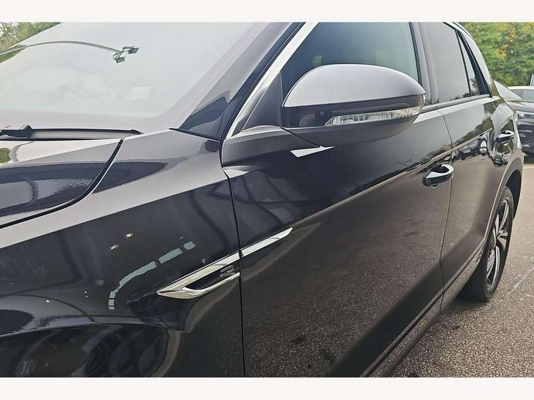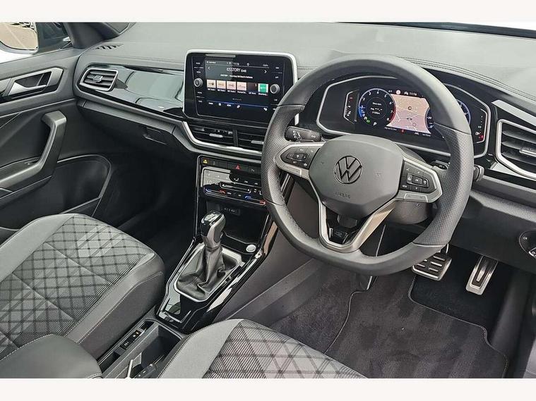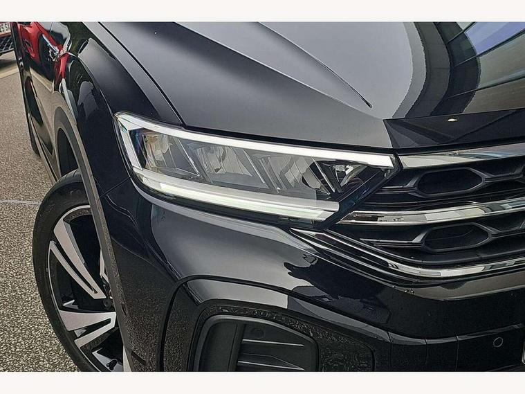 10.25" Digital cockpit pro, Advanced driver attention and drowsiness monitor, Emergency call service, Lane keeping system Lane Assist, Mobile phone interface, Modified key software - reduce switch off time for key status change to Long no motion, Online services, Park assist including front and rear parking sensors, Service interval indicator, Tailgate/trunk lid release from outside, Think blue trainer driver tips and journey analysis, Warning sound and light for front seatbelts unfastened, Wireless app connect, Battery regeneration during braking, Start/stop function with battery regeneration, DAB Digital radio, Diversity antenna for FM reception, Front and rear 6 speakers, Music playback - MP3, WMA and AAC files, Premium USB cable in choice of either Apple or Android smartphone compatibility, SD card slot, Simultaneous pairing of 2 compatible mobile devices, Title and cover art display, We Connect and We Connect Plus functionality, Auto dimming interior rear view mirror, Automatic hazard lights activation under emergency braking, Automatic headlight control with LED separate daytime running lights with coming/leaving home function, Body coloured exterior mirror housings and door handles, Electrically adjustable and heated door mirrors, Extended roof spoiler, Exterior mirrors aspherical on driver side, convex on front passenger side, External USB type C socket and charging sockets, Front windscreen wiper with intermittent wipe and 4 position delay, Heated rear window, LED 3rd brake light, LED rear combination lamps, LED rear number plate lights, Power windows with comfort operation and circuit breaker, Privacy glass for rear side windows and rear window, R-Line design body coloured bumpers, Rain sensor, Rear exhaust tailpipe, Rear fog light on one side and reversing lights on both sides, Rear side wing doors, Rear wash/wipe with intermittent wipe setting, Remote electrically foldable door mirrors, puddle lights and reverse activated passenger's door mirror, 12V power socket in centre console, 3 rear head restraints, 3 seat bench in 2nd row, 4 load lashing points in luggage compartment, Air care climatronic air conditoning system with active combination filter and 2-zone temperature control, Black roof lining, Chrome plated decorative trims, Chrome plated radiator grille inserts, air vent surrounds and light switch surrounds, Door and side trim panel with leatherette insert, Front + rear carpet mats, Front centre armrest, Front cupholders x 2, Front footwell illumination, Front reading light, Front scuff plates with R Line logo, Front seat back storage pockets, Glove compartment door with light, Instrument lighting, white adjustable panel illumination, Interior ambient lighting and surround lighting, Interior light delay, Isofix child seat preparation, Leather gearshift handle, Load-through provision with cup holder when folded down ('Unsplit rear seat bench, split folding backrest, with centre armrest), Luggage compartment lighting, Single front passenger seat, Stainless steel pedals, Storage compartment in left and right luggage area, Storage compartment in rear doors, Storage compartments in driver and front passenger doors, Sunvisors with illuminated vanity mirrors, Variable boot floor, height adjustable and removable, Driver assistance pack without proactive passenger protection - T-Roc, 3 point height adj front seatbelts + pretensioners, 3 point seatbelts in outer rear with ECE label, ABS, Child locks on rear doors, City emergency braking and pedestrian monitoring, Driver and front passenger airbag with front passenger airbag deactivation, Driver and front passenger safety-optimised head restraints, Drivers seatbelt reminder, Electronic parking brake, Electronic Stability Control (ESC) inc EDL (Electronic Differential Lock) and ASR (Traction Control), Front and rear passengers curtain airbag system including front side airbags, Hill start assist, Predictive pedestrian protection, Rear disc brakes, Two tone horn, Tyre pressure loss indicator, Volkswagen roadside assistance, Piano black decorative inserts in dashboard and front door trim panels, Trims for alloy wheels,