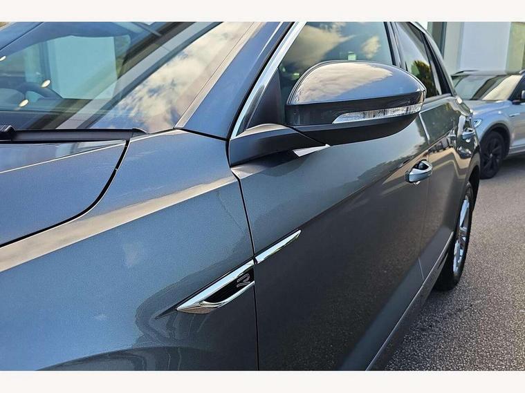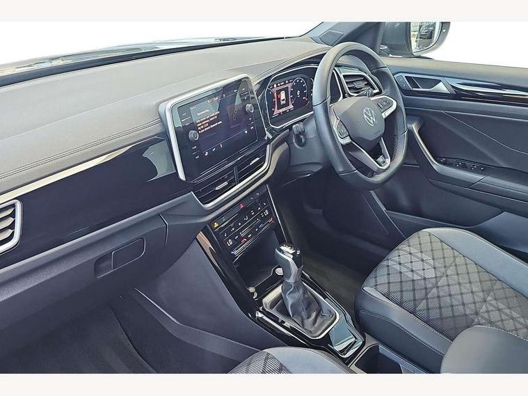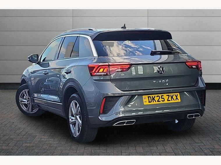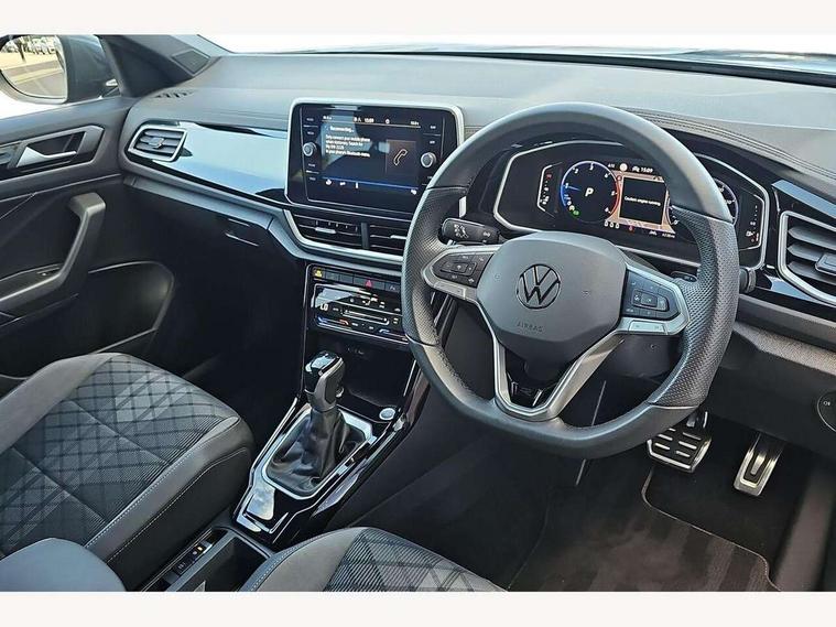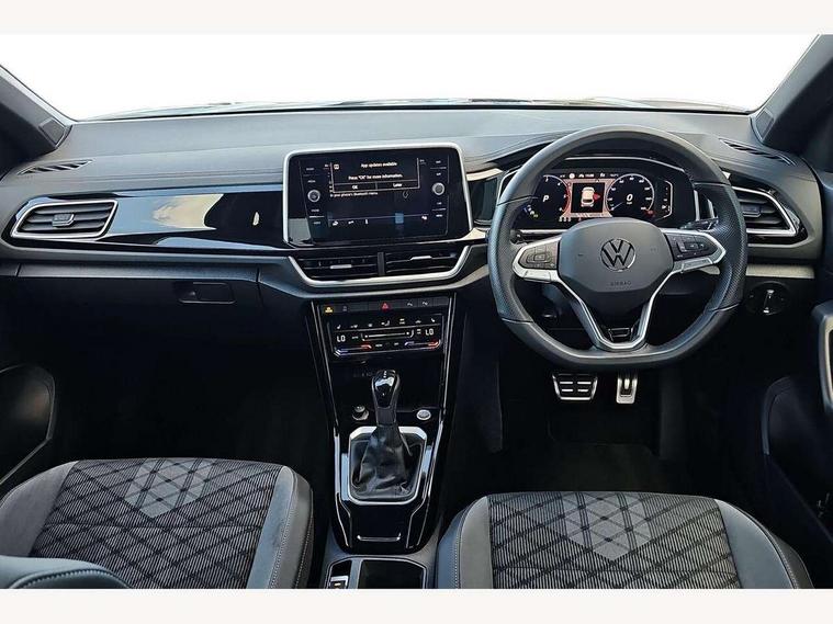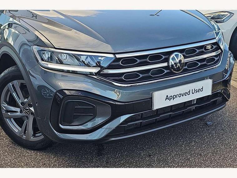 10.25" Digital cockpit pro, Advanced driver attention and drowsiness monitor, Dynamic road sign display, Emergency call service, Lane keeping system Lane Assist, Mobile phone interface, Modified key software - reduce switch off time for key status change to Long no motion, Online services, Park assist including front and rear parking sensors, Service interval indicator, Tailgate/trunk lid release from outside, Think blue trainer driver tips and journey analysis, Warning sound and light for front seatbelts unfastened, Wireless app connect, Battery regeneration during braking, Start/stop function with battery regeneration, DAB Digital radio, Diversity antenna for FM reception, Front and rear 6 speakers, Music playback - MP3, WMA and AAC files, Premium USB cable in choice of either Apple or Android smartphone compatibility, SD card slot, Simultaneous pairing of 2 compatible mobile devices, Title and cover art display, We Connect and We Connect Plus functionality, Auto dimming interior rear view mirror, Automatic hazard lights activation under emergency braking, Automatic headlight control with LED separate daytime running lights with coming/leaving home function, Body coloured exterior mirror housings and door handles, Electrically adjustable and heated door mirrors, Extended roof spoiler, Exterior mirrors aspherical on driver side, convex on front passenger side, External USB type C socket and charging sockets, Front windscreen wiper with intermittent wipe and 4 position delay, Heated rear window, LED 3rd brake light, LED rear combination lamps, LED rear number plate lights, Power windows with comfort operation and circuit breaker, Privacy glass for rear side windows and rear window, R-Line design body coloured bumpers, Rain sensor, Rear exhaust tailpipe, Rear fog light on one side and reversing lights on both sides, Rear side wing doors, Rear wash/wipe with intermittent wipe setting, Remote electrically foldable door mirrors, puddle lights and reverse activated passenger's door mirror, 12V power socket in centre console, 3 rear head restraints, 3 seat bench in 2nd row, 4 load lashing points in luggage compartment, Air care climatronic air conditoning system with active combination filter and 2-zone temperature control, Black roof lining, Chrome plated decorative trims, Chrome plated radiator grille inserts, air vent surrounds and light switch surrounds, Door and side trim panel with leatherette insert, Front + rear carpet mats, Front centre armrest, Front cupholders x 2, Front footwell illumination, Front reading light, Front scuff plates with R Line logo, Front seat back storage pockets, Glove compartment door with light, Instrument lighting, white adjustable panel illumination, Interior ambient lighting and surround lighting, Interior light delay, Isofix child seat preparation, Leather gearshift handle, Load-through provision with cup holder when folded down ('Unsplit rear seat bench, split folding backrest, with centre armrest), Luggage compartment lighting, Single front passenger seat, Stainless steel pedals, Storage compartment in left and right luggage area, Storage compartment in rear doors, Storage compartments in driver and front passenger doors, Sunvisors with illuminated vanity mirrors, Variable boot floor, height adjustable and removable, Driver assistance pack without proactive passenger protection - T-Roc, 3 point height adj front seatbelts + pretensioners, 3 point seatbelts in outer rear with ECE label, ABS, Child locks on rear doors, City emergency braking and pedestrian monitoring, Driver and front passenger airbag with front passenger airbag deactivation, Driver and front passenger safety-optimised head restraints, Drivers seatbelt reminder, Electronic parking brake, Electronic Stability Control (ESC) inc EDL (Electronic Differential Lock) and ASR (Traction Control), Front and rear passengers curtain airbag system including front side airbags, Hill start assist, Predictive pedestrian protection, Rear disc brakes, Two tone horn, Tyre pressure loss indicator, Volkswagen roadside assistance, Piano black decorative inserts in dashboard and front door trim panels, Trims for alloy wheels,