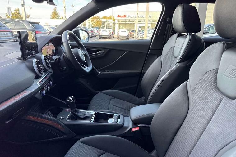 3D map display, Audi connect navigation and infotainment includes innovative services, Audi connect remote and control connects your vehicle to your smartphone, Audi drive select: S tronic - power steering assistance + engine + gearshift (modes: comfort, auto, dynamic, efficiency, individual), Audi phone box with wireless charging, Audi smartphone interface - Apple carplay/Android Auto, USB connect, 2xSDXC card readers, voice control for navi, telephone, music and 3rd party apps, Audi virtual cockpit, Automatic start/stop system with recuperation, Bluetooth interface includes bluetooth audio streaming, Camera based traffic sign recognition, Cruise control, Distraction and Fatigue warning, E-call, Instrument dials with S logo, Jukebox hard drive memory for music (10GB), Lane departure warning, MMI navigation plus with 8.8" touchscreen, Natural voice recognition, Power operated tailgate, Progressive steering, Quattro all wheel drive, S sport suspension lowered by 20mm, DAB Digital radio, USB type C port, Audi beam, Auto dimming rear view mirror, Black window trims, C-Pillar blade in Brilliant black, Electrically adjustable, folding, auto dimming and heated door mirrors with integrated LED side indicators, Exterior mirror caps in Brilliant black, Front windscreen with grey tinted sunband, LED daytime running lights, LED headlights with dipped beam, high beam, position lights, indicators, LED rear lights, LED third brake light, Privacy glass - dark tinted rear and rear side windows from B-pillar backwards, Quattro decals on rear side flank, Rear side wing doors, Rear wiper, S design body styling - SQ2 front bumper, S design underbody protection, SQ2 rear diffuser, S design radiator grille with horizontal struts and SQ2 logo, S specific dual-branch black tailpipes, with twin tailpipes on both the left and right in black, Sport bumpers in manhattan grey, Variable front intermittent wipers, Wheel arch trims in manhattan grey, 12v socket in front, 3 seat bench in 2nd row, 3 spoke flat bottom multi-fun leather sport steering with gear shift paddle and S badge grip in perforated leather with contrast stitch in rock grey, 4-way electric lumbar support for front seats including manual seat height adjustment for both front seats, 60/40 split folding rear seat bench, Black carpets, Black cloth headlining, Dual zone electronic climate control, Front and rear head restraints, Front centre armrest, Front sport seats, Front/rear floor mats, Height/reach adjust steering wheel, Illuminated door sill trims with S logo, ISOFIX child seat mounting in front passenger and rear outer seats, Single front passenger seat, Stainless steel pedals, Black styling pack - Q2, Extended interior upholstery pack - SQ2, LED interior lighting pack - Q2, Technology pack - Q2, 3x3 point rear seatbelts, 6 airbags - Front, curtain and front side airbags, Brake calipers painted black with S logo at the front, Electromechanical parking brake, Electronic stabilisation control including ABS, ASR and EDL, Front passenger airbag deactivation, Hill hold assist, Pre-sense front with pedestrian recognition, S model enhanced braking system, Seatbelt monitoring, Tyre pressure warning light with visual and acoustic warning, Warning triangle and first aid kit, Anti theft alarm, Anti theft wheel bolts, Electronically operated child locks, Remote central door locking, Aluminium interior element, Black dashboard, Gloss black centre console, Matt brushed aluminium trim inlays, Tool kit,