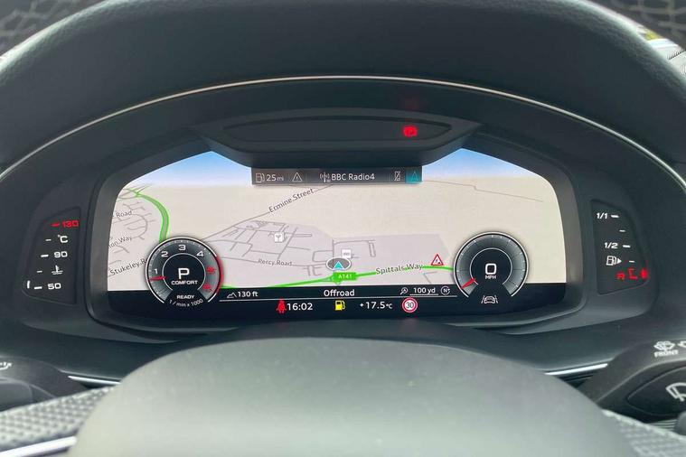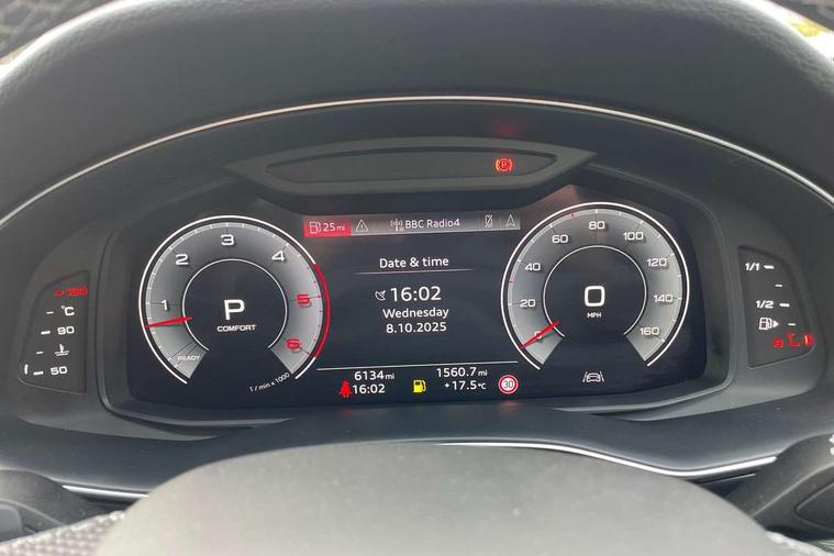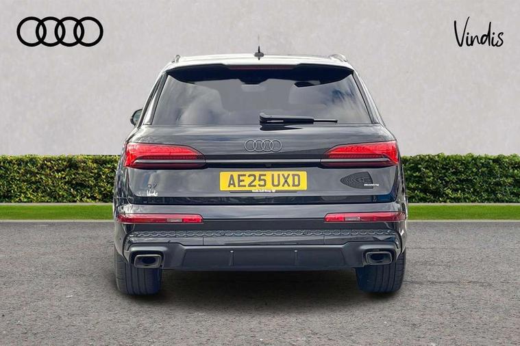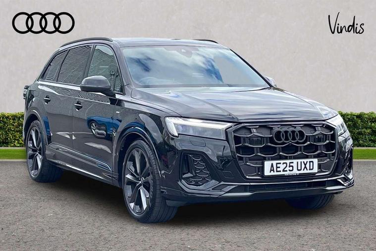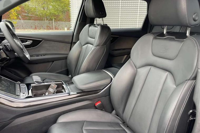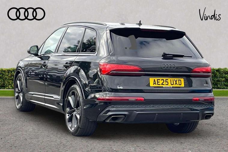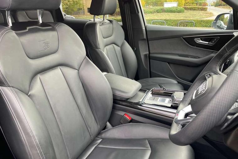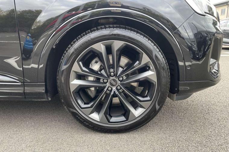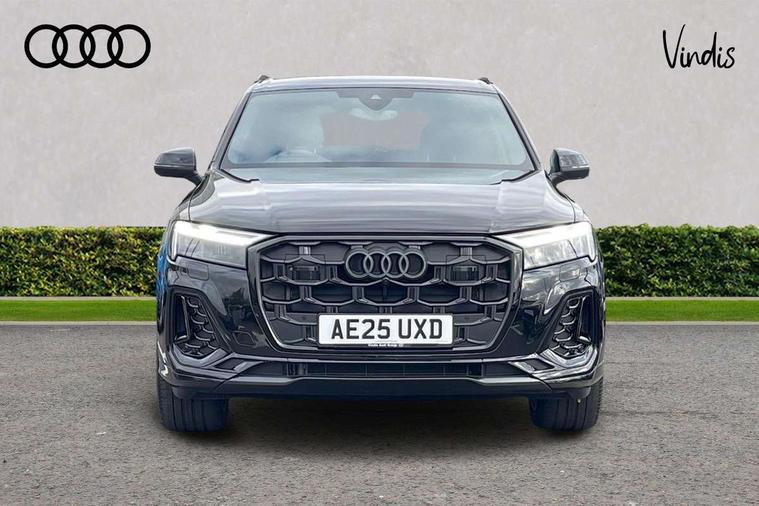 Audi connect safety and service (e-call), Audi connect with Amazon Alexa Integration, Audi drive select (Auto, Comfort, Dynamic, Efficiency, Individual, Off-road and All road), Audi phone box light with wireless charging, Audi virtual cockpit - 12.3" high-resolution LCD display with fully customisable instrument cluster, Bluetooth interface, Camera based traffic sign recognition, Electromechanical power steering, MMI navigation plus with MMI touch screens includes 10.1" and 8.6" screens with haptic feedback, Natural voice recognition, Operating buttons in Matte black, Parking system plus with 360 degree display (front, rear and side sensors) - acoustic and visual park assist system, Power operated tailgate, Rear view camera, Smartphone interface includes wireless Apple carplay/Android Auto, Start/stop system, 48V Mild hybrid technology, Adaptive air sports suspension, Quattro all wheel drive with self locking centre differential, Audi music interface - front 2 USB-C ports with charger and data functions, Audi sound system with 6 channel amplifier, 180 watt amplifying capacity and 10 loudspeakers including subwoofer, DAB digital radio module, Audi Beam uses LEDs to project S emblem with red rhombus onto the ground when opening the side doors (front/rear), Auto dimming frameless rear view mirror, Black exhausts, Black roof rails, Electrically adj heated/folding + automatically dimming exterior mirrors with memory + automatic kerb side function for passenger side exterior mirror, Heat insulating glass in windshield, Integrated LED indications in door mirrors, LED 3rd brake light, LED daytime running lights, LED rear tail lights, Loading edge protection in stainless steel, Matrix LED headlights with dynamic front and rear indicators, Privacy glass - dark tinted rear and rear side windows from B-pillar backwards, Rear side wing doors, Rear wiper, 2 seat bench in 3rd row, 2 zone automatic climate control, 3 seat bench in 2nd row, 7 seat layout with ISOFIX points for the front passenger seat and rear passenger seat, Black cloth headlining, Comfort front centre armrest, Electric adjustable front seat with 4 way lumbar support, driver memory functionality, Folding rear seats, Front head restraints, Front/rear floor mats, Heated front seats, Illuminated door sill trims with S logo, ISOFIX child seat mounting for front passenger seat and 2 outer rear seats with top tether child seat mounting for all 3 rear seats, LED interior ambient lighting, Luggage compartment cover, Luggage compartment sill protection in stainless steel, Rear head restraints, Single front passenger seat, Stainless steel pedals, Sunvisors with illuminated vanity mirrors, Black styling pack plus - Q7, 3 point seatbelts on all rear seats, Audi pre sense front, Child locks on rear doors, Convenience key with safelock and gesture tailgate, Driver and front passenger, front side and curtain airbags, Electromechanical parking brake, Electronic Stabilisation Control (ESC) including ABS, ASR and EDL, Extended pedestrian protection measures, Hill hold assist, Seatbelt reminder, Tyre pressure loss indicator, Warning triangle and first aid kit, Anti theft alarm with tow away protection, Anti-theft wheel bolts and wheel loosening detection, Keyless Go, Remote central locking, Polished oak trim with grey finish inlay, Tool kit, Tyre repair kit,