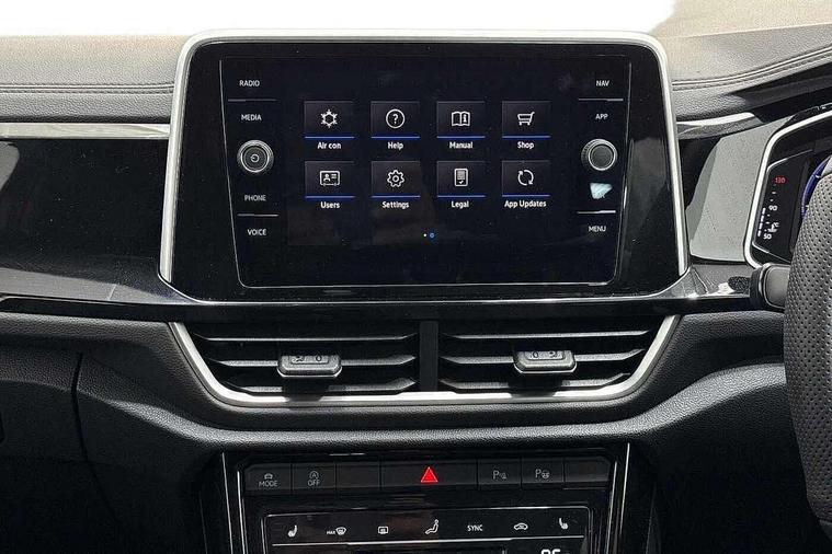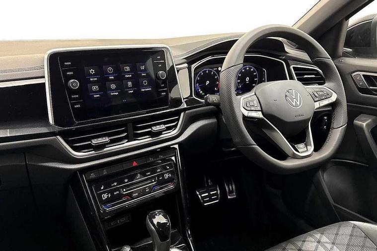 10.25" Digital cockpit pro, Advanced driver attention and drowsiness monitor, Emergency call service, Lane keeping system Lane Assist, Mobile phone interface, Modified key software - reduce switch off time for key status change to Long no motion, Online services, Park assist including front and rear parking sensors, Service interval indicator, Tailgate/trunk lid release from outside, Think blue trainer driver tips and journey analysis, Warning sound and light for front seatbelts unfastened, Wireless app connect, Battery regeneration during braking, Start/stop function with battery regeneration, DAB Digital radio, Diversity antenna for FM reception, Front and rear 6 speakers, Music playback - MP3, WMA and AAC files, Premium USB cable in choice of either Apple or Android smartphone compatibility, SD card slot, Simultaneous pairing of 2 compatible mobile devices, Title and cover art display, We Connect and We Connect Plus functionality, Auto dimming interior rear view mirror, Automatic hazard lights activation under emergency braking, Automatic headlight control with LED separate daytime running lights with coming/leaving home function, Body coloured exterior mirror housings and door handles, Electrically adjustable and heated door mirrors, Extended roof spoiler, Exterior mirrors aspherical on driver side, convex on front passenger side, External USB type C socket and charging sockets, Front windscreen wiper with intermittent wipe and 4 position delay, Heated rear window, LED 3rd brake light, LED rear combination lamps, LED rear number plate lights, Power windows with comfort operation and circuit breaker, Privacy glass for rear side windows and rear window, R-Line design body coloured bumpers, Rain sensor, Rear exhaust tailpipe, Rear fog light on one side and reversing lights on both sides, Rear side wing doors, Rear wash/wipe with intermittent wipe setting, Remote electrically foldable door mirrors, puddle lights and reverse activated passenger's door mirror, 12V power socket in centre console, 3 rear head restraints, 3 seat bench in 2nd row, 4 load lashing points in luggage compartment, Air care climatronic air conditoning system with active combination filter and 2-zone temperature control, Black roof lining, Chrome plated decorative trims, Chrome plated radiator grille inserts, air vent surrounds and light switch surrounds, Door and side trim panel with leatherette insert, Front + rear carpet mats, Front centre armrest, Front cupholders x 2, Front footwell illumination, Front reading light, Front scuff plates with R Line logo, Front seat back storage pockets, Glove compartment door with light, Instrument lighting, white adjustable panel illumination, Interior ambient lighting and surround lighting, Interior light delay, Isofix child seat preparation, Leather gearshift handle, Load-through provision with cup holder when folded down ('Unsplit rear seat bench, split folding backrest, with centre armrest), Luggage compartment lighting, Single front passenger seat, Stainless steel pedals, Storage compartment in left and right luggage area, Storage compartment in rear doors, Storage compartments in driver and front passenger doors, Sunvisors with illuminated vanity mirrors, Variable boot floor, height adjustable and removable, Driver assistance pack without proactive passenger protection - T-Roc, 3 point height adj front seatbelts + pretensioners, 3 point seatbelts in outer rear with ECE label, ABS, Child locks on rear doors, City emergency braking and pedestrian monitoring, Driver and front passenger airbag with front passenger airbag deactivation, Driver and front passenger safety-optimised head restraints, Drivers seatbelt reminder, Electronic parking brake, Electronic Stability Control (ESC) inc EDL (Electronic Differential Lock) and ASR (Traction Control), Front and rear passengers curtain airbag system including front side airbags, Hill start assist, Predictive pedestrian protection, Rear disc brakes, Two tone horn, Tyre pressure loss indicator, Volkswagen roadside assistance, Piano black decorative inserts in dashboard and front door trim panels, Trims for alloy wheels,