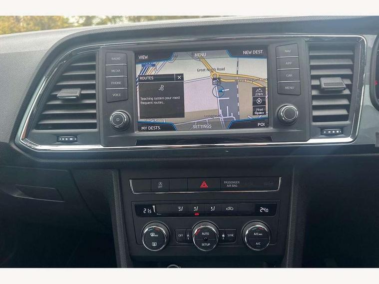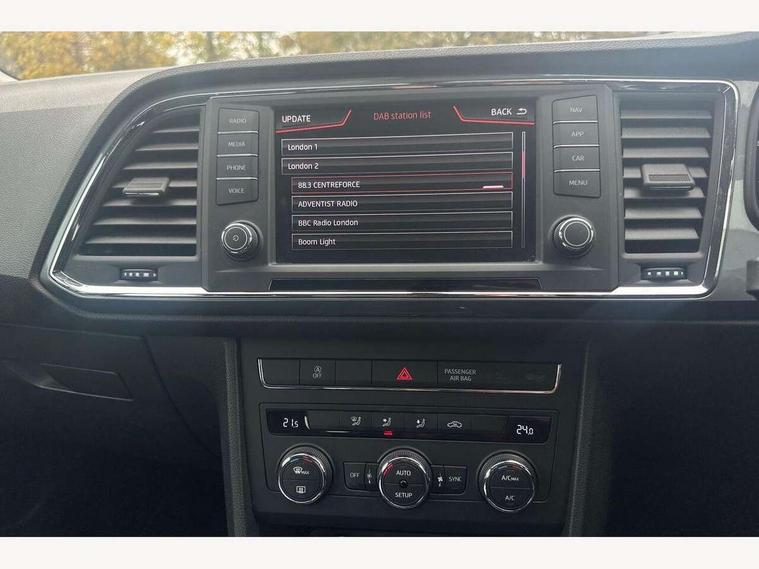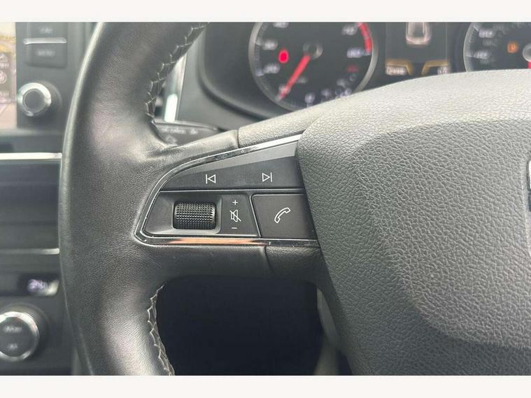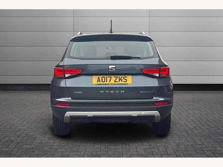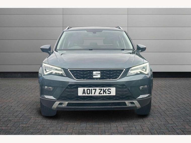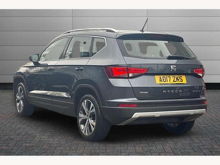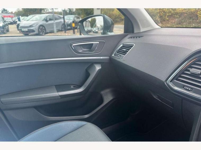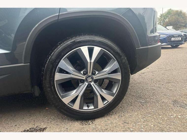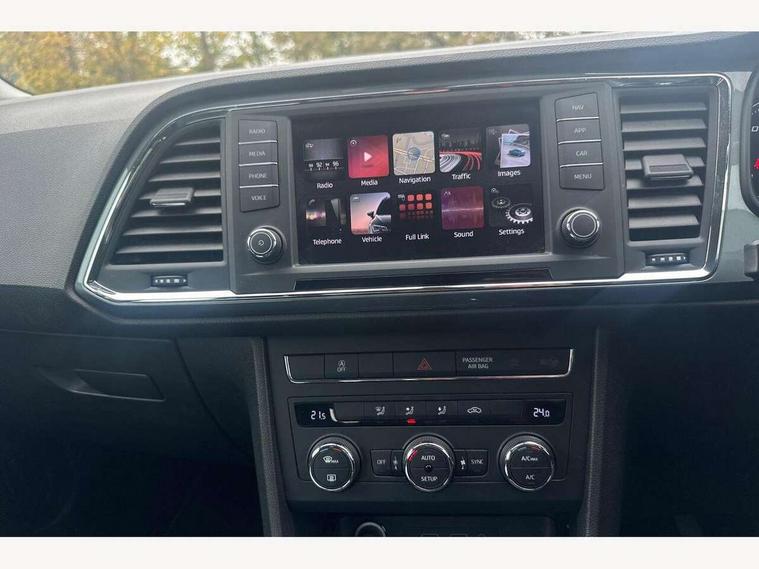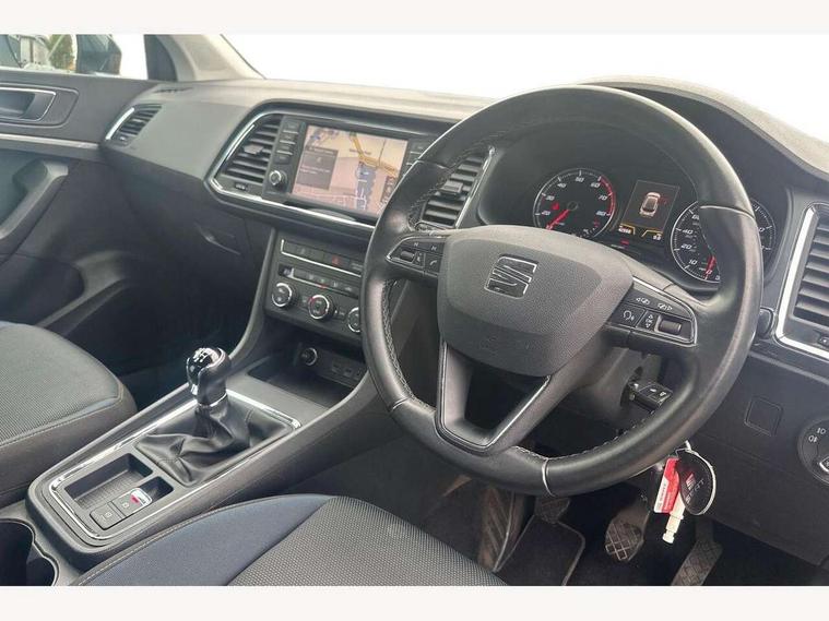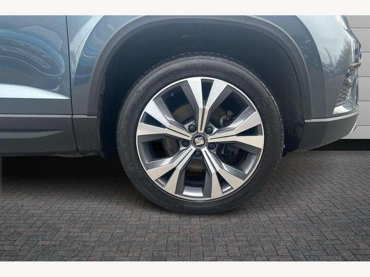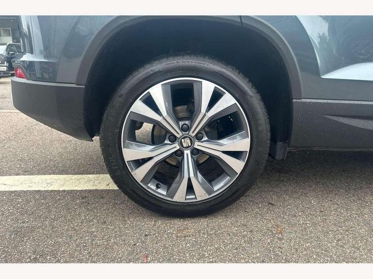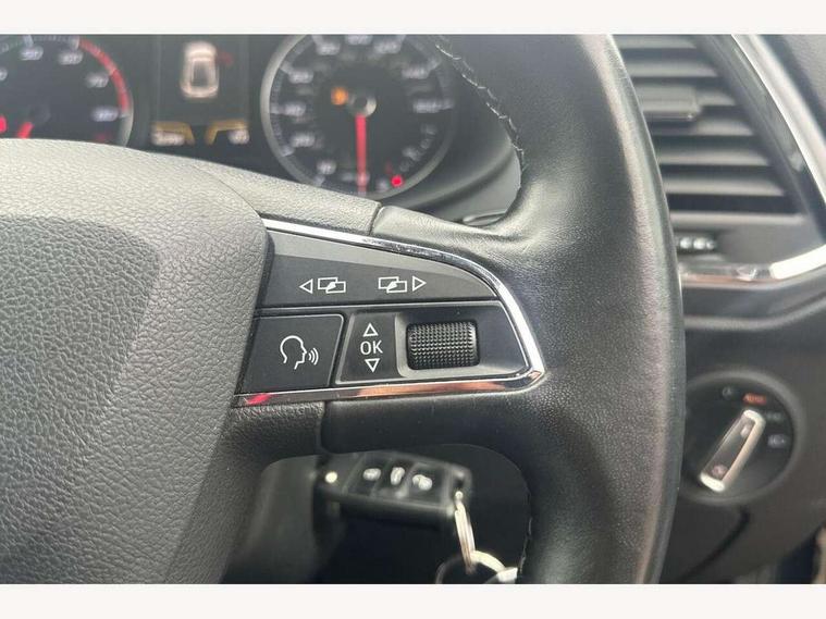 'Lights On' Reminder warning buzzer, Driver alert system, Electric speed sensitive power steering, Full Link App interface, Low fuel warning light, Multi function display, Outside temperature gauge, Rear parking sensor, Remote fuel flap release, SEAT logo boot release, Trip computer, Comfort suspension, XDS electronic differential lock, Steering wheel mounted audio/phone controls, Aluminium roof rails, Body colour bumpers, Body colour door handles, Body colour door mirrors, Chrome headlight surround, Chrome side window trim, Chromed centre radiator grille surround, Electric folding door mirrors, Electrically adjustable and heated door mirrors, Front and rear electric windows, LED daytime running lights, LED front fog lights with static cornering light function, LED Headlights, LED tail lights, Rear wash/wipe, 12V power point front, 3 height adjustable rear headrests, 4 Lashing eyes in boot, 60/40 split folding rear seat, Active head restraints, Adjustable front armrest with storage compartment, Card holder, Cloth upholstery, Comfort front seats, Driver/passenger lumbar adjustment, Driver/passenger sunvisors with illuminated vanity mirrors, Dual zone climate control, Footwell illumination, Front cupholders x 2, Front reading lights, Front seat back storage pockets, Height adjustable driver's seat, Height adjustable front headrests, Height adjustable passenger seat, Illuminated boot, Illuminated glovebox, Isofix child seat preparation, Leather steering wheel and gear knob, Rear armrest, Rear central air outlet, Rear reading lights, Storage box under drivers seat, Navigation system pack - Ateca, Seat Media System Plus pack - Ateca, 3x3 point rear seatbelts, ABS, Auto hold function, Automatic post collision braking, Curtain airbags, Driver/Front Passenger airbags, Drivers knee airbag, Electronic parking brake, Electronic stability control, ESP+EBA, Front and rear seatbelt reminder, Front assist including city emergency braking, Front passenger airbag deactivation, Front side airbags, Hill hold control, Predictive pedestrian protection, Tiredness recognition system, Traction control, Tyre pressure monitoring system, 2 folding remote keys with window open/close function, Immobiliser, Locking wheel bolts, Remote central locking, Volumetric alarm with back up horn, Chrome effect dashboard facia, 18" Bi-colour alloy wheels,