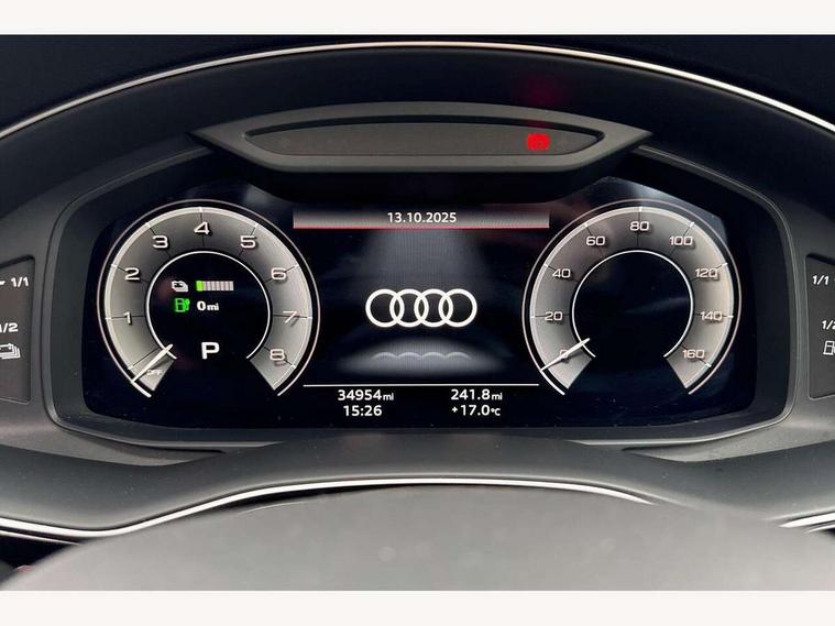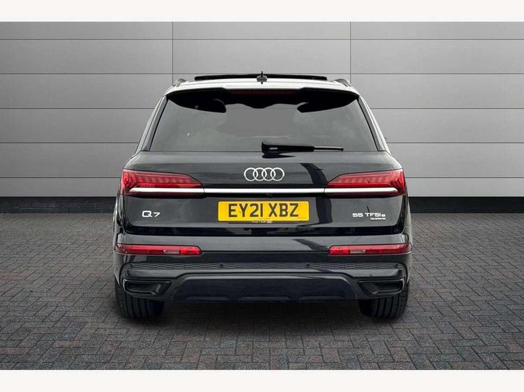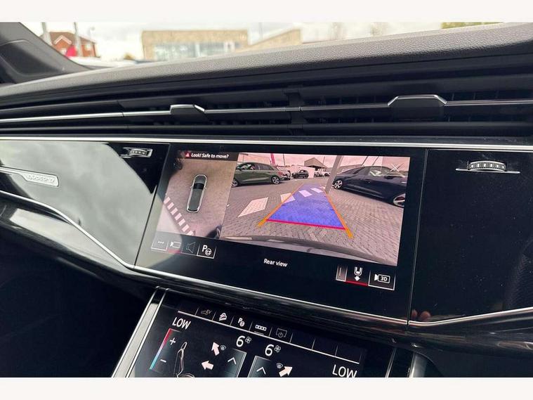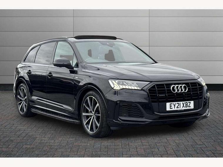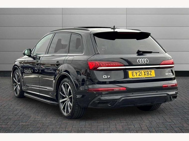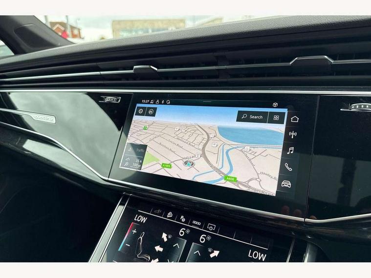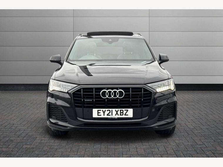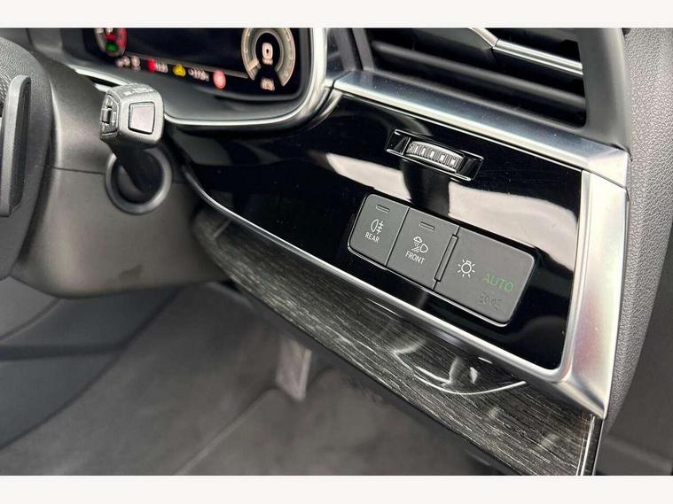 Audi connect safety and service (e-call), Audi drive select (Auto, Comfort, Dynamic, Efficiency, Individual, Off-road and All road), Audi phone box with wireless charging, Audi smartphone interface includes wireless Apple carplay/Android Auto, Audi virtual cockpit - 12.3" high-resolution LCD display with fully customisable instrument cluster, Camera based traffic sign recognition, Electromechanical steering, MMI navigation plus with MMI touch screens includes 10.1" and 8.6" screens with haptic feedback, Natural voice recognition, Power operated tailgate, Start/stop system, 3 pin 10 amp domestic charging cable, 75 litre fuel tank, Adaptive air sports suspension, Quattro all wheel drive with self locking centre differential, Type 2 mode 3 charging cable, Type 2 socket for AC charging, Audi music interface - front 2 USB-C ports with charger and data functions, DAB digital radio module, Audi matrix LED headlights with dynamic front and rear indicators, Auto dimming frameless rear view mirror, Black roof rails, Bumpers in contrast paint scandium grey finish includes door trim and wheel arch trim strips, inlays in door strip contain quattro embossing, Electrically adj heated/folding + automatically dimming exterior mirrors with memory + automatic kerb side function for passenger side exterior mirror, Heat insulating glass in windshield, Integrated LED indications in door mirrors, LED daytime running lights, LED rear tail lights, Privacy glass - dark tinted rear and rear side windows from B-pillar backwards, 4 zone deluxe automatic climate control, 5 seat layout with ISOFIX points for the front passenger seat and rear passenger seat, Black cloth headlining, Comfort front centre armrest, Folding rear seats, Front head restraints, Front/rear floor mats, Heated front seats, LED interior ambient lighting, Rear head restraints, Sunvisors with illuminated vanity mirrors, Tool kit, Comfort and sound pack with Bang + Olufsen premium sound system - Q7, Titanium black styling pack - Q7/SQ7, 3 point seatbelts on all rear seats, Acoustic vehicle alerting system, Audi pre sense front, Driver and front passenger, front side and curtain airbags, Electromechanical parking brake, Electronic Stabilisation Control (ESC) including ABS, ASR and EDL, Extended pedestrian protection measures, Hill hold assist, Seatbelt monitoring, Tyre pressure loss indicator, Warning triangle and first aid kit, Anti theft alarm, Anti-theft wheel bolts and wheel loosening detection, Keyless go with remote central locking, Polished oak trim with grey finished, Tyre repair kit,