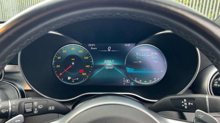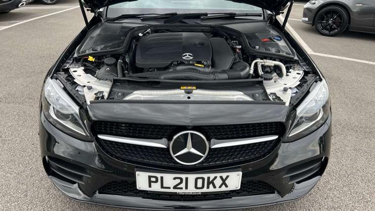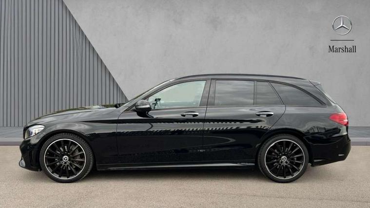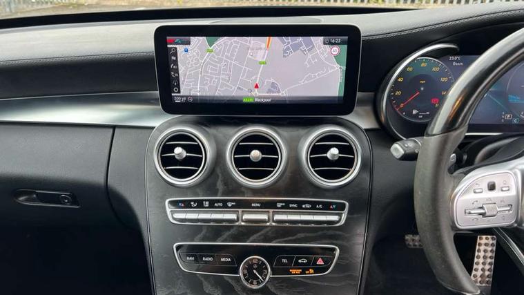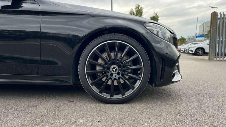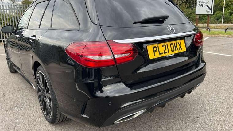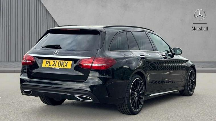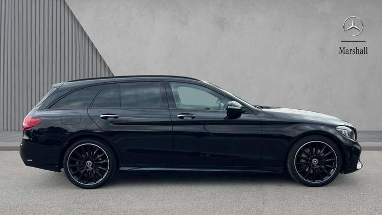 12.3" digital instrument cluster display, 360 degree parking camera, Active park assist with parktronic system, Analogue clock, Attention assist, Collision prevention assist plus, Colour display - 10.25" colour display screen, Comand Online HDD Nav with media interface, linguatronic voice control, 2 USB port and one SD card slot in centre console, DYNAMIC SELECT with a choice of driving modes (ECO, Comfort, Sport, Sport+ and Individual), Easy pack automatic powered tailgate, Mercedes connect me, Multi function trip computer, Outside temperature gauge, Remote boot release, Service indicator (ASSYST), Smartphone integration with Apple CarPlay and Android auto, Sports direct steer speed sensitive steering, Status display for rear seat belts in instrument cluster, Wireless charging, 66 litre fuel tank, 9G TRONIC 9 speed automatic transmission, Agility control sports suspension lowered by 15 mm, Petrol Particulate Filter, Burmester surround sound system with 13 speakers and a 9 channel amplifier with total output of 590 watts, DAB Digital radio, Steering wheel mounted audio controls, Adaptive brake lights, AMG body styling front apron, rear apron and side skirts, Automatically dimming rear view mirror and driver's exterior mirror, Chrome pins diamond radiator grille with integrated stars, Electric front sliding and fixed rear panoramic glass sunroof, Electric windows with one touch opening/closing and obstruction sensors, Electrically adjustable and heated door mirrors, Green tinted glass, Heated windscreen washers, High gloss black exterior mirror housing, High gloss black rear bumper insert, LED Indicators, LED tail lights, LED third brake light, Multi beam LED headlights, Privacy glass (rear side windows and rear screen), Radio aerial integrated into rear window, Rain sensor windscreen wipers, Rear wiper, Side windows surround in matt black, Twin tailpipe design integrated into rear bumper, 2 cupholders in front centre console, 3 spoke flat bottom AMG steering wheel in nappa leather with chrome inserts perforated leather grip, 40:20:40 split folding rear seats, AMG sports seats, Auto Mercedes-Benz child seat recognition sensor, Black floor mats with AMG lettering, Dual zone automatic climate control, Front and rear head restraints, Front centre armrest with storage compartment, Front door sills with Mercedes Benz lettering, Gearshift paddles on steering wheel, Heated front seats, Illuminated glovebox, Interior lighting - 64 colour Ambient lighting, Leather upholstery, Load compartment cover, Multifunction steering wheel, Rear top tether child seat ISOFIX attachment, Sports pedals with stainless steel surfaces and rubber studs, Sunvisors with illuminated vanity mirrors, Keyless go comfort package - C Class, Lighting pack - C class, Memory pack with Electric adjustable steering wheel - C Class, Mirror pack - C Class, Night package - C Class estate, Seat comfort pack - C Class, Stowage space pack - C Class, 3 rear 3 point seatbelts, Active bonnet, Adaptive brake system with HOLD function and brake drying in the wet, Anti-lock braking system (ABS), Black seat belts, Brake calipers with Mercedes-Benz lettering + perforated front brake discs, Child proof door locks, Drivers knee airbag, Drivers pelvis airbag, Dual stage driver/passenger airbags, Electronic parking brake, ESP with ASR, Front passenger seat occupancy sensor, Front side airbags, Hill start assist, Rear seatbelt warning indicator, Tyre pressure monitoring system, Warning triangle and first aid kit, Window airbags, Alarm system/interior protection/immobiliser, Central locking with interior switch, automatic locking and crash sensor with emergency opening function, Chrome surround electric key, Urban guard, Artico man-made leather dashboard with contrast stitching, Open pore black ash wood trim, 19" AMG multi spoke design alloy wheels painted black, Runflat tyres,