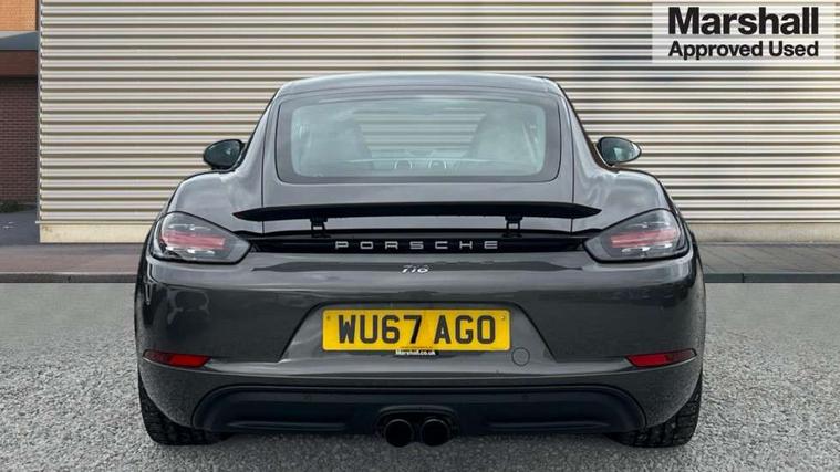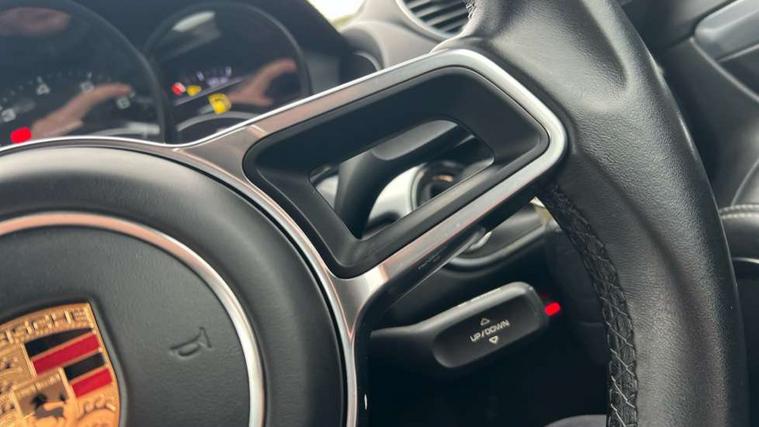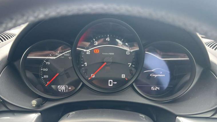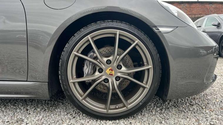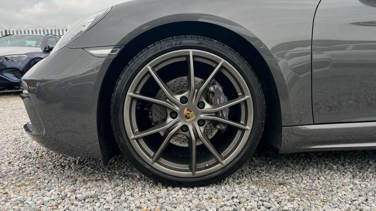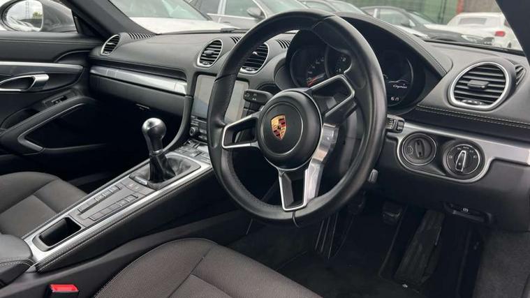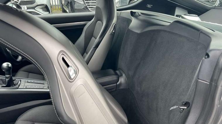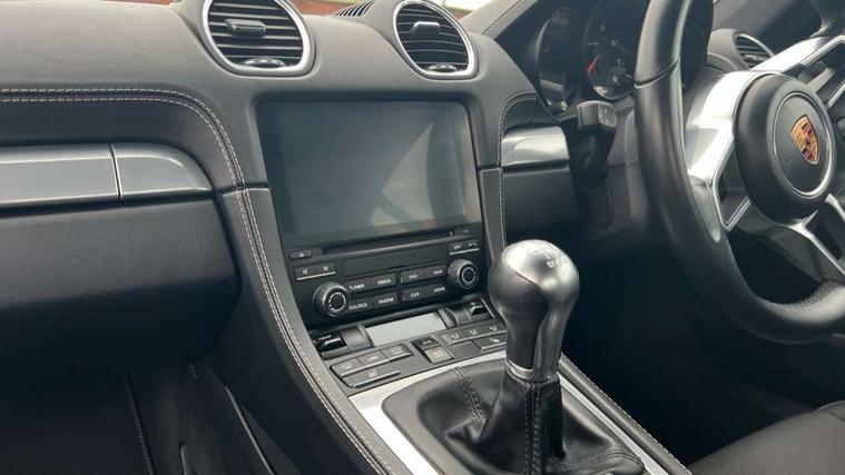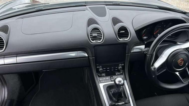 Black rev counter, Instrument cluster with high-resolution 4.6-inch TFT colour display, Mobile telephone preparation, PCM navigation module, Porsche communications management, Porsche Connect Plus, Sports button, Porsche stability management (PSM), DAB Digital radio, USB interface in rear, Aerodynamic wipers, Aspherical driver's exterior mirror, Automatic coming home lighting, Brushed stainless steel central tailpipe, Door sill guards with logo, Electric windows one touch open/close, Electrically adjustable and heated door mirrors, Green tinted heat insulating glass, Heated rear windscreen, LED brake lights, LED daytime running lights, Painted Porsche logo and model designation, Top tinted windscreen, Windscreen washer jets, 12V power socket in passenger footwell, 2 cupholders, Air recirculation control, Clothes hooks on front seat backrests, Driver/passenger electric backrest adjustment, Driver/passenger seats fore/aft adjustment, Front and rear luggage compartments, Glovebox illumination, Ignition Lock illumination, Illumination of luggage compartment, Interior orientation lighting, LED reading lights, Sports steering wheel with manual fore/aft/height adjust, Storage compartments in doors, ABS, Black painted brake calipers, Electronic parking brake, Full size driver and passenger airbags, Head airbags, POSIP, Side (thorax) airbags, Tyre pressure monitoring system, Alarm system with interior protection, Anti-theft wheel bolts, Porsche vehicle tracking system (VTS), Remote central locking including luggage compartment, Transponder engine immobiliser, Sealing compound and compressor kit,