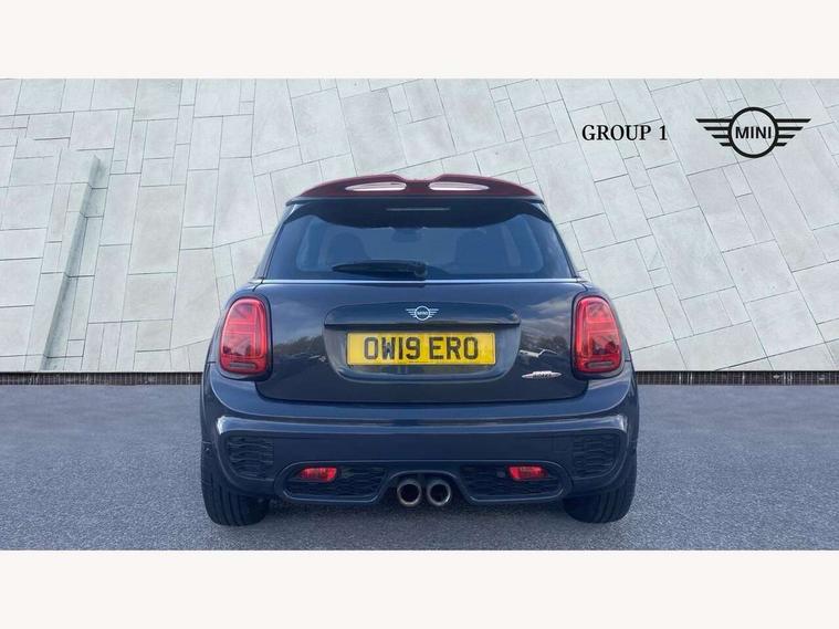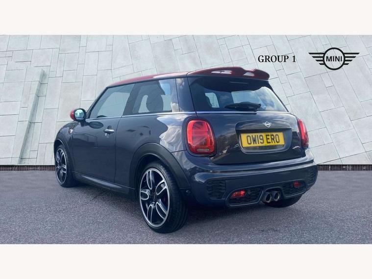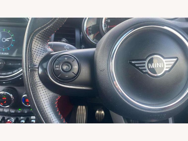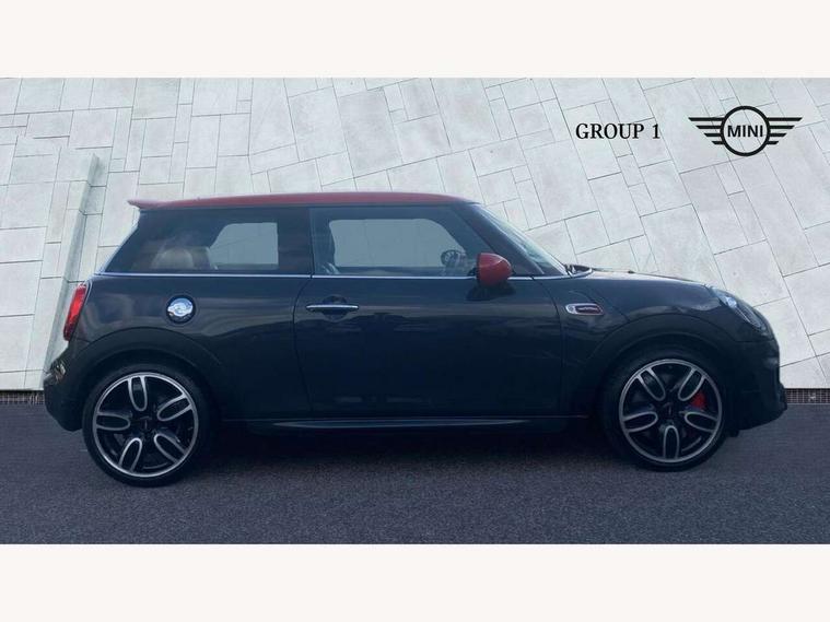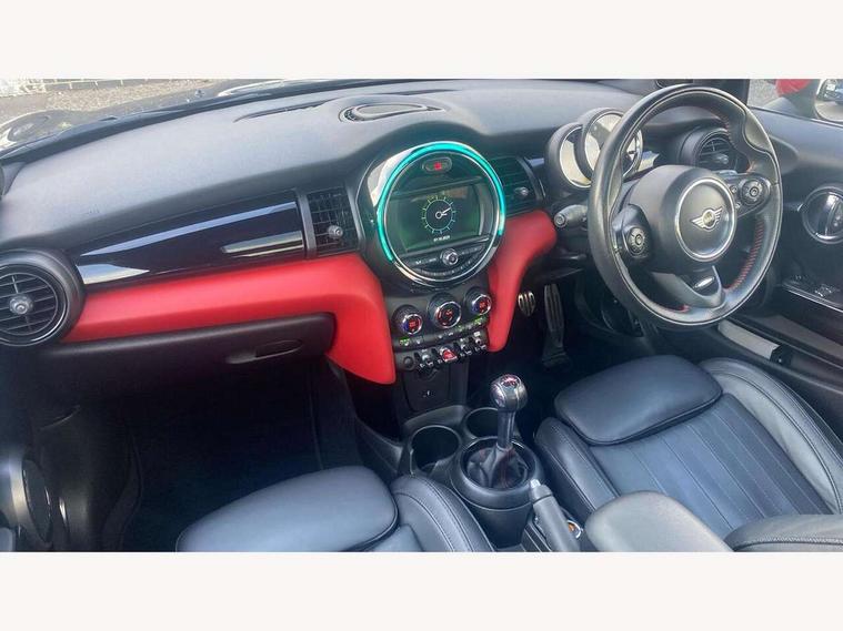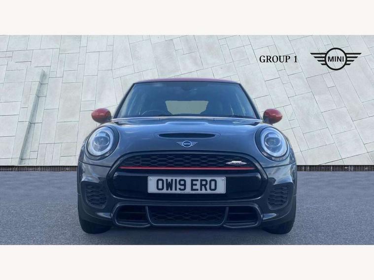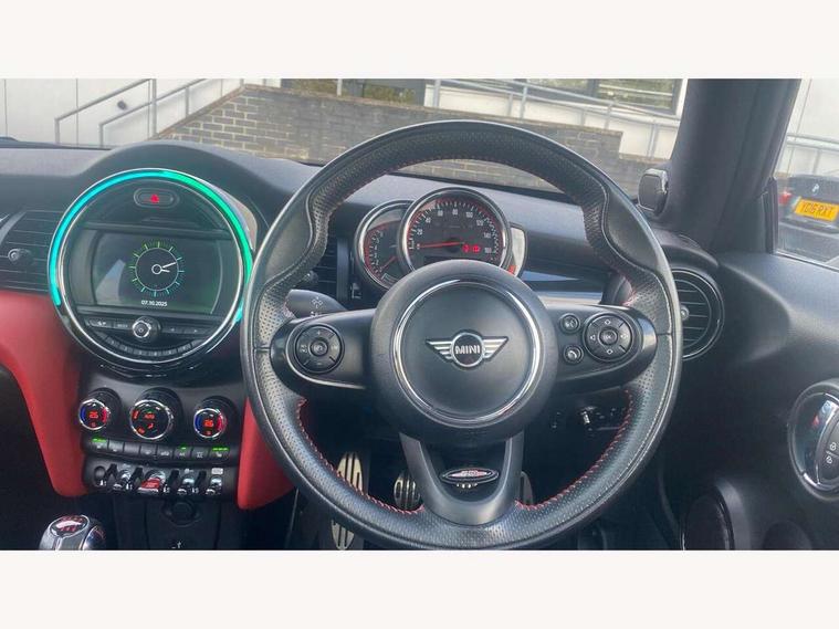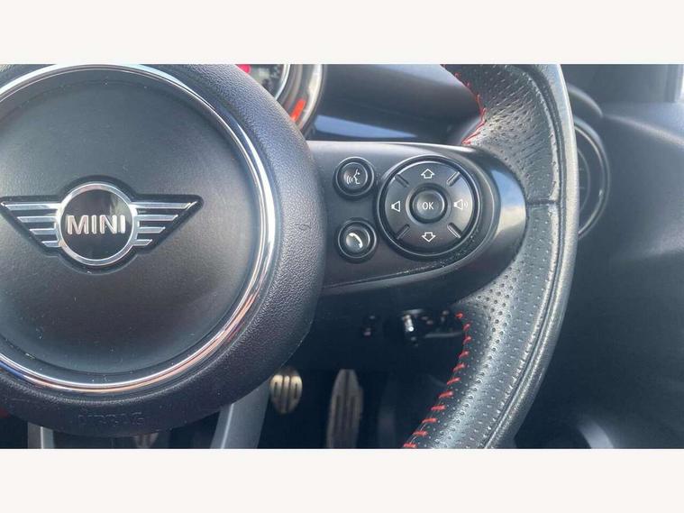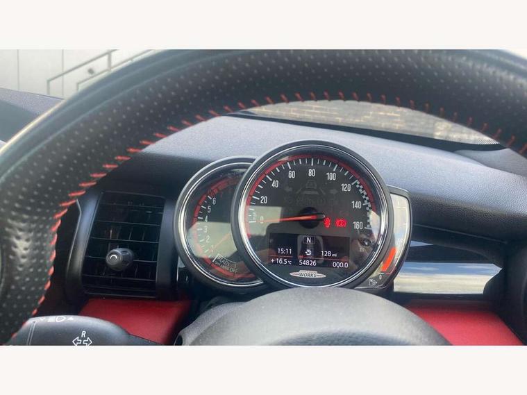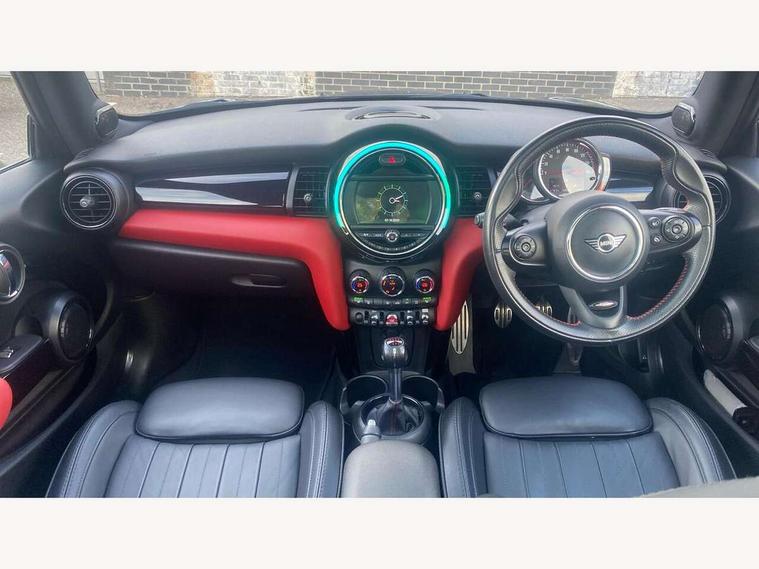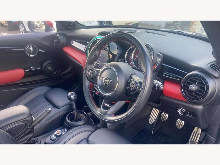 Compatible mobile phone bluetooth with audio streaming, Instrument cluster, MINI Driving Modes - centre toggle switch to control driving setting (sport, mid and green), Mini E-call, MINI TeleServices, On board computer, Service interval indicator, Performance Control, 6.5" touchscreen with LED ring, FM tuner and DAB digital radio, Automatic headlight activation switch, Bonnet scoop, Chrome door handles, Chrome plated fuel cap, Dynamic brake lights, Electric front+rear windows, Heated rear window, Heated windscreen washer jets, John Cooper Works - aerodynamic kit (front and rear apron, spoiler), front and rear sport bumpers and part-painted side sills with door sill finishers, John Cooper Works rear spoiler, LED headlight with closed ring and daytime driving lights, Metal look door sill finishers, Piano black border radiator grille with honeycomb structure in black matt and John Cooper Works logo with upper individual grille strut in chilli red, Piano black exterior, Rain sensor window wipers, Rear fog lights, Rear LED lights with union jack design, Rear window wiper, Side scuttle with MINI John Cooper Works logo in black high-gloss with red border, Sun/heat protection glass, Two central exhaust tailpipes with chrome finisher, White indicator lenses, 12V Accessory socket in centre console, 4 lashing eyes in luggage compartment, 60/40 split folding rear seat, Anthracite headlining, Chrome interior highlights, Cupholders, Front and rear isofix with front passenger airbag deactivation, Glove compartment, Height and length steering column adjustment, Interior lighting with 12 basic colours selectable via toggle switch in roof, Internal chrome door handles, John Cooper Works Logo in seat, John Cooper Works sport leather steering wheel, Leather gearshift lever and handbrake gaiters, LED reading lights, vanity mirror lights, front foot well light and spotlight on front seats, Manual air conditioning, Mechanical seat adjustment, driver seat height adjust, forward/back and front seats backrest, Mini logo projection on floor from drivers exterior mirror, Multifunction steering wheel, Stainless steel pedals with rubber inserts, Storage compartments in doors, Sunvisors with vanity mirrors, 3 point seatbelts on all four seats, 6 Airbags - front, side, head and seat belt tensioners, Anti-lock braking system (ABS), DSC - Dynamic Stability Control, Front and rear disc brakes, Hill start assist, Red brake callipers with John Cooper Works logo, Two tone horn, Tyre pressure monitoring system, Alarm system with tilt sensor, monitoring doors, bonnet interior and tailgate, Electronic vehicle immobiliser, Start/stop toggle with keyless go, Piano black interior trim, Tool kit,