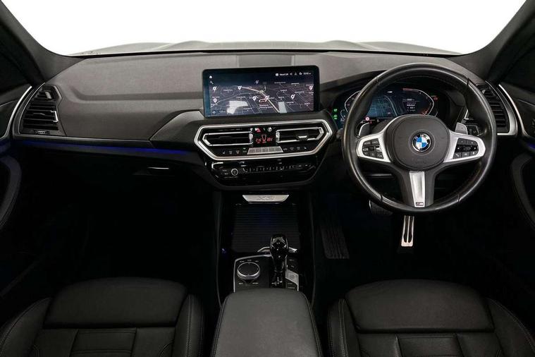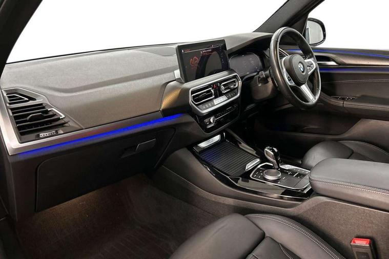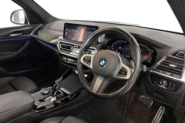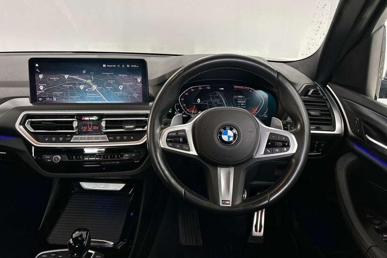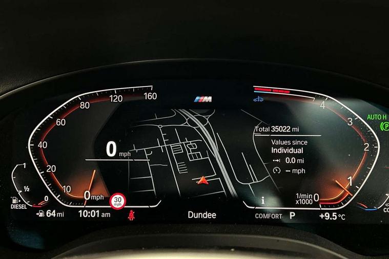 Active Guard, Attentiveness assist, BMW Live Cockpit Professional nav system including 12.3" instrument display + 12.3 high resolution control display, BMW Online services, BMW Teleservices, Brake pad wear indicator in front and rear, Check Control warning system for monitoring of lights and door/luggage compartment open warning, Condition based service - BMW service history, electronic service booklet, integrated owner's handbook, Connected drive services, Cruise control with brake function + speed limiter, Electric boot lid, Front/rear Parking distance control, iDrive Controller with 8 favourite buttons, Instrument cluster with speedometer with mph readout, tachometer, fuel gauge and oil temperature gauge, Lights on warning by audio warning signal when ignition is switched off, Oil sensor for level and grade, warning by check control system, On board computer - average speed+fuel consumption, service interval, clock/date, odometer/trip meter, outside temperature display and ice warning, Optimum shift indicator, Personal Profile - automatic lock when driving away selectable, Stop/start system, Variable sports power steering, Automatic transmission with gearshift paddles, Diesel particulate filter, Drive performance control with ECO PRO comfort + sport mode, Incorrect fuelling protection, Larger capacity fuel tank, M sport suspension, Multi-link rear suspension, Performance Control, BMW professional radio/CD/MP3, DAB tuner, Acoustic glazing, Automatic windscreen wipers and automatic headlight, Black finish on B pillars, Body colour door handles, Body colour electric adjust heated aspherical door mirrors, Body colour roof mouldings, Body coloured bumpers, Direction indicator, side repeaters, integrated in exterior mirrors, Dynamic brake lights, Exhaust tailpipes - dual, round, split left and right with chrome finisher, Fingertip control / anti-trap function on electric window, Folding wing mirrors with auto dimming, Follow me home headlights, Front and rear bumper system with replaceable deformation elements, Front and rear electric windows, Gloss chrome tailpipes finishers, Green tinted heat insulating glass, Heated windscreen washer jets, High beam assistant, High gloss black shadow line roof rails, High gloss shadowline exterior trim in decorative moulding side frame/recess cover/guide rail/B, C pillars/mirror frame and triangle with mirror base, High level 3rd brake light incorporating LED Technology, Interior rear view electrochromatic mirror with automatic anti dazzle function, LED tail lights, Lightweight engineering, M aerodynamic bodystyling, Model designation, Rear side wing doors, Rear wing door, Rear wiper, Shark fin antenna, Side exterior M designation badges, Visible VIN plate, Welcome lighting, Windscreen wipers with adjustable interval, 12V power socket in front centre console, 3 rear headrests, 3 zone automatic air conditioning, 4 lashing points to secure luggage, 40:20:40 split folding rear seat with loading system, 5 seats, Ambient lighting, Anthracite headlining, Automatic interior light when door is opened/ignition switched off or via remote key, Foldable storage floor with compartment, Four grab handles integrated in roof lining, Front and rear bottle holders integrated into door trim storage compartments, Front and rear side armrests integrated into door trim, Front centre armrest with storage compartment, Front footwell lights, Front head restraints, Front sports seats, Front/rear courtesy lights with soft on/off dimming, Front/rear reading lights, Heated front seats, Isofix rear child seat preparation, Leather gear knob, Luggage area underfloor compartment, Luggage compartment lighting, M sport leather steering wheel, Multifunction steering wheel, Parcel shelf removeable and storable under boot floor, Reach and rake adjustable steering column, Rear centre armrest with 2 cupholders, Removable / retractable luggage cover, Seat backrest width adjustment, Slope adjustable rear seats, Storage compartment in rear centre console and front/rear door trims, Sun visors with vanity mirrors and ticket pocket, Toolkit located in luggage compartment, Two front cupholders with removable oddments tray/lid, Vernasca leather upholstery, Connected pro pack - X3, Driving assistant pack - X3, ADB - Automatic Differential Brake, Anti-lock braking system (ABS) with brake assist, Automatic Stability Control (ASC), Battery safety cut-off, BMW emergency call, Brake drying, Brake energy regeneration, Braking pre-tensioning, Child locks on rear doors, Cornering brake control (CBC), Crash Sensor - activation of central locking release, hazard warning light and interior lighting, Deactivation of fuel pump in the event of a crash, Driver and front passenger front and side airbags with passenger deactivation and ITS front and rear head airbags, DSC+, Dynamic brake control, Dynamic Traction Control - DTC, Electromechanical parking brake, Hill descent control, Hill start assist, Seatbelt security check for front seats, Side impact protection, Three point seatbelts to all seats with front and outer rear pyrotechnic belt tensioners and seat belt force limiters, Two tone horn, Tyre pressure sensor, Ventilated front and rear disc brakes, Warning triangle and first aid kit, Central locking switch for all doors, fuel filler cap and luggage compartment, Electronic engine immobiliser, Locking wheel nuts, Remote control including two integrated key - one button for open/close all lockable content, windows and separate button for open luggage compartment, Remote control Thatcham category 1 alarm, Start/stop button with Comfort Go keyless engine start and auto Start/stop deactivation button, Low rolling resistance tyres,