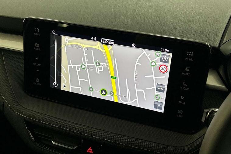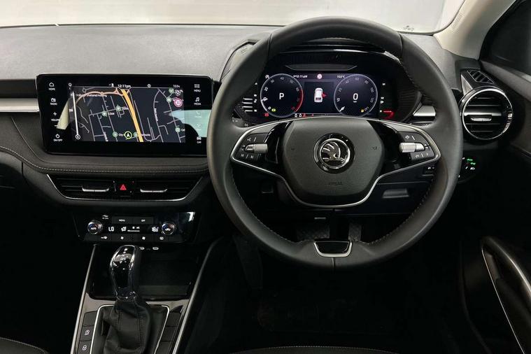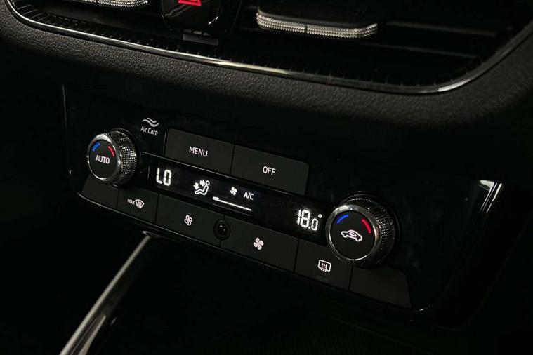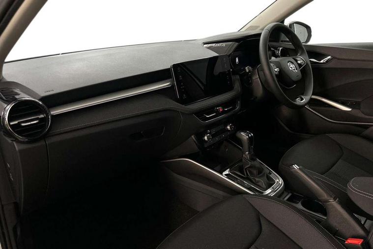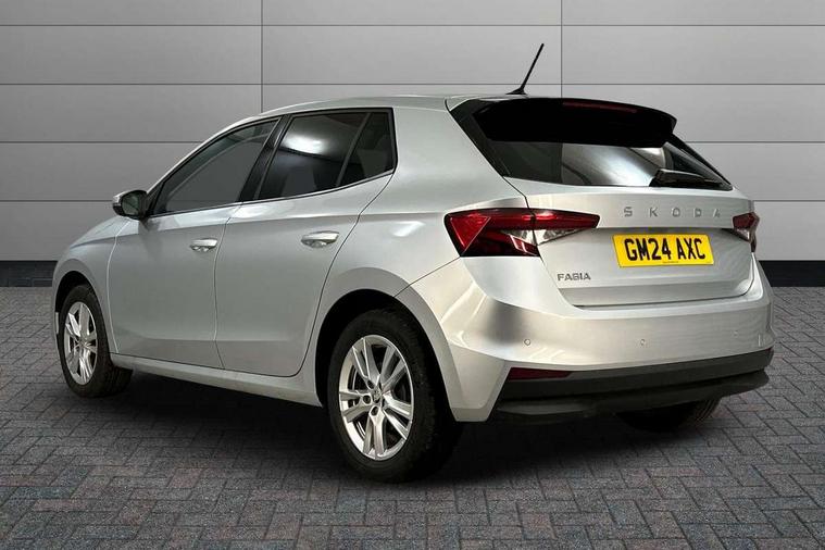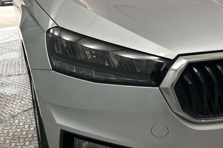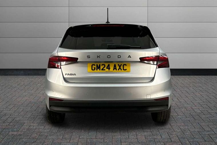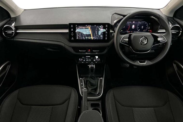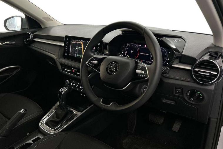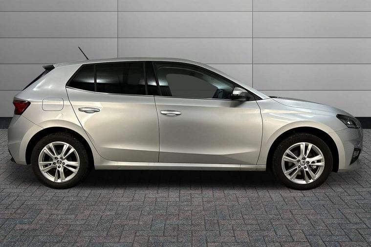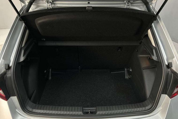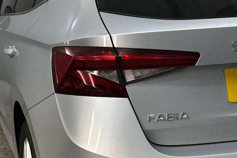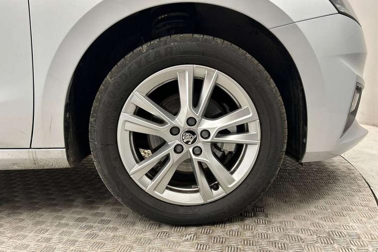 Advanced driver attention and drowsiness monitor, Bluetooth connection, Electromechanical power steering, Exterior temperature gauge, Service interval indicator, Traffic sign recognition, Virtual cockpit with 10.25" colour display, Wireless SmartLink for Apple CarPlay and Android Auto, 6 Speakers (4 in front and 2 in rear), 9.2" colour display skoda navigation system with voice control and web radio, Auxiliary socket for external MP3 player, DAB digital radio reception, Auto dimming rear view mirror, Body colour door mirrors, Body coloured bumpers, Chrome window surround, Door mirror integrated indicators, Front and rear electric windows, Front window wiper intermittent control, Headlight range control - Automatic, Ice scraper in fuel cap, LED daytime running lights with coming and leaving home feature, LED rear lights, Privacy glass, Rear LED fog light, Rear side wing doors, Rear window wiper with washing nozzles, Roof mounted spoiler, SKODA tailgate lettering in chrome, Third brake light, 2 reading lights in front and 2 reading lights in rear, 3 rear headrests, Backrest split and folding, Central console with removable cup holder and storage box, Chrome handbrake release button, Comfort seats, Door sills with fabia badging, Dual zone air conditioning with climatronic electronic control, Fabric upholstery, Front centre armrest, Gearshift knob/handle in leather, Hand brake lever handle in leather, Height adjustable front headrests, Height adjustable front seats, Height adjustable steering wheel, ISOFIX and TopTether anchorage points to the outer rear seats, ISOFIX and TopTether on the front passenger seat, Luggage compartment lighting, Manually adjustable lumbar support in front seats, Metallic grey interior door handles, Pollen filter, Rear seat bench unsplit, Single front passenger seat, Storm grey headlining, Sun visors with mirror and airbag label on passenger side, Textile floor mats, Ticket holder, Umbrella in drivers door, 3-point height adjustable front seats belts with pretensioner and force limiter, Automatic warning lights in case of crash, Driver and passengers airbag with switch off function, e-Call+, ESC including ABS, MSR, ASR, EDS, HBA and XDS, Front and rear seat belt warning, FRONT ASSIST (AEB City and AEB Inter Urban), Front side airbags, Head airbags, Hill hold control, One tone horn, Pedestrian protection, Three rear 3-points safety seat belts with pretensioner and force limiter including stop function for outer rear seat belts, Tyre pressure monitoring system, Anti-theft alarm system including immobiliser, interior monitoring, backup horn, and towing protection, Central locking with radio remote control, interior controls, SAFE function and 2 foldable keys, Chrome edged air vents, Metallic grey central console cover, Metallic grey upper decorative trim, Satin black door and side trim panel in front, Textile microsuede grey lower decorative trim with art grey stitching, Anti-theft wheel bolts protection, Super-low rolling resistance tyres,