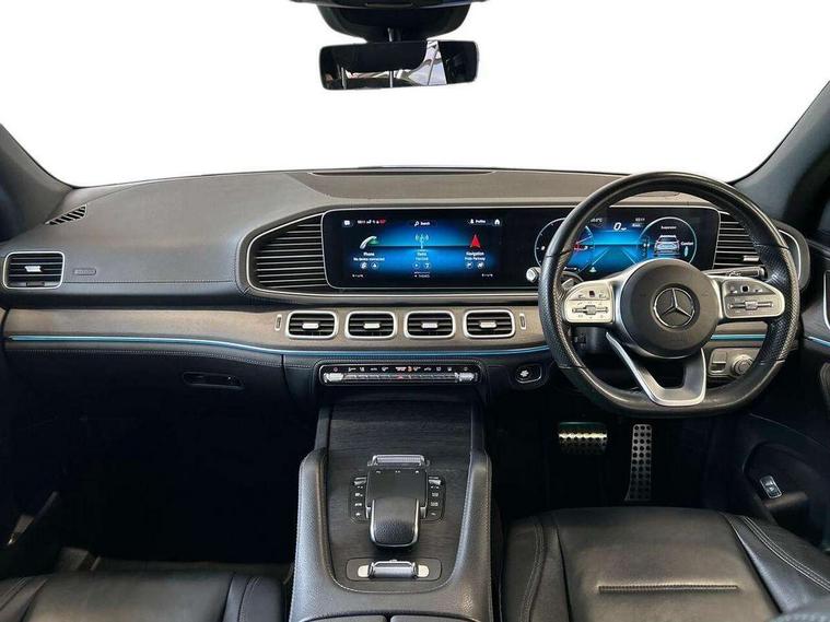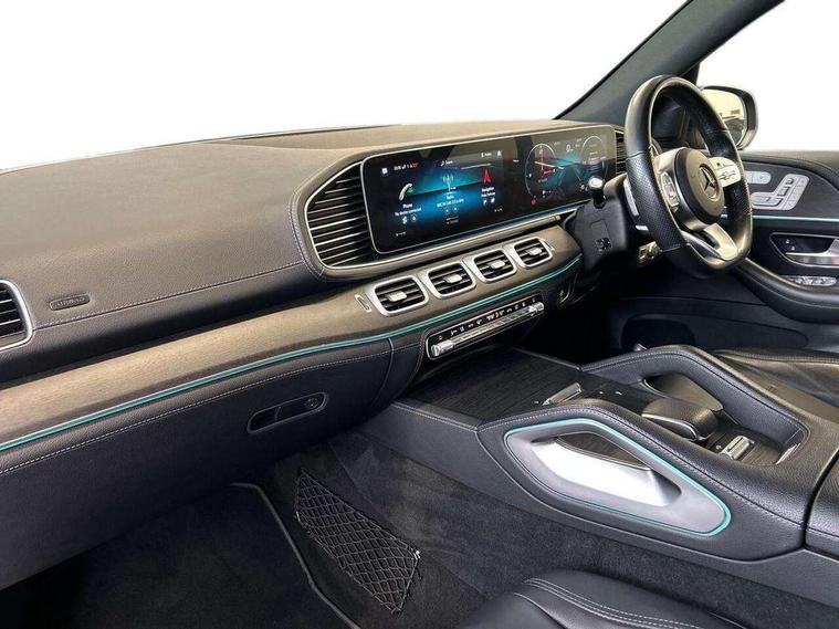 Attention assist, Blind spot assist, Brake wear warning display, Cockpit display 12.3" widescreen digital instrument cluster, Cruise control with variable speed limiter, Direct steer speed sensitive steering, DYNAMIC SELECT with a choice of driving modes (ECO, Comfort, Sport and Individual), Easy-pack tailgate - Powered opening/closing automatically, ECO start/stop function, Geofencing, Hard-disk navigation, Hey Mercedes Voice activation, High resolution 12.3" multimedia colour display, Lane keeping assistant (LKA), MBUX augmented reality for navigation, Mercedes me connect including emergency call system, accident recovery, breakdown and maintenance management, Outside temperature display, Remote boot release, Service indicator (ASSYST), Smartphone integration with Apple CarPlay and Android auto, Speed limit assist, Status display for rear seat belts in instrument cluster, Traffic Sign Assist, Traffic sign recognition including wrong way warning function and display of posted speed limits in the instrument cluster, Trip computer in multifunction display showing current fuel consumption, Wireless charging system for mobile devices, 3.7 kW monophase on board charger, 85 litre fuel tank, Agility control suspension with selective damping system and lowered by 15mm, Charging cable for household sock (mode 2) - 8m, 8A, Charging cable for wallbox and public charging stations (mode 3) - 8m, 16A, Diesel particulate filter (DPF), Incorrect fuelling protection, DAB Digital radio, Dual bluetooth interface, 2 USB ports (type C), MBUX multimedia system with DAB digital radio and touchpad including satellite navigation, Adaptive brake lights, Adaptive high beam assist, Aerial for GPS, Aluminium look, illuminated running boards with rubber studs, AMG bodystyling front and rear aprons and side skirts in polished aluminium, Body colour door mirrors, Body coloured bumpers, Electric windows with one touch opening/closing and obstruction sensors, Exterior mirrors heated and electronically adjustable, Front green tinted glass, LED rear lights, Multi beam LED headlights, Privacy glass - heat insulating dark tinted glass, Radiator grille with integrated star and single louvre in matt iridium silver with chrome trim, Radio aerial integrated into rear window, Rain sensing windscreen wipers, Rear wiper, Roof rail system, Top surround of side windows in polished aluminium, Visible twin pipe exhaust system integrated into bumper, Waistline in polished aluminium, 3 spoke AMG multifunction steering wheel with touch control buttons, trimmed in black nappa leather with flattened bottom section, 4 way adjustable front head restraints and 2 way rear head restraints, 4 way lumbar support, 40:20:40 split folding rear seats, AMG brushed stainless steel sports pedals with rubber studs, AMG floor mats with AMG lettering, Artico man-made leather upper dashboard with contrast topstitching, Automatic child seat recognition sensor, Black fabric roof liner, Central stowage compartment with 12 V socket in centre console, Chrome door pins, Courtesy lights in rear grab handles with reading light functionality, Four way partially front electric seat adjustment, Front centre armrest with stowage compartment and illuminated grab handles, Gearshift paddles on steering wheel, Glasses compartment in overhead control panel, Glove compartment - lockable, air conditioned and illuminated, Heated front seats, Interior lighting - 64 colour Ambient lighting, Nappa leather upholstery, Seat occupancy sensor for front passenger seat, Second row three seats, Steering column manually adjustable for height and reach, Sunvisors with illuminated vanity mirrors, Touchpad, Two zone automatic climate control, Airmatic package - GLE, Anti theft Protection package - GLE, Memory package - GLE, Mirror package - GLE, Parking package with 360 camera - GLE, Active bonnet, Active braking assist, Adaptive brake system with HOLD function and brake drying in the wet, Airbags - driver and front passenger, with extended adaptivity for front passenger airbag, Airbags - sidebag for driver and front passenger with combined thorax/pelvis bag, Airbags - windowbags, Anti-lock braking system (ABS), Childproof locks manually operated for rear doors and electrically operated for rear power windows, Drivers knee airbag, Electronic parking brake, Electronic Stability Programme (ESP), ISOFIX child seat attachment points two outer rear seats, Perforated front brake discs and brake calipers with Mercedes-Benz lettering, Pre-Safe anticipatory safety system, Three point rear seat belts, Tyre pressure monitoring system and loss warning system, Warning triangle and first aid kit, Alarm system/interior protection/immobiliser, Central locking with interior switch, automatic locking and crash sensor with emergency opening function, Chrome surround in electric key, Keyless Go starting function, Dashboard and door, anthracite open pore oak wood trim, Trim - Centre console, anthracite open pore oak wood trim, 20" AMG 5 twin spoke light alloy wheels, Summer tyres with noise reducing absorber, TIREFIT with tyre inflation compressor,