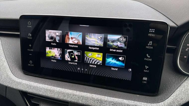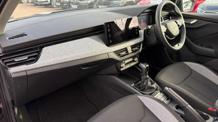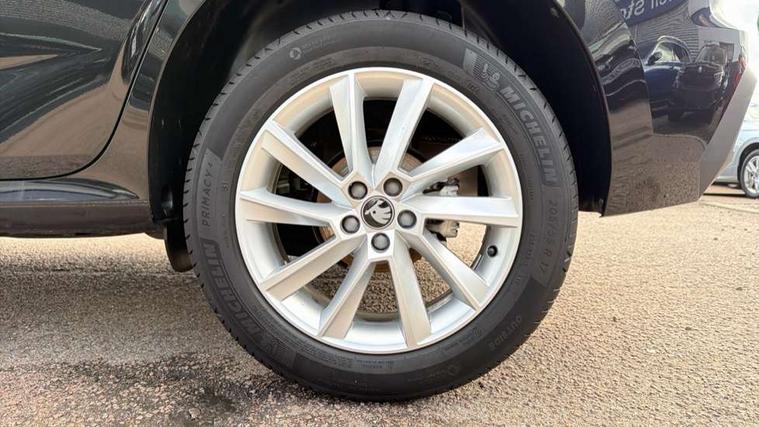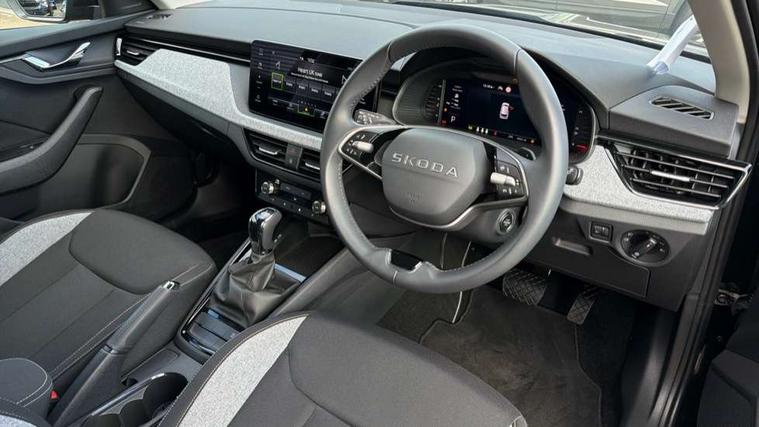 Advanced driver attention and drowsiness monitor, Bluetooth system, E-call, Front assist system, PAS, Rear parking sensors, Rear view camera, Service indicator, Speed limiter, Traffic sign recognition, Virtual cockpit with 10.25" display, Voice control system, Wireless smartlink, 4 USB C ports, 8 Speakers, 8.25" Skoda infotainment display, 9.2" Skoda navigation display, DAB Digital radio, Auto dimming rear view mirror, Automatic headlight control with coming home and leaving home feature, Black roof rails, Body colour bumpers, Body colour door mirrors and handles, Chrome grille surround, Front and rear electric windows, Full LED headlights, Heated rear window, LED brake lights, LED daytime running lights, LED front turning lights, LED high beam, LED low beam, LED third brake light, Rear LED fog light, Rear side wing doors, Rear wiper, Ticket holder inside windscreen, 12V socket in luggage compartment, 3 seat bench in 2nd row, Black hotstamping, Cargo elements, Chrome inner door handles, Driver and passenger sun visors with vanity mirror, Dual zone climate control, Front and rear roof lights, Front centre armrest, Front head restraints, Glove compartment with illumination, Height adjustable driver seat, Height adjustable front passenger seat, Ice scraper, Inner circulation control with pollen filter, ISOFIX on front passenger seat, Isofix preparation for back seats, Krepp recycled decor inserts, Leather gearknob and handbrake lever, Loft cloth upholstery, Manual lumbar support for front seats, Net package and top tether hooks in boot space, Net under rear shelf, Overhead glasses storage compartment, Pocket on the back of both front seats include mobile phone pockets, Rake/reach adjustable steering wheel, Reading lights, Satin black door inserts, Single front passenger seat, Textile floor mats, Third rear headrest, Top tether for front passenger seat, Umbrella in driver's door, 3x3 point rear seatbelts, Airbags - driver and front passenger, Disc brakes, ESP, Extended and predictive pedestrian/cyclist protection, Front passenger airbag deactivation switch, Front side airbags with curtain airbags, Hill hold control, Manual leather parking brake, Manual rear child locks, One tone horn, Seatbelt reminder for driver an co-driver, Traction control, Tyre pressure monitor, Anti-theft alarm system with interior monitoring, backup horn, towing protection and remote central locking with SAFE system, Anti-theft wheel bolts, Electronic engine immobilizer,