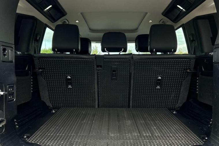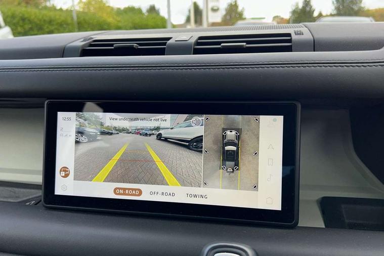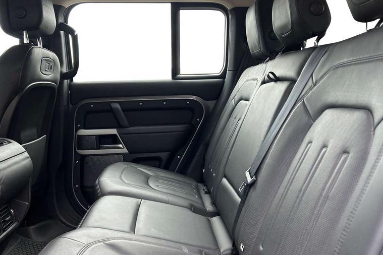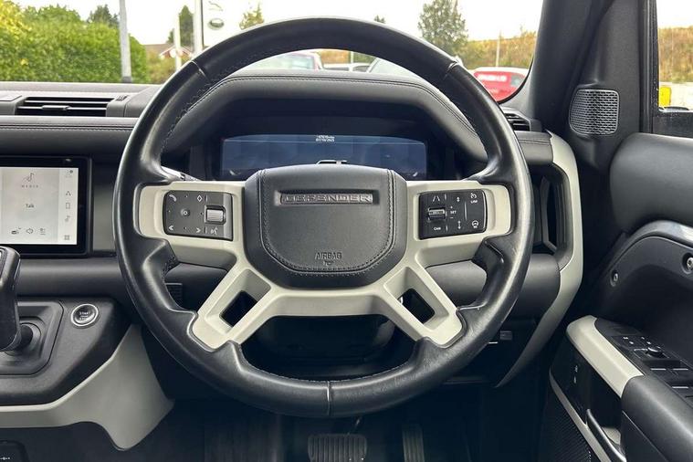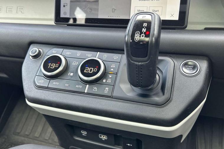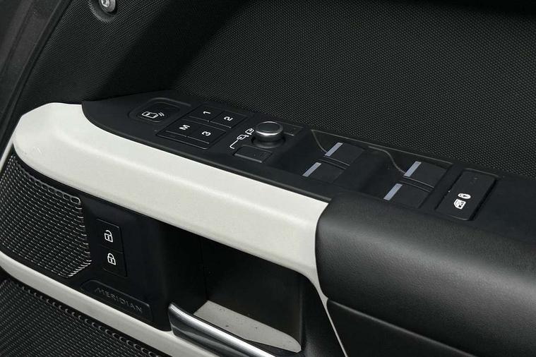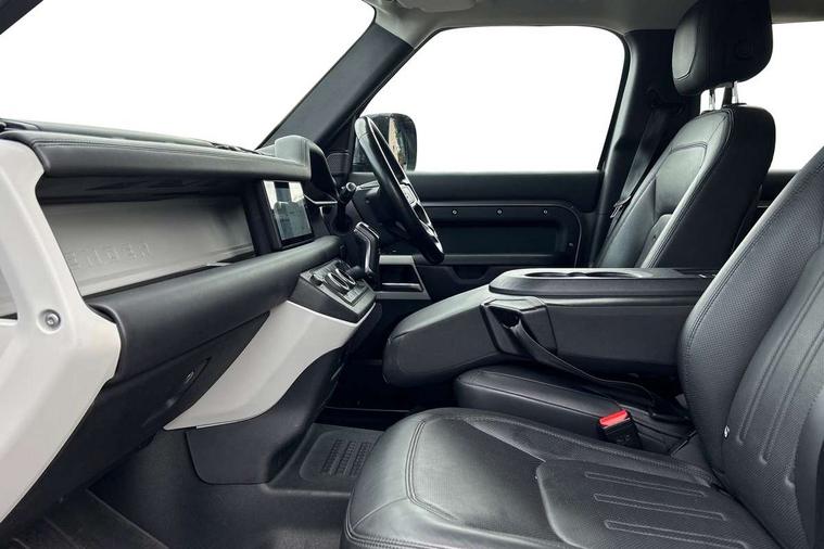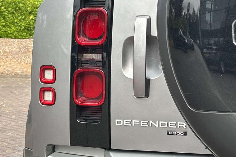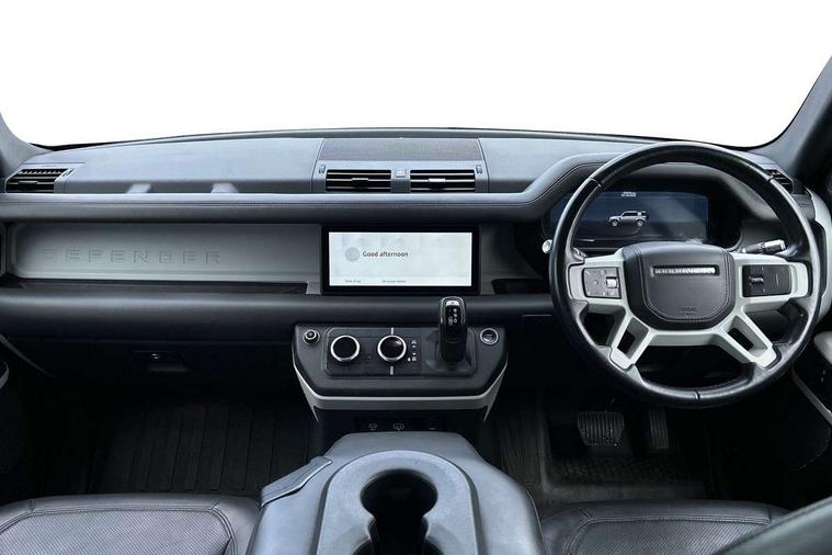 360 degree parking aid, 3D Surround Camera with 360 View, 180 Rear View, Front Traffic Detection, Forward Vehicle Guidance, Tow Hitch Assist and clear sight Ground View, Adaptive cruise control, Android Auto, Apple CarPlay, Assisted tailgate with soft close, Blind spot assist, Bluetooth system, Brake pad wear indicator, Clear exit monitor, Click and go integrated base unit, Connected navigation pro, Driver condition monitor, Electric power assisted steering (EPAS), Interactive driver display, Lane keep assist, Less CE Device Charging, Push button start, Rear collision monitor, Rear traffic monitor, Traffic sign recognition with adaptive speed limiter, Trip computer, Wade Sensing, Adaptive dynamics, DAB Radio (Digital Audio Broadcasting), Pivi pro connected, Automatic headlight levelling, Automatic headlights, Centre high mounted stop light, ClearSight interior rear view mirror, D300 badge, Electric heated/power fold door mirrors with approach lights and auto dimming driver side, Electric windows with one touch open/close and anti-trap, Follow me home lighting, Front fog lights, Heated rear window with timer, Heated windscreen, LED tail lights, Matrix LED headlights with signature DRL, Puddle lights, Rain sensing windscreen wipers, Rear fog lights, Standard treadplates, Trailer stability assist, 12V power socket in loadspace, 14 way heated and cooled electric adjustable memory front seats with 4 way manual headrests, 3 individual front seats with centre jump seat and folding front centre armrest, Cabin lighting, Carpet mats, Durable rubber cabin flooring, Durable rubber loadspace flooring, Electric reach + rake adjustable steering column, Extended leather upgrade, Footwell lights, Front passenger isofix child seat attachment, Heated steering wheel, Leather gearshift, Leather steering wheel, Loadspace Hook, Multifunction steering wheel, Overhead stowage for sunglasses, Rear headrests, Rear ISOFIX, Rear reading lights, Storage glovebox, Sunvisors with illuminated vanity mirrors, Windsor leather upholstery, Online pack with data plan - Defender, 6 x 3 point seatbelts, ABS, Brake hold function, Cornering brake control (CBC), Customer configurable autolock, Driver and passenger airbags, DSC - Dynamic Stability Control, EBD - Electronic brakeforce distribution, Electric parking brake (EPB), Emergency braking, ESP + traction control, Front airbags with passenger seat occupant detector, HDC - Hill descent control, Hill launch assist, Low traction launch, Power operated child locks, Remote for (e-Call, Optimised assistance call, InControl app, Climate, beep and flash and door), RSC - Roll stability control, Seat belt reminder, TPMS (Tyre pressure monitoring system), Alarm, Immobiliser, Intrusion sensor, Keyless entry and go, Locking wheel nuts,