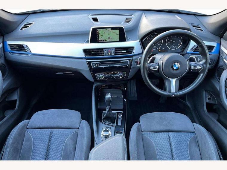 Active Guard incl speed limiting and lane departure functions with auto steering, and front collision warning with brake intervention, Ambient temperature display, Attentiveness assist, Automatic tailgate opening, BMW Online services, BMW Teleservices, Lights on warning, On board computer, Outside temperature gauge, Real time traffic information, Service interval indicator, Speed limiter, Stop/start button, Tyre puncture warning system, Diesel particulate filter, Electronic differential lock, Performance Control, BMW professional radio with CD player, DAB Digital radio, Adaptive LED Headlights, Adjustable headlights, Body colour bumpers, Body colour door handles, Body colour door mirrors, Chrome tailpipe finisher, Electrically adjustable and heated door mirrors, Fingertip control / anti-trap function on electric window, Follow me home headlights, Front and rear electric windows, Front fog lights, Heat insulating tinted glass, Heated windscreen washer jets, kidney grille with high gloss black vertical slats, LED daytime running lights, Rain sensor including auto headlights activation, Welcome home function, 12v power point in centre console, 12V power socket in passenger footwell, 3 spoke sport nappa leather steering wheel, 4 grab handles, Anthracite headlining, Boot light, Centre console with cupholders, Driver/passenger sunvisors with ticket holders, Drivers folding storage compartment, Dual zone automatic air conditioning, Front and rear door armrests, Front centre armrest/sliding cover, Front passenger isofix child seat attachment, Front sports seats, Front/rear adjustable head restraints, Heated front seats, Illuminated glovebox, Isofix rear child seat preparation, Leather gearknob/gaiter/handbrake grip, LED ambient lighting in door trim, Luggage area underfloor compartment, Multifunction steering wheel, Rake/reach adjustable steering wheel, Sliding/split/reclining 40/20/40 rear seat with 60/40 split rear seat base, Steering wheel gearshift paddles, Extended storage package - X1, 3 rear 3 point seatbelts, ABS/EBD, Audio/visual collision warning system, Automatic Stability Control (ASC), BMW emergency call, Cornering brake control (CBC), Crash Sensor - activates hazard/interior lighting + unlocks doors, Driver/Front Passenger airbags, Driver/front passenger side airbags, DSC - Dynamic Stability Control, Dynamic brake control, Dynamic Traction Control - DTC, Electronic parking brake, Front and rear head airbags, Front passenger airbag deactivation, Front seatbelt force limiters, Hill start assist, Pyrotechnically pre-tensioned front seatbelts, Rear door child safety locks, Seatbelt warning, Tyre pressure monitor, Warning triangle and first aid kit, Auto door lock when driving, Central locking including boot and fuel flap with deadlocks, Engine immobiliser, Locking wheel nuts, Remote control Thatcham category 1 alarm, High gloss black centre console, Low rolling resistance tyres,