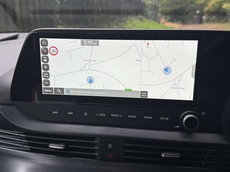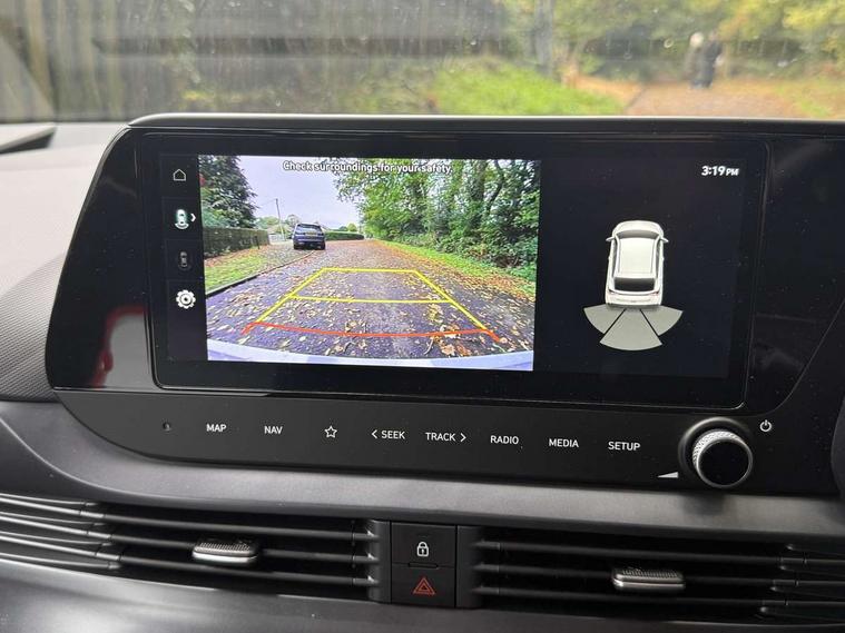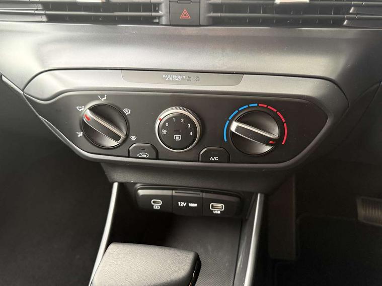 10.25" digital supervision cluster, 2nd Gen eCall, 8" Touchscreen with DAB, Apple car play/Android Auto, Cruise control + speed limiter, Forward collision assist with car, pedestrian and cycle detection, Intelligent speed limit warning, Lane follow assist, Lane keep assist, PAS, Rear parking sensor, Rear view camera with dynamic guidelines, USB C port front, 3rd brake light, Dusk sensor, Electric adjustable heated door mirrors, Front grille mesh pattern design, High beam assist, LED daytime running lights, LED Headlights, LED taillights, Rain sensor, Rear side wing doors, Rear wiper, Repositioned flat metal hyundai emblem, 3 seat bench in 2nd row, Adjustable head restraints, Air conditioning, Cloth upholstery, Floor mats, Leather steering wheel, Single front passenger seat, 3x3 point rear seatbelts, ABS with front and rear diagonally split, Autonomous emergency braking, Child locks on rear doors, Front ventilated disc brakes, Rear solid disc brakes, Tyre pressure monitoring system, 16" alloy wheels, Tyre repair kit,