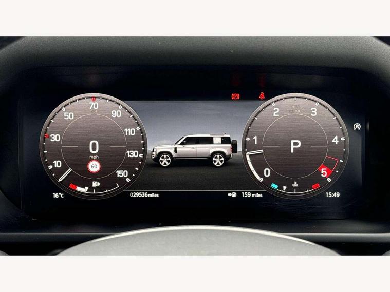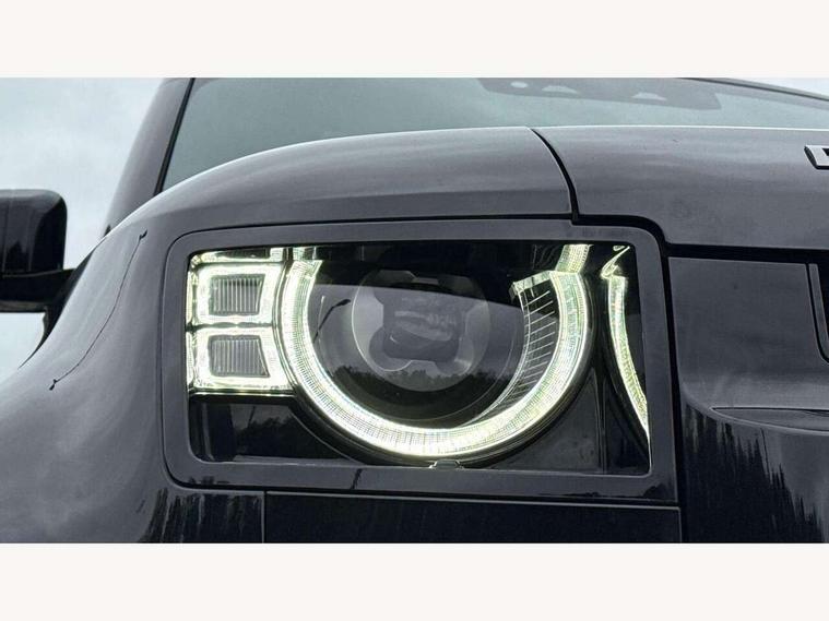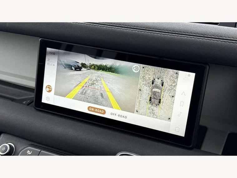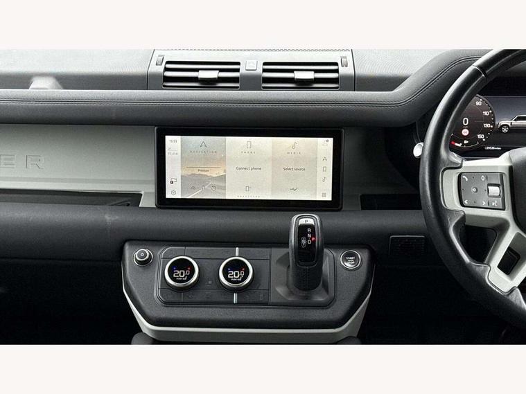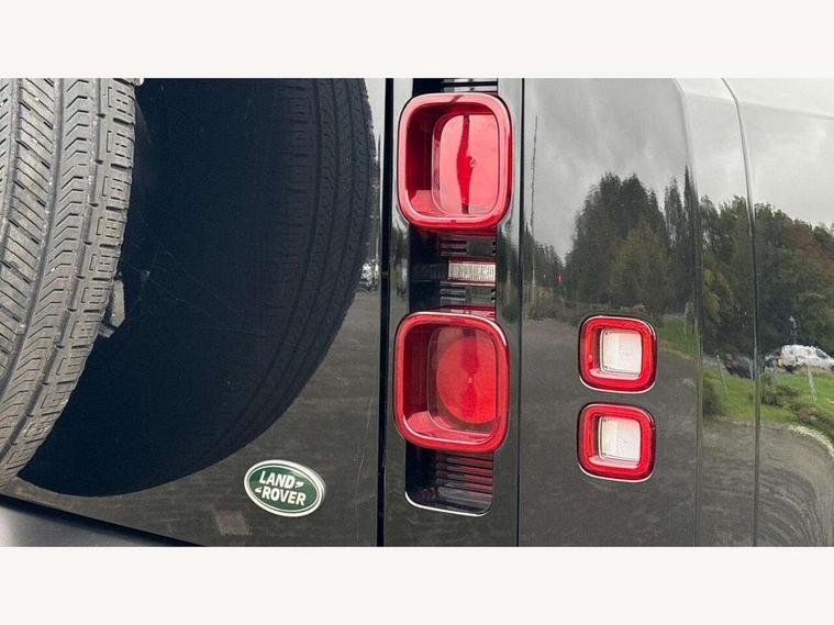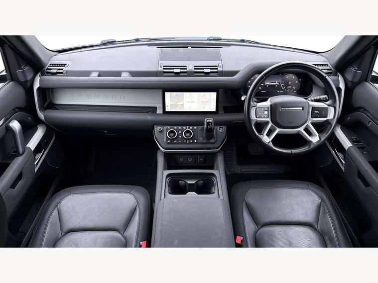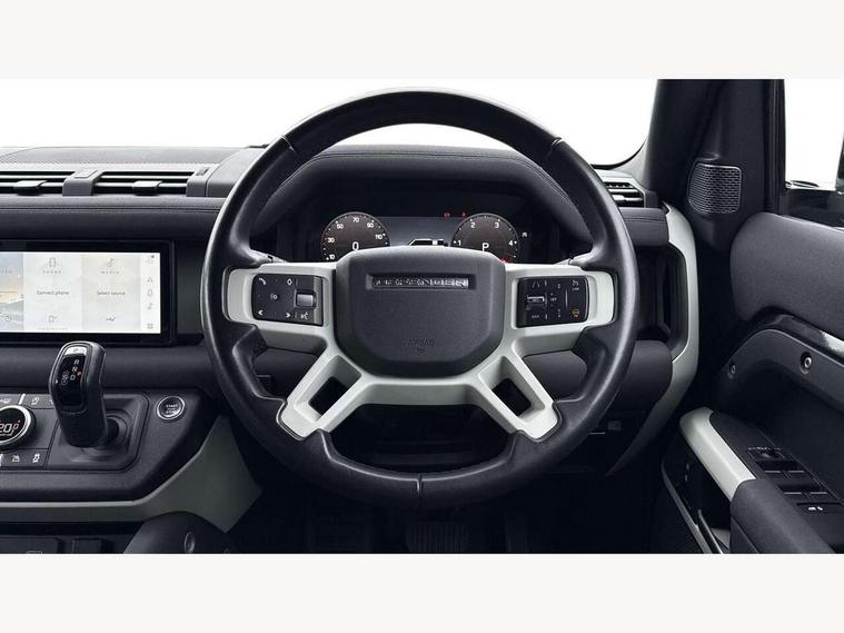360 degree parking aid, 3D Surround Camera with 360 View, 180 Rear View, Front Traffic Detection, Forward Vehicle Guidance, Tow Hitch Assist and clear sight Ground View, Adaptive cruise control, Android Auto, Apple CarPlay, Assisted tailgate with soft close, Bluetooth system, Brake pad wear indicator, Connected navigation pro, Driver condition monitor, Electric power assisted steering (EPAS), Lane keep assist, Push button start, Traffic sign recognition with adaptive speed limiter, Trip computer, Wade Sensing, 8 speed automatic transmission, All wheel drive system, Twin speed transfer box, DAB Radio (Digital Audio Broadcasting), Meridian 400w sound audio system with 11 speakers and subwoofer, Pivi pro connected, Auto high beam assist, Automatic headlight levelling, Automatic headlights, Centre high mounted stop light, Electric heated/power fold door mirrors with approach lights and auto dimming driver side, Electric windows with one touch open/close and anti-trap, Follow me home lighting, Front fog lights, Heated rear window with timer, Heated windscreen, LED tail lights, Premium LED headlights with signature DRL, Privacy glass, Puddle lights, Rain sensing windscreen wipers, Rear fog lights, Rear side wing doors, Rear wiper, Side hinged tailgate, Trailer stability assist, X-Dynamic badge, 12V power socket in loadspace, 3 seat bench in 2nd row, Alpine lights, Durable rubber cabin flooring, Durable rubber loadspace flooring, Footwell lights, Front head restraints, Loadspace cover, Loadspace Hook, Multifunction steering wheel, Overhead stowage for sunglasses, Rear headrests, Rear ISOFIX, Rear reading lights, Single front passenger seat, Standard seat configuration, Storage glovebox, Sunvisors with illuminated vanity mirrors, Online pack with data plan - Defender, 5 x 3 point seatbelts, ABS, Brake hold function, Cornering brake control (CBC), Customer configurable autolock, DSC - Dynamic Stability Control, EBD - Electronic brakeforce distribution, Electric parking brake (EPB), Emergency brake assist, Emergency braking, ESP + traction control, Front airbags with passenger seat occupant detector, HDC - Hill descent control, Hill launch assist, Low traction launch, Power operated child locks, Remote for (e-Call, Optimised assistance call, InControl app, Climate, beep and flash and door), RSC - Roll stability control, Seat belt reminder, TPMS (Tyre pressure monitoring system), Alarm, Immobiliser, Intrusion sensor, Keyless entry, Locking wheel nuts,