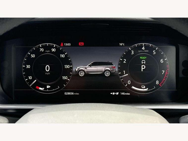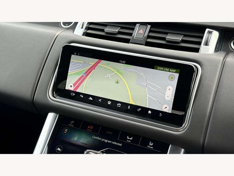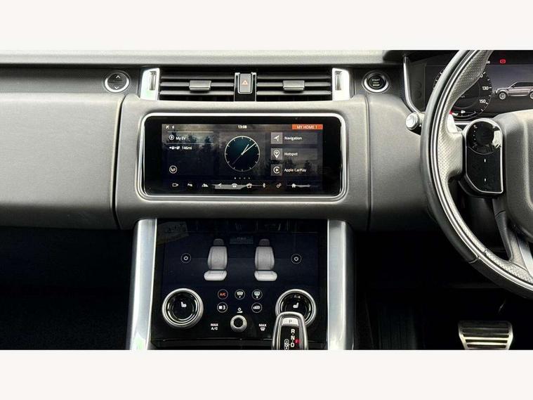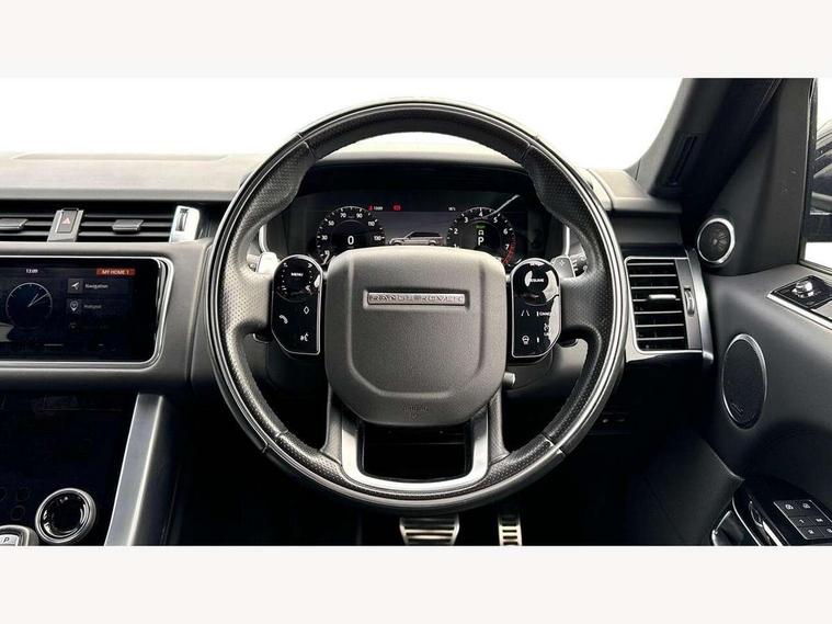 All Terrain Info Centre, Android Auto, Apple car play, Bluetooth connectivity, Electric power assisted steering (EPAS), Incontrol apps in vehicle touchscreen, Interactive Driver display instrument cluster, Mist sensor, Navigation pro system with 10" touch screen, app interface and media storage, Pro services and wifi hotspot, Push button start, Remote premium - Upgraded Incontrol remote app including remote climate control (engine dependent), remote lock + Unlock and remote beep + flash, TFT Virtual Instrument Panel, Touch pro duo system, Trip computer, 7 kW onboard charger, Adaptive dynamics, Electronic active differential with brake torque vectoring, Electronic air suspension, Gradient release control (GRC), Public charging cable, Terrain Response 2 with dynamic program, Twin speed transfer box, Bluetooth audio streaming, DAB Radio (Digital Audio Broadcasting), Incontrol protect - SOS emergency call with automatic collision detection, optimised assistance call and Incontrol remote app essential, USB/aux input socket, Acoustic front and toughened rear side glass, Acoustic laminated front windows, Adaptive brake lights, Auto dimming interior rear view mirror, Automatic headlights, Body coloured side sills and bumpers corners, Centre high mounted stop light, Electric windows with one touch open/close and anti trap, Electrical towing preparation, Engine cover, Follow me home lighting, Front and rear recovery eyes, Front fog lights, Headlight power wash, Heated rear window, Heated windscreen includes heated washer jets, Illuminated metal treadplates with brand name script, LED rear lamps, Privacy glass (Tinted glass rear of B pillar), Rain sensing windscreen wipers, Rear fog lights, Rear side wing doors, Rear wash/wipe, Remote window closing, Side repeater indicators in mirror, Sport Badge in black, Standard bonnet, Trailer stability assist, Twin bright tailpipes, 2 way active front head restraints, 2 way rear head restraints, 3 seat bench in 2nd row, Auto air recirculation, Bright metal foot pedals, Centre console with armrest, Climate control memory, Customer configurable single point entry, Driver's footrest, Extended leather upgrade includes door top rolls and leather instrument panel mid section, Front and rear cupholders, Front door storage space, Front map lights, Front seat back map pockets, Front stowage pocket, Front/rear passenger grab handles, Heated steering wheel, Isofix child seat preparation, Leather steering wheel with Atlas inserts, Loadspace light, Loadspace mounting provisions, Lockable glovebox, Multifunction steering wheel, Perforated Windsor leather upholstery, Pollen filter, Power socket, Reach/rake electric adjustable steering column + entry/exit tilt away, Rear centre armrest, Rear ISOFIX, Roller blind loadspace cover, Satin chrome gearshift paddles, Single front passenger seat, Sports pedals, Three 12V accessory power outlets, Black Exterior pack - Range Rover Sport Dynamic, Smartphone pack - Range Rover Sport, 3 point seatbelts on all seats, Anti-lock braking system (ABS), Brake pre-fill technology, Cornering brake control (CBC), Curtain airbags, Customer configurable autolock, DSC - Dynamic Stability Control, Dual stage driver/passenger airbags, EBD - Electronic brakeforce distribution, Electric parking brake, Electronic traction control, Emergency braking includes city, urban AEB and pedestrian, Front seatbelt pretensioners, Gradient acceleration control, Height adjustable front seatbelts, Hill descent control, Hill launch assist, Low traction launch, Passenger seat occupant detector with front airbags, Power operated child locks, Roll stability control, Seatbelt warning, TPMS (Tyre pressure monitoring system), Immobiliser, Intrusion sensor, Keyless entry, Locking wheel nuts, Perimetric and volumetric anti theft alarm, Remote locking, Grand black veneer, 21" 9 spoke gloss black alloy wheels - style 9001, Tyre repair system,