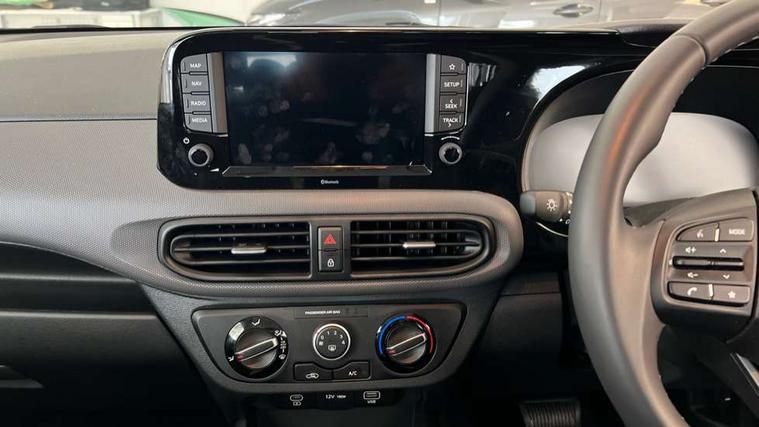 8" Touchscreen satellite navigation including mapcare and LIVE services, Apple car play/Android Auto, Bluelink mobile remote connectivity, Bluetooth connectivity with voice recognition, Cruise control, Driver attention alert system, eCall emergency call system, Forward Collision-Avoidance Assist (FCA) - Pedestrian/Cyclist, Full-width 4.2" LCD instrument cluster, Intelligent speed limit assist, Lane departure warning system with lane keep assist - LKAS, Lane follow assist, PAS, Rear parking sensors, Rear view camera with guidelines, Roadside assistance, Start/Stop function, Tailgate, Trip computer, 2 front/2 rear speakers, Front and rear USB-C ports, Front USB connection, Leading vehicle alert (LVA), Steering wheel audio, phone and cruise controls, 1 speed non intermittent rear windscreen wiper, Black finish on B pillars, Body colour door handles, Body coloured bumpers, Body coloured door mirrors, Electric front windows, Electric rear windows, Electrically adjustable and heated door mirrors, Flat metal emblem, Front grille in matte black, Front intermittent wipers, Halogen headlights, Headlights inner with Black Blade design, Heated rear window, High beam assist, Indicator light on door mirrors, LED daytime running lights, Rear roof spoiler with integrated LED brake light, Rear side wing doors, 12v power outlet - front, 3 seat bench in 2nd row, 60/40 split folding flat to floor rear seats, Auto light control, Bottle holders in front/rear doors + front centre console, Cabin and luggage compartment interior lighting, Cloth upholstery, Driver + passenger vanity mirrors, Driver's seat height adjustment, Driver/passenger sunvisors with ticket holders, Floor mats, Front door pockets, Front Head Restraints - Vertical and Horizontal Adjustment, Glove compartment, Height adjustable steering column, Isofix child seat preparation, Leather wrapped steering wheel and gear knob, Manual air conditioning, Rear door pockets, Single front passenger seat, Vertical adjustment rear head restraints, 3x3 point rear seatbelts, Airbags - front, front side and curtain airbags, Anti-lock brake system (ABS), Autonomous emergency braking (AEB) with forward collision warning system, Brake assist function, Childproof rear door locks, Electronic stability control, Front and rear seatbelt reminder, Front seatbelt pretensioners, Hill start assist control (HAC), Passenger airbag deactivate switch, Traction control, Tyre pressure monitoring system, Immobiliser, Perimeter alarm, Rear occupant alert, Remote central locking, Second remote key, Speed sensitive auto door locking, 15" Alloy wheels, Temporary mobility kit (TMK),