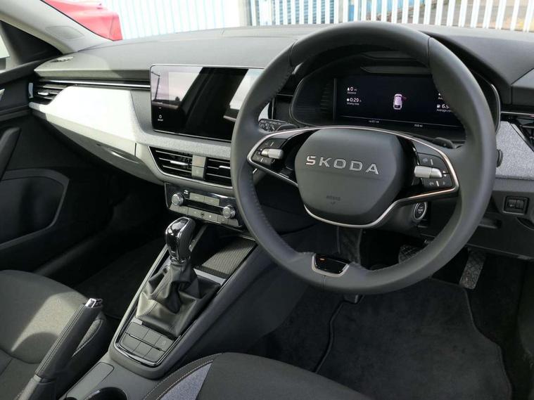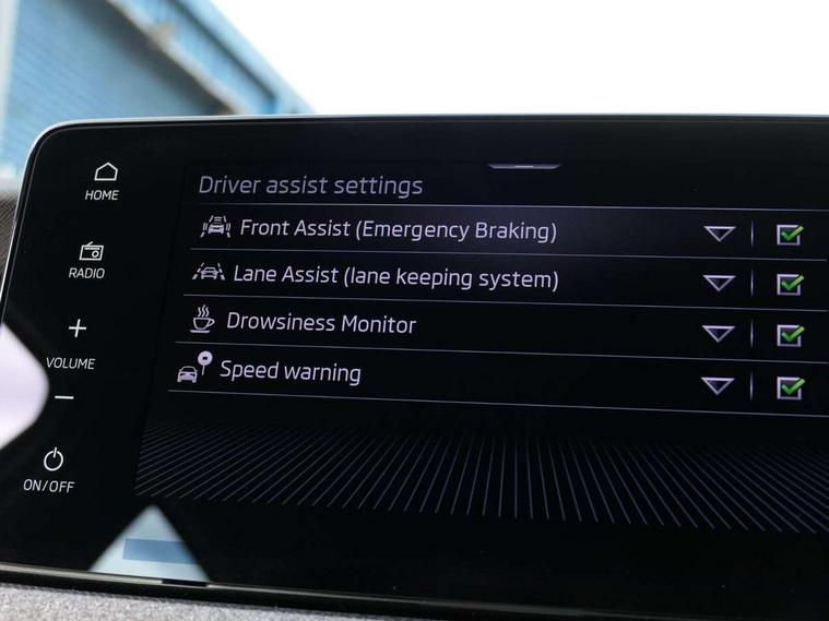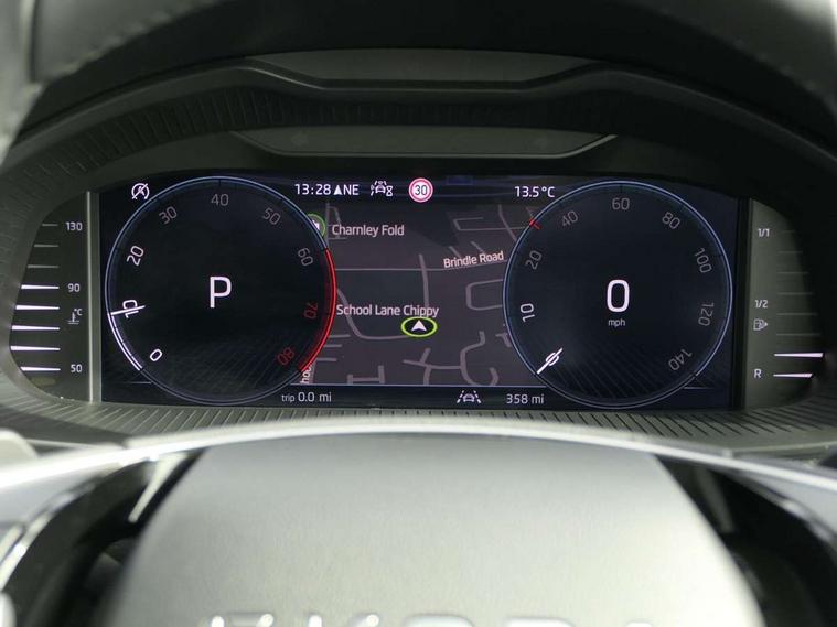 Advanced driver attention and drowsiness monitor, Bluetooth, e-Call (emergency call), Front assist system, PAS, Rear parking sensors, Rear view camera, Speed limiter, Tailgate, Traffic sign recognition, Virtual Cockpit - 10.25" digital display, Voice control system, Wireless smartlink, 4 USB C ports, 8 Speakers, 9.2" Skoda navigation display, DAB radio, Auto dimming rear view mirror, Automatic headlamp activation with Coming home and Leaving home feature, Automatic high/low beam, Body colour bumpers, Body colour door mirrors and handles, Chrome moulding around grille, Front and rear electric windows, Full LED headlights, Heated rear window, LED 3rd brake light, LED brake lights, LED daytime running lights, LED front turning lights, LED high beam, LED low beam, LED taillights, Rear LED fog light, Rear side wing doors, Rear wiper, Tinted windows, Unique dark chrome design logo on alloy wheels, 12V socket in luggage compartment, 3 seat bench in 2nd row, Black / Grey armrest stitching, Black hotstamping, Cargo elements, Chrome inner door handles, Door inserts in satin black, Driver and passenger sun visors with vanity mirror, Dual zone climate control, Front and rear roof lights, Front centre armrest, Front head restraints, Glasses storage in roof liner, Height adjustable driver seat, Height adjustable passenger seat, Ice scraper, Illuminated glove compartment, Inner circulation control with pollen filter, ISOFIX for front passenger seat, Isofix preparation for back seats, Leather gearknob and handbrake lever, Loft cloth upholstery, Luggage net under rear parcel shelf, Manual lumbar support for front seats, Net package and top tether hooks in boot space, Pearl grey ceiling, Pocket on the back of both front seats, incl. mobile phone pockets, Single front passenger seat, Skoda lettering on steering wheel, Textile floor mats, Third rear headrest, Ticket holder, Top tether for front passenger seat, Umbrella in driver's door, 3x3 point rear seatbelts, ABS, Child locks, Curtain airbags and front side airbags, Disc brakes, Driver and front passenger airbags, ESP, Hill hold control, Manual leather parking brake, One tone horn, Passenger airbag switch off function, Seatbelt reminder for driver and front passenger, Tyre pressure monitoring system, Anti theft alarm system with interior monitoring, backup horn and towing protection, Anti-theft wheel bolts, Remote central locking with 2 remote folding keys, SAFE function for remote central locking, Decord pad, door inserts Kota uni,