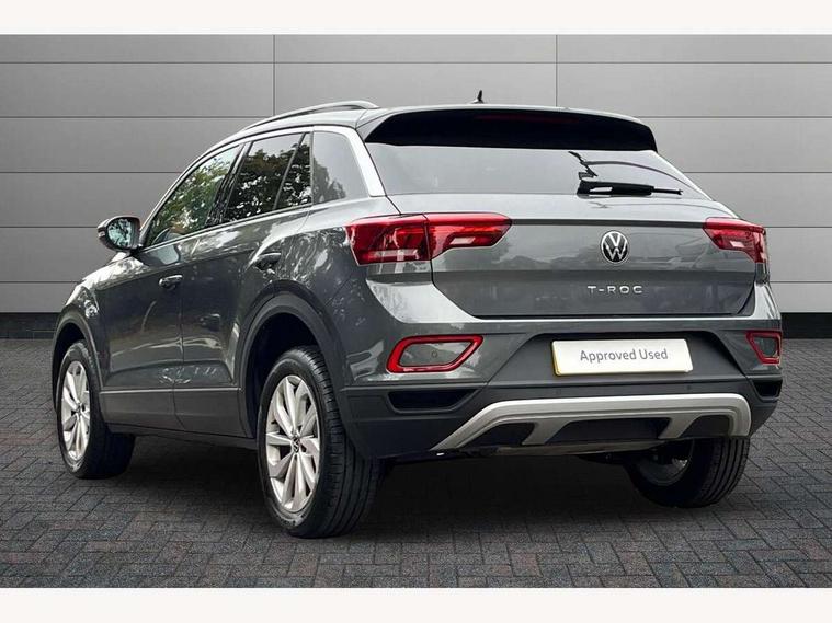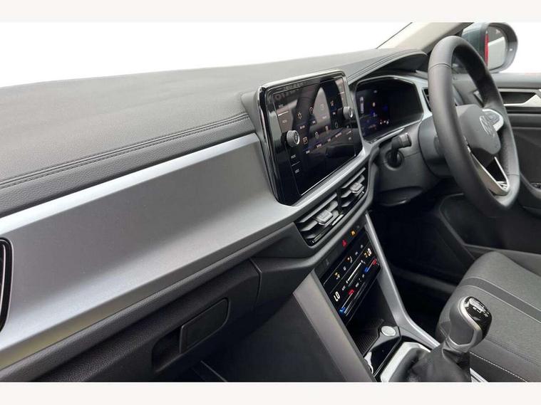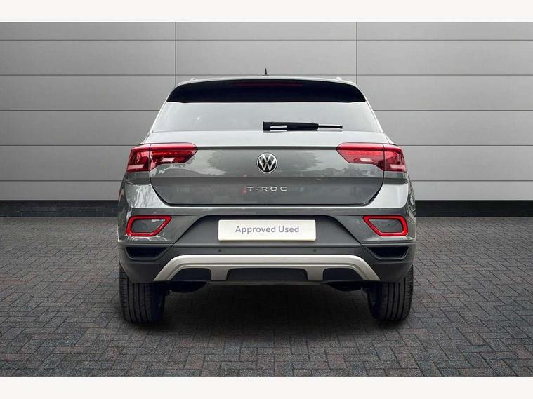 Advanced driver attention and drowsiness monitor, Dynamic road sign display, Emergency call service, Lane keeping system Lane Assist, Mobile phone interface, Modified key software - reduce switch off time for key status change to Long no motion, Online services, Park assist including front and rear parking sensors, Power assisted speed sensitive steering, Rear view camera, Service interval indicator, Tailgate/trunk lid release from outside, Think blue trainer driver tips and journey analysis, Warning sound and light for front seatbelts unfastened, Wireless app connect, Battery regeneration during braking, Front shock absorption, Rear shock absorption chassis with increased ride height, Start/stop function with battery regeneration, DAB Digital radio, Diversity antenna for FM reception, Music playback - MP3, WMA and AAC files, Premium USB cable in choice of either Apple or Android smartphone compatibility, SD card slot, Simultaneous pairing of 2 compatible mobile devices, Title and cover art display, We Connect and We Connect Plus functionality, Auto dimming interior rear view mirror, Automatic hazard lights activation under emergency braking, Automatic headlight control with LED separate daytime running lights with coming/leaving home function, Black roof rails, Body coloured bumpers and radiator grille with chrome trim and front fog lamps with chrome bezel, Body coloured exterior mirror housings and door handles, Electrically adjustable and heated door mirrors, Extended roof spoiler, Exterior mirrors aspherical on driver side, convex on front passenger side, External USB type C socket and charging sockets, Front windscreen wiper with intermittent wipe and 4 position delay, Heated rear window, LED 3rd brake light, LED rear combination lamps, LED rear number plate lights, Power windows with comfort operation and circuit breaker, Privacy glass for rear side windows and rear window, Rain sensor, Rear exhaust tailpipe, Rear fog light on one side and reversing lights on both sides, Rear side wing doors, Rear wash/wipe with intermittent wipe setting, Remote electrically foldable door mirrors, puddle lights and reverse activated passenger's door mirror, 12V power socket in centre console, 3 rear head restraints, 3 seat bench in 2nd row, 4 load lashing points in luggage compartment, Air care climatronic air conditoning system with active combination filter and 2-zone temperature control, Black stitching for floor mats, Ceramique roof liner, Cloth upholstery, Door and side trim panel in cloth, Drawer under drivers seat, Driver/front passenger seat height adjustment, Front centre armrest, Front comfort sports seats, Front cupholders x 2, Front reading light, Front seat back storage pockets, Glove compartment door with light, Instrument lighting, white adjustable panel illumination, Interior ambient lighting and surround lighting, Interior light delay, Isofix child seat preparation, Leather gearshift handle, Load-through provision with cup holder when folded down ('Unsplit rear seat bench, split folding backrest, with centre armrest), Luggage compartment lighting, Lumbar support for driver's and front passengers seat, Non-folding front passenger seat backrest, Single front passenger seat, Storage compartment in left and right luggage area, Storage compartment in rear doors, Storage compartments in driver and front passenger doors, Sunvisors with illuminated vanity mirrors, Variable boot floor, height adjustable and removable, Driver assistance pack without proactive passenger protection - T-Roc Life/Match, 3 point height adj front seatbelts + pretensioners, 3 point seatbelts in outer rear with ECE label, ABS, Child locks on rear doors, City emergency braking and pedestrian monitoring, Driver and front passenger airbag with front passenger airbag deactivation, Driver and front passenger safety-optimised head restraints, Drivers seatbelt reminder, Electronic parking brake, Electronic Stability Control (ESC) inc EDL (Electronic Differential Lock) and ASR (Traction Control), Front and rear passengers curtain airbag system including front side airbags, Front disc brakes, Hill start assist, Predictive pedestrian protection, Rear disc brakes, Two tone horn, Tyre pressure loss indicator, Volkswagen roadside assistance, Alarm with interior protection, Keyless locking and starting system keyless access with safelock, Pewter matt decorative inserts for intrument panel, centre console and door panels at the front, Trims for alloy wheels,