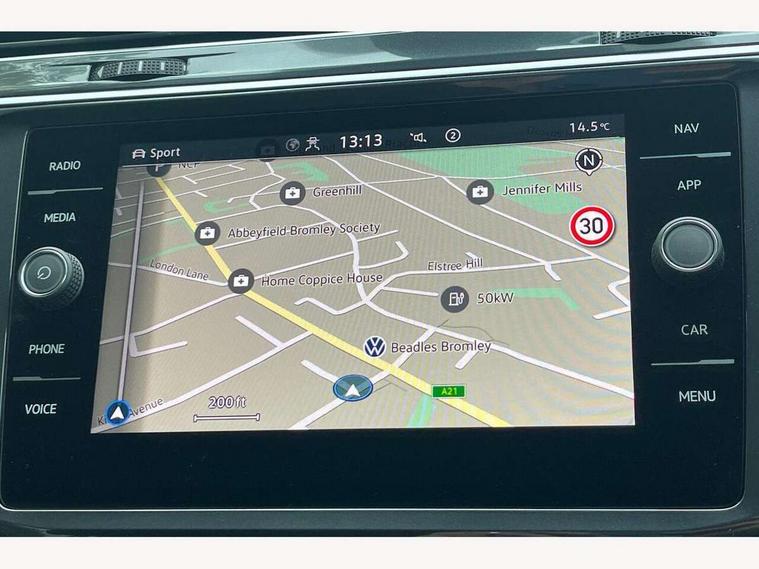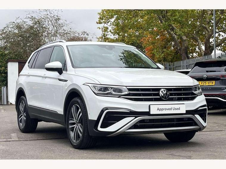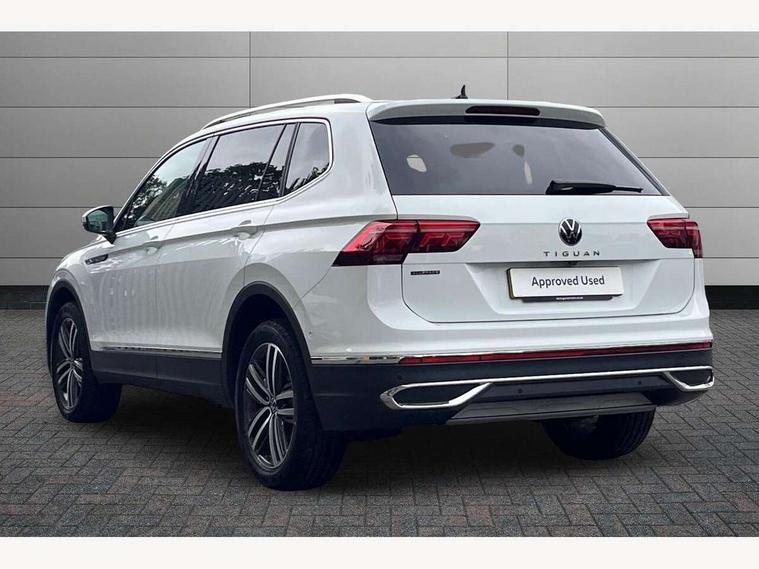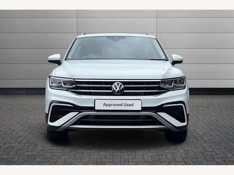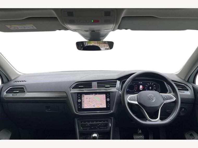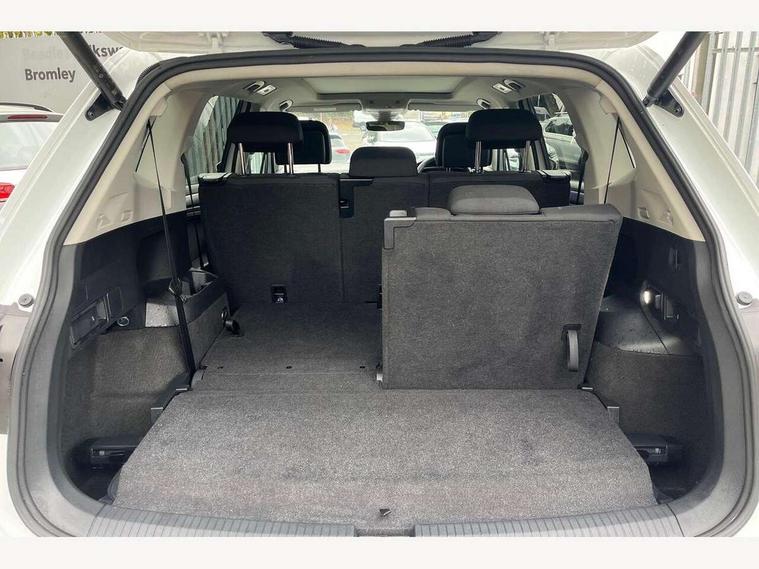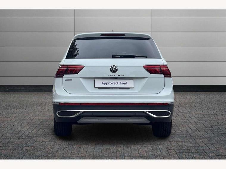 Adaptive cruise control, Advanced driver attention and drowsiness monitor, App-Connect, Digital cockpit pro, Driver profile selection, eCall emergency call service, Electric boot lid, Lane keeping system Lane Assist, Mobile phone interface comfort with inductive charging feature, Multifunction front facing camera, Power assisted speed sensitive steering, Speedo and rev counter, electronic odometer, trip, service interval display and exterior temperature gauge, Front wheel drive, Start-stop system with battery regeneration (recuperation - energy recovery during braking), 2 USB-C ports in the front, 1 USB-C charging socket on the center console in the rear, DAB Digital radio, Diversity antenna for FM reception, Auto dimming interior rear view mirror, Automatic headlight control system, Body coloured comfort bumpers, Chrome mouldings on side window, Coming/leaving home lighting function, Exterior badge deletion, Exterior mirror housings painted in silver, IQ light adv HBC, dyn light assist LED matrix headlamps, DH range, dark red LED rear combo light, poor weather, CL, LED headlamp with LED DRL and DCL - PXC, Privacy glass, Rain sensor, Rear fog light, Rear side wing doors, Rear wiper, Silver roof rails, Third brake light, Tilting and sliding panoramic sunroof, 12-volt outlet in centre console rear and luggage compartment, 12V socket in centre console, 3 head restraints in rear, 3 individual folding 2nd row seats, 3rd row 2 individual seats, Air Care Climatronic 3 zone automatic climate control with enhanced air filter and controls in the rear, Door and side trim panel, Drawers under front seats, Driver and front passenger seat height adjustment, Foldable front passenger seat backrest, Front + rear carpet mats, Front centre armrest, Front footwell illumination, Illuminated scuff plates, ISOFIX anchorage points for mounting 2 child seats on rear seats and i-Size child seats, Leather gearshift handle, Leather-wrapped multi-function steering wheel with shift paddles, LED interior light with switch off delay/dimmer and 2 front/rear LED reading lights, Sun visors with illuminated vanity mirrors, Ambience pack - Tiguan Allspace, Easy open and close pack with safelock - Tiguan Allspace, Park assist pack - Tiguan Allspace, 3 point seat belt for centre rear seat, 3 rear three point seatbelts, ABS+EBD+Brake assist, Driver and front passenger safety-optimised head restraints, Driver's and front passenger's airbag with front passenger's airbag deactivation switch, Electronic parking brake, Electronic Stability Control (ESC) inc EDL (Electronic Differential Lock) and ASR (Traction Control), Height adjustable front 3 point seatbelts + pretensioners, Manual rear child locks, Pedestrian monitoring, Rear disc brakes, Side airbag in front and rear with curtain airbag, Two tone horn, Warning buzzer for seatbelts if unfastened, Anti theft alarm system with interior monitoring, backup horn and towing protection, Anti-theft wheel bolts, Remote central locking with 2 remote folding keys, Chequered flag tinanium decorative inserts,