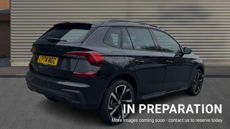 Advanced driver attention and drowsiness monitor, Bluetooth system, E-call, Front assist system, PAS, Rear parking sensors, Rear view camera, Service indicator, Speed limiter, Traffic sign recognition, Virtual cockpit with 10.25" display, Voice control system, Wireless smartlink, 4 USB C ports, 8 Speakers, 9.2" Skoda navigation display, DAB Digital radio, Auto dimming rear view mirror, Automatic headlight control with coming home and leaving home feature, Black door mirrors, Black radiator grille, Black rear diffuser, Black roof spoiler, Body colour bumpers, Body colour door handles, Boot lettering in black, Extended tailgate glass, Front and rear electric windows, Heated rear window, LED daytime running lights, LED high beam, LED low beam, LED third brake light, Light sensors, Monte carlo plaque, Panoramic sunroof with black roof rails, Privacy glass, Rear side wing doors, Rear wiper, Ticket holder inside windscreen, 12V socket in luggage compartment, 3 seat bench in 2nd row, Aluminium pedals, Ambient lighting in white/red, Art leather carbon decor inserts, Art leather carbon door inserts, Black roof lining, Cargo elements, Chrome inner door handles, Driver and passenger sun visors with vanity mirror, Dual zone climate control, Front and rear roof lights, Front centre armrest, Front head restraints, Glove compartment with illumination, Height adjustable driver seat, Height adjustable front passenger seat, Ice scraper, Inner circulation control with pollen filter, ISOFIX on front passenger seat, Isofix preparation for back seats, Leather gearknob and handbrake lever, Manual lumbar support for front seats, Monte Carlo cloth upholstery, Net package and top tether hooks in boot space, Net under rear shelf, Pocket on the back of both front seats include mobile phone pockets, Rake/reach adjustable steering wheel, Reading lights, Rear centre armrests, Red hotstamping, Single front passenger seat, Sports seats, Textile floor mats, Third rear headrest, Top tether for front passenger seat, Umbrella in driver's door, Light and view plus package - Kamiq, 3x3 point rear seatbelts, Airbags - driver and front passenger, Disc brakes, ESP, Extended and predictive pedestrian/cyclist protection, Front passenger airbag deactivation switch, Front side airbags with curtain airbags, Hill hold control, Manual leather parking brake, Manual rear child locks, One tone horn, Seatbelt reminder for driver an co-driver, Traction control, Tyre pressure monitor, Anti-theft alarm system with interior monitoring, backup horn, towing protection and remote central locking with SAFE system, Anti-theft wheel bolts, Electronic engine immobilizer, 18" Ursa black diamond cut alloy wheels,