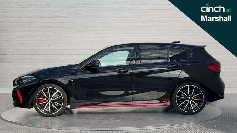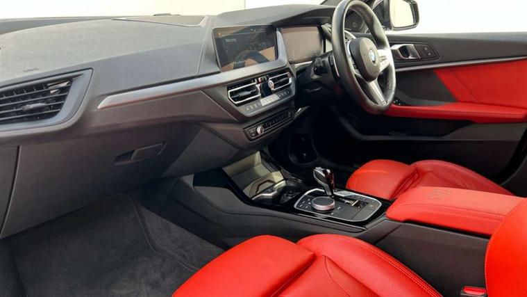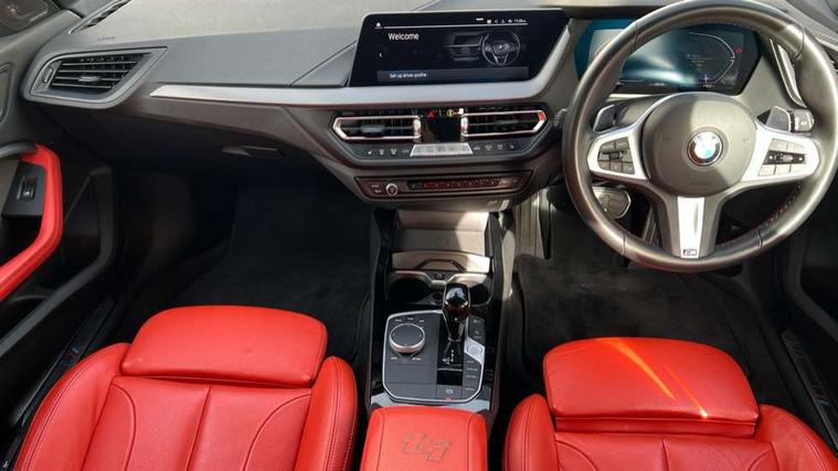 Active guard plus, Attentiveness assist, BMW ConnectedDrive online services, BMW Teleservices, Check Control warning system for monitoring of lights and door/luggage compartment open warning, Cruise control with speed limiter, Eco pro mode, Electric power steering with Servotronic steering optimised at all speed ranges, Front axle single joint with specific axle kinematics to minimise drive influences on steering + provide increased rigidity agile driving behaviour, Integrated owners handbook, Lane departure warning system, Oil sensor for level and grade, On board computer, Optimum shift indicator, Personal Profile, Pull away assistant, Rigidly mounted rear subframe - Multi link construction with separate spring / damper configuration and excellent driving characteristics, Speed limit Info including no-overtaking indicator, Aluminium lightweight construction, Anti roll bar front and rear, Balancer shaft, Double VANOS twin scroll turbocharging system, Drive Performance Control, Eight speed sport automatic transmission with gearshift paddle switches, Electronic differential lock, High precision injection, Larger fuel tank capacity (50 litres), M sport suspension with M128i xDrive specific settings, Petrol Particulate Filter, Twin tube gas filled shock absorbers with degressive characteristic curve, VALVETRONIC engine management, DAB Digital radio, Auto dimming rear view mirror, Automatic headlight beam throw control, Automatic windscreen wipers and automatic headlight, Black chrome tailpipe finishers, BMW individual high gloss shadow line with extended content, Body colour door handles, Body colour mirror caps, Body colour roof trims, Chrome 'M' logo side designation, Chrome kidney grille frame with Satin Aluminium struts, Direction indicator side lights in exterior mirrors, Electrically adjustable exterior mirror with mirror adjustment switch on drivers armrest and aspheric on driver side, convex on passenger side, Fading support, Folding side mirrors with auto dimming/folding wing mirrors with auto dimming, Follow me home headlights, Front and rear bumper system with replaceable deformation elements, Front and rear electric windows with open and close fingertip control, anti trap facility and comfort closing, Front door sill finishers in black plastic with M designation in metallic look, Green tinted heat protection glazing, High gloss shadowline window frame, Recess cover mirror frames and B/C pillar embelisher trim, High level third brake light, Integrated front windscreen with washer jets, Kidney frame and struts in high gloss black extended, LED daytime running lights, LED eyebrow turn indicators, Lightweight engineering, Matt black air guide grilles, Matt black wheel arch trim, Model designation on electric bootlid, Nearside reverse light in rear light cluster, Preparation for high beam assistant, Rear fog lights, Rear side wing doors, Rear window wiper, Shark fin antenna, Trailer stabilisation logic, Visible VIN plate, Welcome lighting, 12V power socket in front centre console with blanking plug, 3 rear seat head restraints, 3 seat bench in 2nd row, Anthracite headlining, Black boot net with lashing eyes, Cargo function on 2nd seat row, Child seat ISOFIX attachment for two outer rear seats and front passenger seat with anchorage points, Conditioned based service, Driver and front passenger backrest net on rear, Driver and front passenger seat heating, Driver side folding compartment in instrument panel, Folding rear clothes hook, Four grab handles integrated in roof lining, Front and rear door pockets with bottle holders, Front and rear side armrest integrated into door trim, Front armrest, Front sports seats, Glove compartment, Height adjustable front head restraints, Luggage compartment for bag hooks on left and right, foldable luggage compartment liner and four lashing eyelets, Manual adjust steering wheel, Multi-function controls for steering wheel, Single front passenger seat, Storage compartment in centre console, Storage compartment in luggage compartment, Stowage of the parcel shelf in luggage compartment trim, Sun visors with vanity mirrors and insert tab, Three spoke M sport design multi function leather steering wheel in unique red stitching, Two front centre console cupholders, Two zone automatic air conditioning, Type C two USB ports in rear centre console, Additional interior lighting pack - 1 Series, BMW live cockpit professional pack- 1 Series, Connected pack professional - 1 Series, Interior lights pack - 1 Series, M Sport exterior styling aerodynamics pack - 1 Series, 2 tone horn, 3 point seatbelts on all seats, front pyrotechnic belt tensioners, stopper and belt force limiters, rear coded belt buckles, Airbags - Front driver/passenger, front and rear curtain head protection, front side, manual deactivation of front passenger airbag, Anti lock braking system (ABS) with brake assist, BMW emergency call, Brake drying, Braking readiness, Child proof locking system in rear door, City braking function, Comfort modes, Cornering brake control, Crash sensor activating of airbags, Unlocking doors, hazard warning lights, interior light, safety battery terminal, Driver and front passenger seat belt security check, Dynamic stability control + (DSC+), Dynamic Traction Control - DTC, Electrically operated hand brake including automatic hold function, Front and rear disc brakes, M Sport brakes with red calipers, M Sport seatbelts, Seatbelt warning, Side impact protection, Tyre pressure monitoring system, Warning triangle and first aid kit, Central locking switch for all doors, fuel filler cap and luggage compartment, Deadlocking function system to all doors, Drive away locking system on all doors and luggage compartment with de-activated in iDrive settings, Locking wheel bolts, Remote control with integrated key with High-gloss Black inlay and M designation and 1 button for open/ close lock, window, open luggage compartment, Start/stop button illuminated in centre console with k