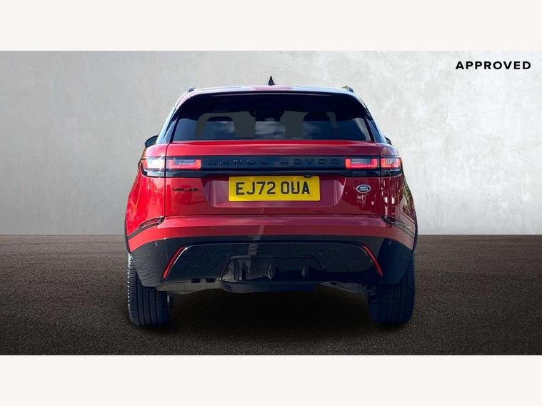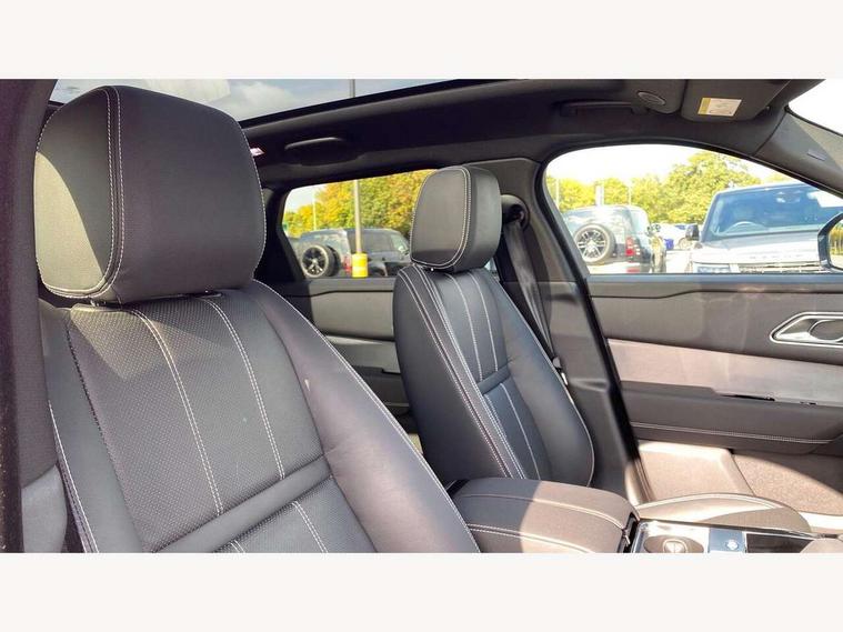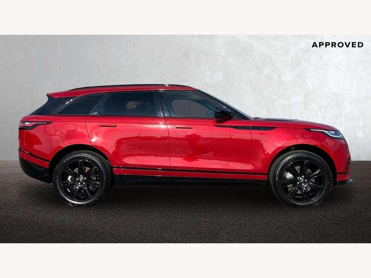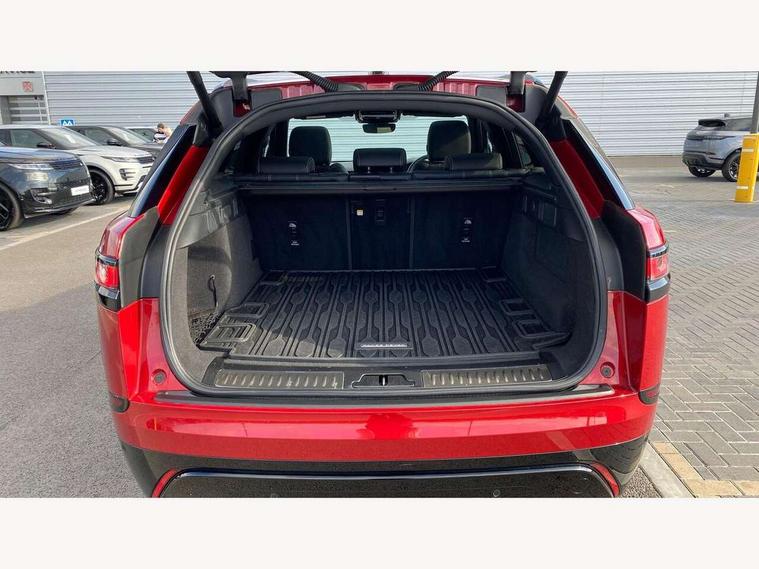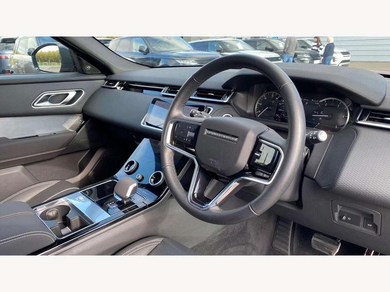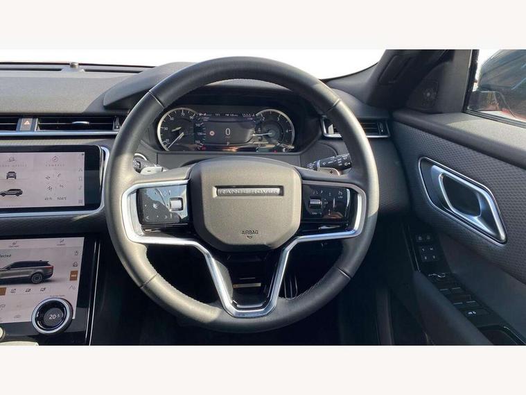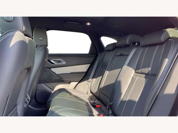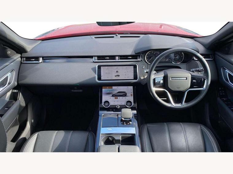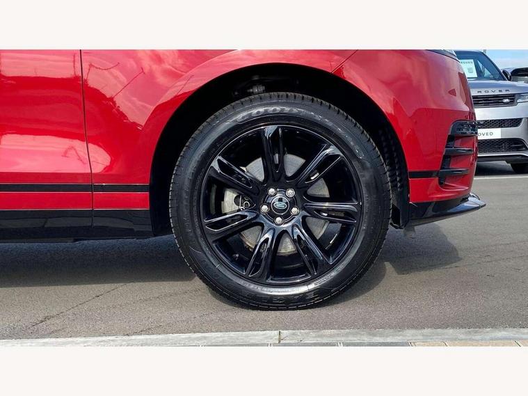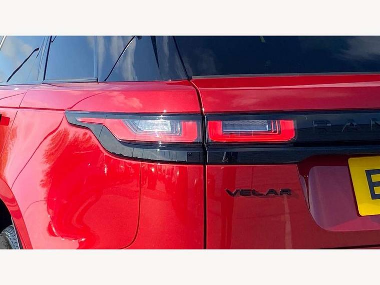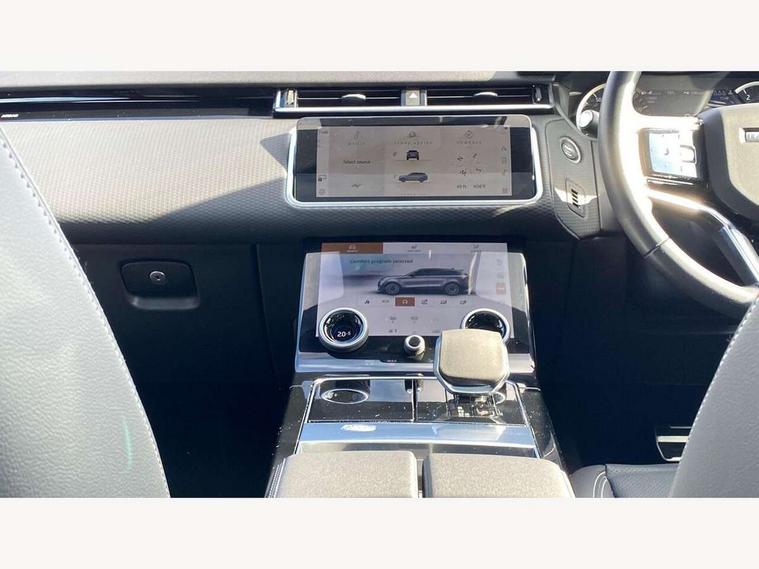 10" deployable touchscreen, Android Auto, Apple car play, Blind spot assist, Bluetooth connectivity, Brake pad wear indicator warning light, Driver condition monitor, eCall emergency call system, InControl remote, Land Rover InControl apps, Lane keep assist, Pivi pro with connected navigation, Push button start, Rear traffic monitor, Service indicator, Speed proportional electronic power assisted steering (EPAS), Traffic sign recognition with adaptive speed limiter, Trip computer, Voice control system, 8 speed automatic transmission, All terrain progress control, Open differential with torque vectoring by braking, Single speed transfer box, Digital Audio Broadcast radio-DAB, Steering wheel mounted controls, Acoustic laminated windscreen, Adaptive front lighting system, Auto dimming interior rear view mirror, Automatic headlamp levelling, Automatic headlights, Body coloured bumpers, Boot protection plate, Electric heated/power fold door mirrors with approach lights and auto dimming driver side, Electric windows with one touch open/close and anti trap, Flush deployable exterior door handles, Follow me home headlights, Heated rear window with timer, Heated washer jets, Heated windscreen, LED 3rd brake light, Metal load space scuff plates, No badge - Removes engine badge, Rain sensor windscreen wipers, Rear animated directional indicators, Rear fog lights, Rear side wing doors, Rear wash/wipe, Tailgate/boot lid spoiler, Trailer stability assist, Velar and R-dynamic badge, 3 seat bench in 2nd row, Ambient lighting, Bright metal pedals, Driver/passenger sunvisors with illuminated vanity mirrors, Isofix system on outer rear seats, Loadspace cover, Overhead lighting console, Overhead stowage for sunglasses, Passive front headrests, Rear air vents, Rear centre headrest, Satin chrome gearshift paddles, Single front passenger seat, Standard interior, Twin front cupholders, Twin sliding front centre armrest, Online pack with data plan - Velar, 355mm front brakes and 325mm rear brakes, 3x3 point rear seatbelts, Anti-lock braking system (ABS), Cornering brake control, Curtain airbags, Customer configurable autolock, Door side intrusion beams, Driver airbag, DSC - Dynamic Stability Control, Electronic brake force distribution, Electronic parking brake, Electronic traction control, Emergency brake assist, Emergency braking, Front and rear seatbelt reminder, Hill descent control, Hill launch assist, Low traction launch, Passenger airbag, Power operated child locks, Rear airbags, Roll stability control, Side airbags, Tyre pressure monitoring system, Unpainted brake calipers, Global lock and unlock switch on driver door, Immobiliser, Intrusion sensor, Keyless entry, Lock only switch on front passenger door, Locking wheel nuts, Perimetric alarm, Remote central locking,