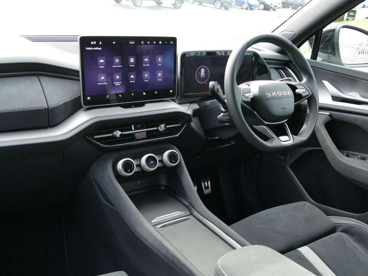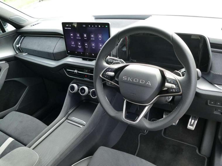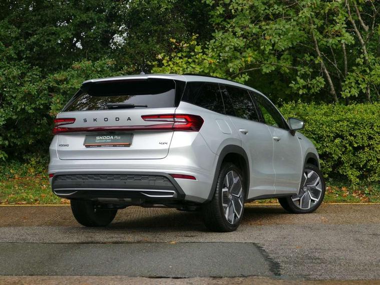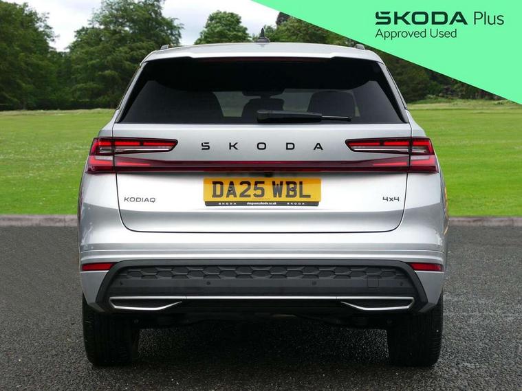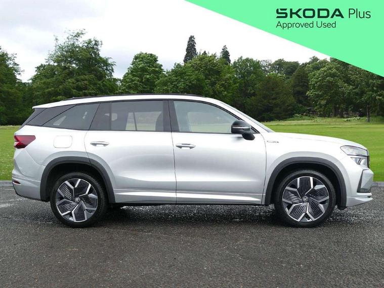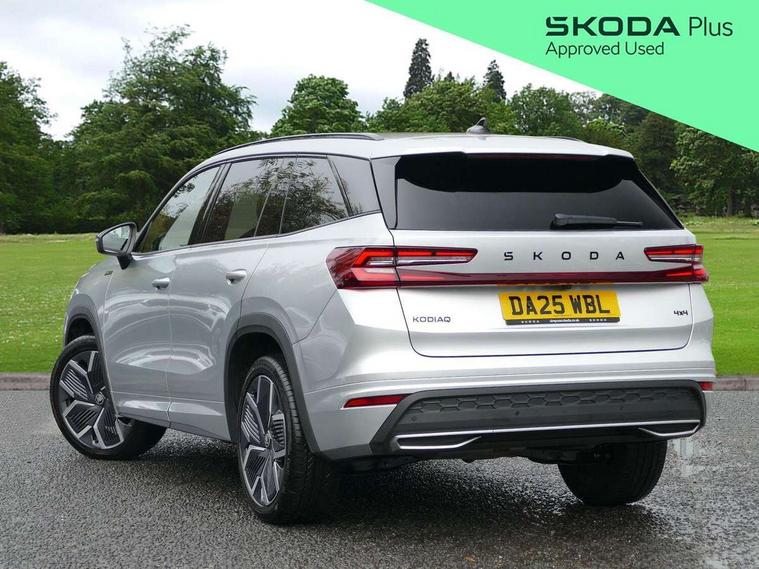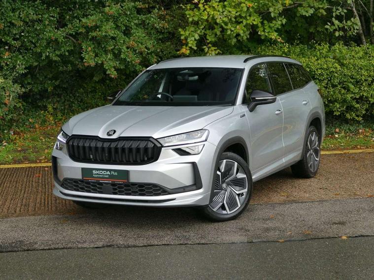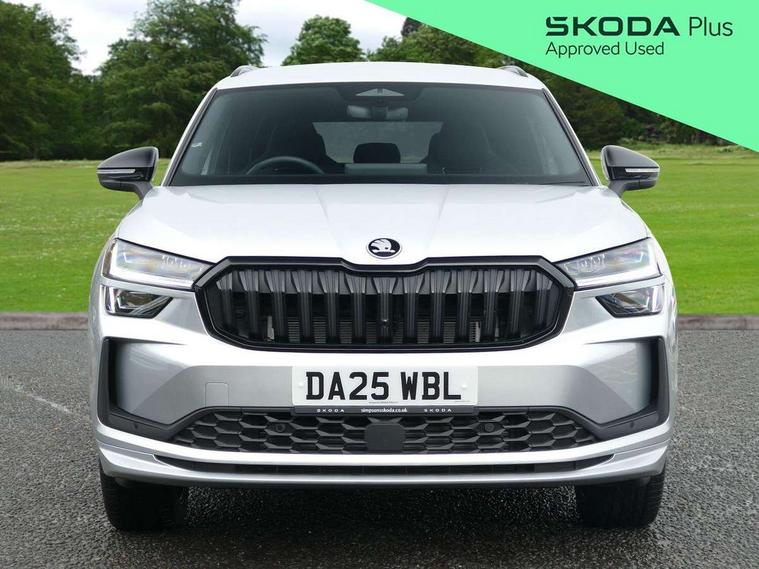 13" satellite navigation touchscreen display, Blind spot detection with door exit warning, Bluetooth system, ChatGPT functionality, Driver alert - Fatigue and drowsiness monitor, Dry display cleaner, Emergency call, Front and rear parking sensors, Front cross traffic assist, Lane assist, Off road modes, PAS, Rear traffic assist, Tailgate unlocking from outside, Traffic sign recognition, USB C Port x 2 in front centre console, Virtual Cockpit - 10.25" digital display, Voice control system, Wireless charging for two smartphones (15W) with cooling function, Wireless SmartLink for Apple CarPlay and Android Auto, Stop/start function, 2x USB-C in the rear, DAB Digital radio, Aero front windscreen wipers with intermittent function, Auto dimming rear view mirror, AWL (all weather lighting) and all weather light with cornering function, Black diffuser and decorative tailpipe with a unique dark chrome finish, Black roof rails, Black sports styling including front grille and window surrounds, Black wheel arch surrounds, Body colour door handles, Cornering light and poor weather light, Electric folding /adjustable/separted heated/folding door mirrors, auto dimming with boarding sports and memory function, Electric front and rear windows, Exterior black decorative trims, Front and rear sports bumpers including lower rear chrome strip, Gloss black door mirrors, Gloss black window frame and D pillar, Heat insulating glass in windshield, Heated rear window, Ice scraper in fuel tank cap, LED daytime running lights, LED third brake light in rear spoiler, Light assistant with automatic headlight control and coming home feature, Logo projection in door mirrors, Privacy glass, Rear roof spoiler, Rear side wing doors, Rear window wiper, Red decorative strip between rear LED lights, Safety reflectors on front and rear doors, Sportline badge on front fenders, Tailgate lettering in Black, Unique dark chrome design logo on alloy wheels, Window control switches with black trim, Windscreen wipers with rain sensor, Without engine designation, 1.5l bottle holder points in all door, 1x centre rear reading light, 2 seat bench in 3rd row, 3 configurable smart dials with 32mm coloured display, 3 seat bench in 2nd row, 4 foldable roof handles with rear coat hooks, Aluminium pedals, Ambient interior lighting - Dashboard, front-door stowage compartments, front and rear door panels and footwell lighting, Automatic gear selector on steering column, Chrome interior door handles, Driver/front passenger reading lights, Fabric headlining, Fixed bench 40:60:40 split folding backrests, Front and rear floor mats, Front centre armrest with jumbo box storage compartment, cup holder and 12V socket, Front sport seats, Height adjustable front headrests, Interior black decorative trims, Isofix child seat fittings in outer middle row rear seats and front passenger with top tether, Manually adjustable steering column, Pollen filter, Rear centre armrest with cupholders, Rear seat boot backrest release, Single front passenger seat, Skoda lettering on steering wheel, Storage pocket including mobile phone pockets on the backs of the front seats, Sunvisors with illuminated vanity mirrors, Three rear height adjustable headrests, Ticket holder on A Pillar, Tri zone climate control, Umbrella in door panel x1 made from sustainable materials, Upper and lower glovebox with card holder and coin compartment, USB C port by rear view mirror for charging only (15W), Acoustic package - Kodiaq, Performance package - Kodiaq, Sportline design selection pack - Kodiaq, Auto door release and activation of warning lights in the event of an accident, Driver and front passenger airbag with knee airbag and front passenger airbag deactivation, Electric child locks, Electronic parking brake, ESC (incl. ABS+EMD+MSR+ASR+EDL+HBA+DSR+RBS+ESBS+MCB+TSA+XDS), Front assist with braking reaction to vehicles, pedestrians and cyclists, Front disc brakes, Fuel cut off safety device, Height adjustable front 3 point seatbelts + pretensioners, Hill hold assist, Junction assist with automatic emergency braking, Rear disc brakes, Safety vest holder in door, Seat belt reminder for all seats, Three point rear seat belts, Two tone horn, Tyre pressure monitor, Alarm with interior monitoring and tilt sensor with safe function, Anti-theft wheel bolts, Immobiliser, Remote central locking with 2 keys, 20" Rila anthacite polished alloy wheel with black matte aero covers,