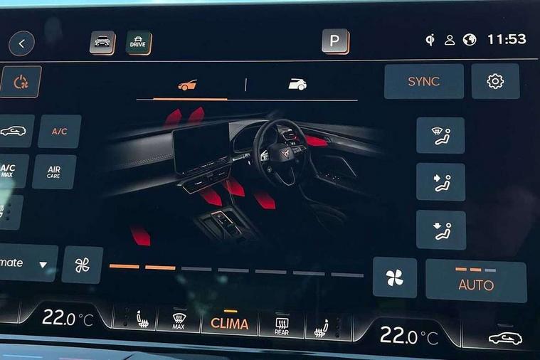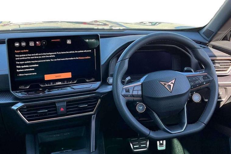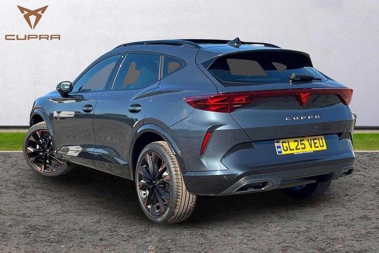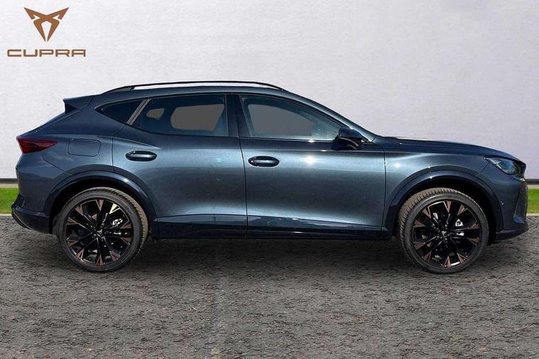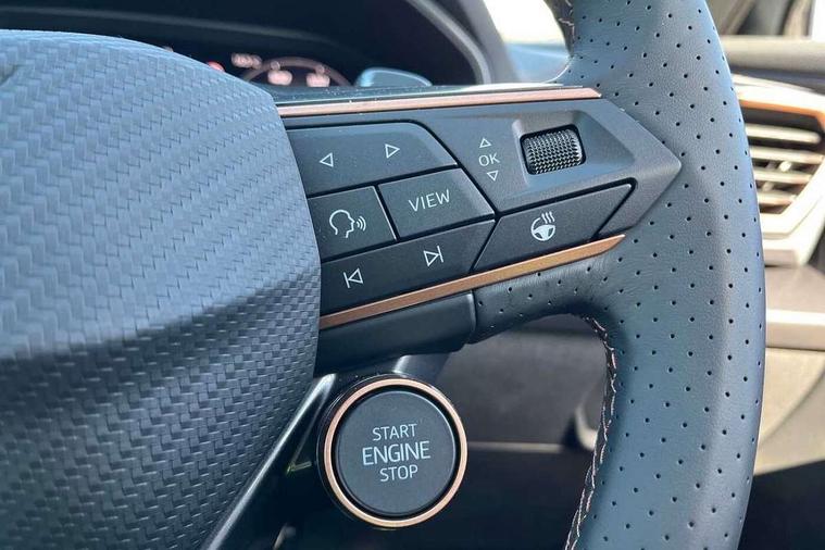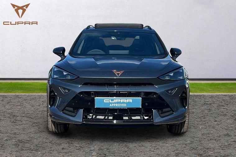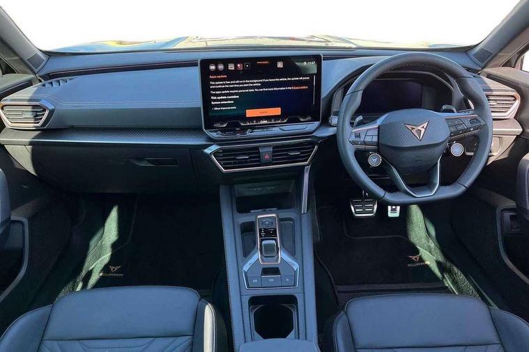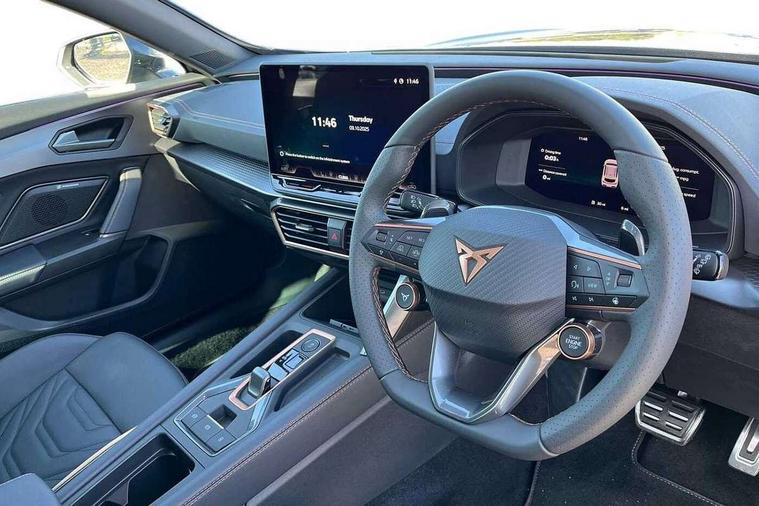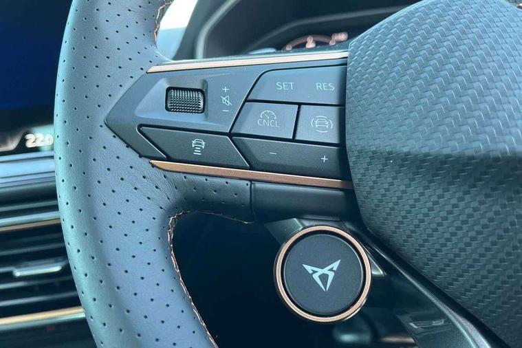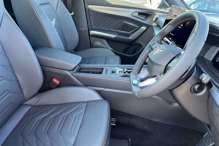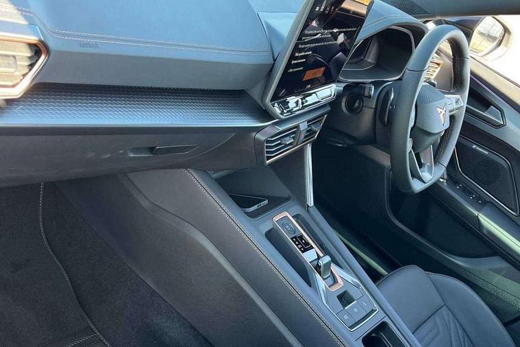 10.25" digital cockpit and configurable dashboard, Adaptive cruise control with follow-to-stop and speed limiter, Advanced driver alert system, Advanced lane assist with semi-automatic vehicle control in a medical emergency and traffic jam assist, Driving profile selection, Dynamic road sign display, Emergency steering support with turn assist, Forward collision warning with automatic braking, Full link phone integration, Intelligent park assist, Progressive steering, RPM, trip computer, outside temp gauge, instrument light brightness, low fuel warning light, lights on reminder, gearshift indicator, Service interval indicator, Side and exit assist, Start/stop system with regenerative braking, Top view camera, Virtual pedal and electric tailgate, Voice control system, Wired Android Auto, Wireless apple carplay, Wireless phone charger, CUPRA sport suspension, Electronic locking differential and dynamic traction support, 2 front and 2 rear USB type C sockets, Media system with navigation, 12.9" touchscreen display, voice control, DAB, steering wheel mounted controls, Auto dimming rear view mirror, Body colour door handles, Body coloured bumpers, Dark grey wing mirror, Daytime running light with automatic headlight control and coming home feature, Door panel ambient lighting, Dynamic headlight range control, Electric front/rear windows, Electrically adjustable heated and folding door mirrors with memory function, Gloss black roof rails and window surrounds, High beam assist, LED 3rd brake light, LED front fog lamps with cornering function, LED Headlights, LED Taillights with dynamic indicator, Rain sensing wipers, Rear diffuser with black simulated exhaust pipes, Rear fog lights, Rear side wing doors, Rear wash/wipe, Tinted rear windows, Welcome lights (within exterior mirror housing), 12V socket, 2 front and 2 rear reading lights, 3 seat bench in 2nd row, 60/40 split rear bench seat with armrest and mechanical seat release, Black headlining, Black interior roof lining, Cupra sports pedals, Dust/pollen filter, Electrically adjustable front seats with lumbar support and memory function, Front and rear head restraints, Front centre armrest, Heated front seats, Heated supersports multifunction leather steering wheel with satellite buttons and gear shift paddles, Height/reach adjust steering wheel, Illuminated aluminium doorsteps, Illuminated interior front door sills, Illuminated sunvisor with mirror, Isofix, Leather dashboard, door insert and side trim panel, LED smart wraparound lighting, PVC/Leather upholstery, Satellite steering wheel, Single front passenger seat, Storage pockets on rear of front seats, Three zone climate control with control panel in rear, Variable luggage/load compartment floor, 3 point seatbelts on all rear seats, ABS, Brake control system - ESC and brake booster, Child proof door locks, Driver and front passenger airbags with front passenger airbag de-activation, Electronic parking brake, Front and rear disc brakes, Front side curtain airbags, Hill hold control, Pre-crash front and rear seat belt tensioner, window closure and hazard lights, Public e-call, Seat belt reminder for front and rear seats, Tyre pressure monitoring system, Anti theft alarm system, KESSY Advanced - Keyless start, keyless entry with SAFELOCK, Locking wheel bolts, Copper and aluminium interior detailing,