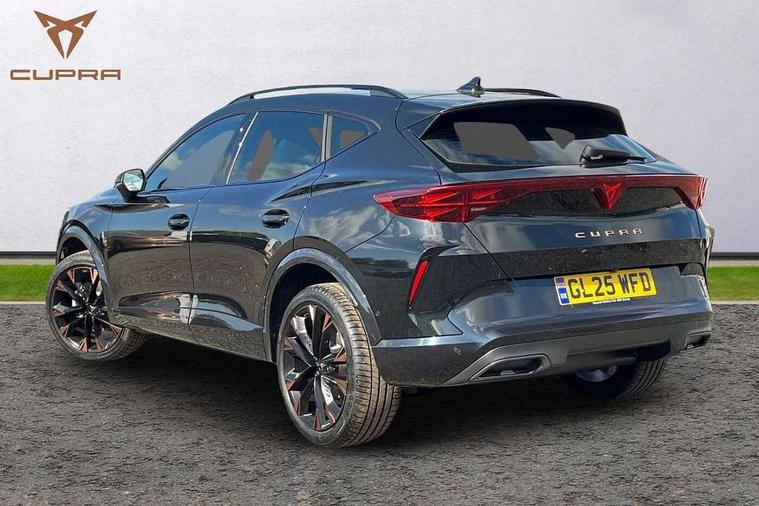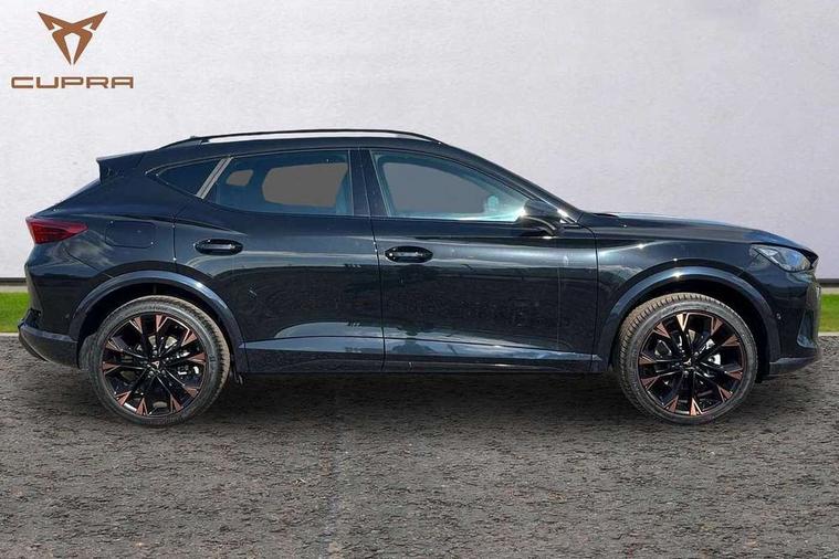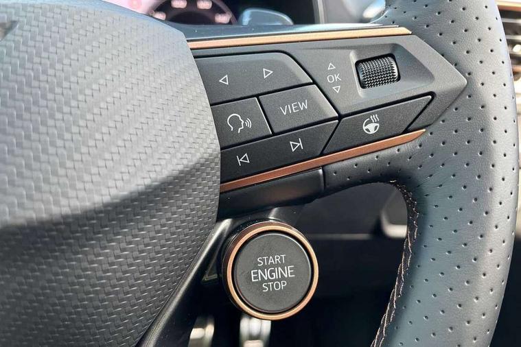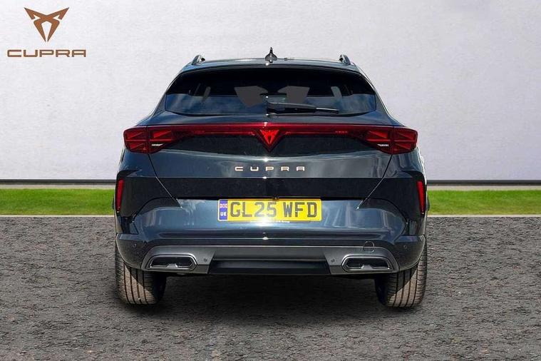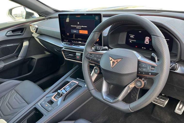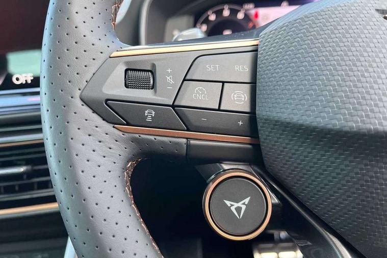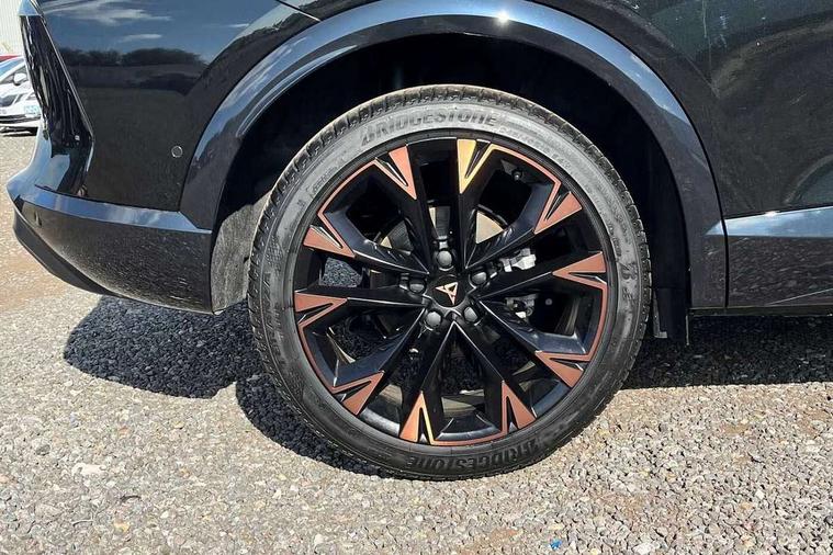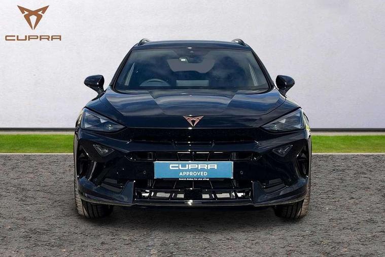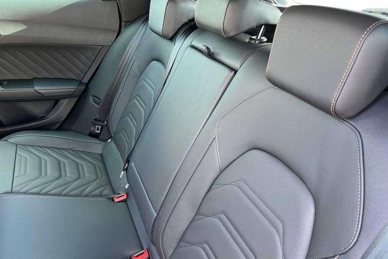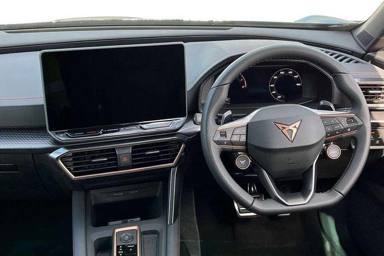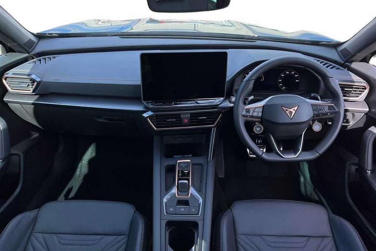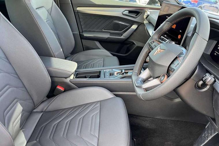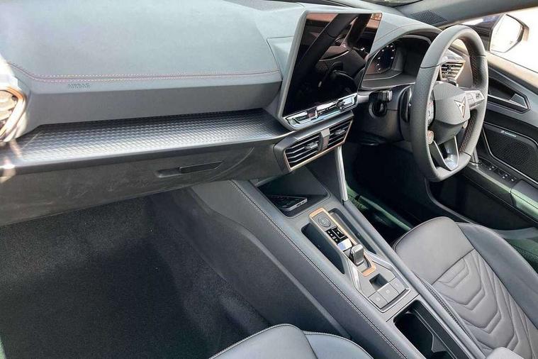 10.25" digital cockpit and configurable dashboard, Adaptive cruise control with follow-to-stop and speed limiter, Advanced driver alert system, Advanced lane assist with semi-automatic vehicle control in a medical emergency and traffic jam assist, Driving profile selection, Dynamic road sign display, Emergency steering support with turn assist, Forward collision warning with automatic braking, Full link phone integration, Intelligent park assist, Progressive steering, RPM, trip computer, outside temp gauge, instrument light brightness, low fuel warning light, lights on reminder, gearshift indicator, Service interval indicator, Side and exit assist, Start/stop system with regenerative braking, Top view camera, Virtual pedal and electric tailgate, Voice control system, Wired Android Auto, Wireless apple carplay, Wireless phone charger, CUPRA sport suspension, Electronic locking differential and dynamic traction support, 2 front and 2 rear USB type C sockets, Media system with navigation, 12.9" touchscreen display, voice control, DAB, steering wheel mounted controls, Auto dimming rear view mirror, Body colour door handles, Body coloured bumpers, Dark grey wing mirror, Daytime running light with automatic headlight control and coming home feature, Door panel ambient lighting, Dynamic headlight range control, Electric front/rear windows, Electrically adjustable heated and folding door mirrors with memory function, Gloss black roof rails and window surrounds, High beam assist, LED 3rd brake light, LED front fog lamps with cornering function, LED Headlights, LED Taillights with dynamic indicator, Rain sensing wipers, Rear diffuser with black simulated exhaust pipes, Rear fog lights, Rear side wing doors, Rear wash/wipe, Tinted rear windows, Welcome lights (within exterior mirror housing), 12V socket, 2 front and 2 rear reading lights, 3 seat bench in 2nd row, 60/40 split rear bench seat with armrest and mechanical seat release, Black headlining, Black interior roof lining, Cupra sports pedals, Dust/pollen filter, Electrically adjustable front seats with lumbar support and memory function, Front and rear head restraints, Front centre armrest, Heated front seats, Heated supersports multifunction leather steering wheel with satellite buttons and gear shift paddles, Height/reach adjust steering wheel, Illuminated aluminium doorsteps, Illuminated interior front door sills, Illuminated sunvisor with mirror, Isofix, Leather dashboard, door insert and side trim panel, LED smart wraparound lighting, PVC/Leather upholstery, Satellite steering wheel, Single front passenger seat, Storage pockets on rear of front seats, Three zone climate control with control panel in rear, Variable luggage/load compartment floor, 3 point seatbelts on all rear seats, ABS, Brake control system - ESC and brake booster, Child proof door locks, Driver and front passenger airbags with front passenger airbag de-activation, Electronic parking brake, Front and rear disc brakes, Front side curtain airbags, Hill hold control, Pre-crash front and rear seat belt tensioner, window closure and hazard lights, Public e-call, Seat belt reminder for front and rear seats, Tyre pressure monitoring system, Anti theft alarm system, KESSY Advanced - Keyless start, keyless entry with SAFELOCK, Locking wheel bolts, Copper and aluminium interior detailing,