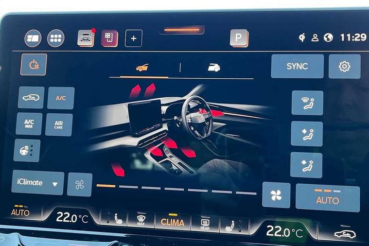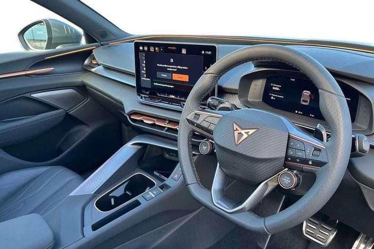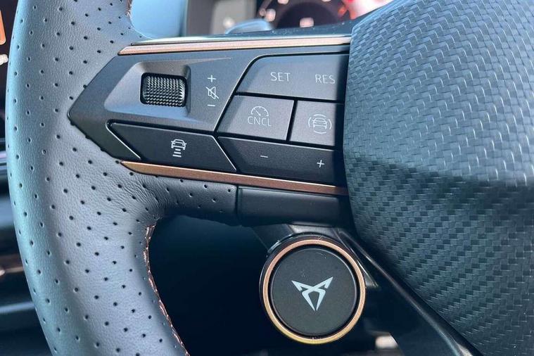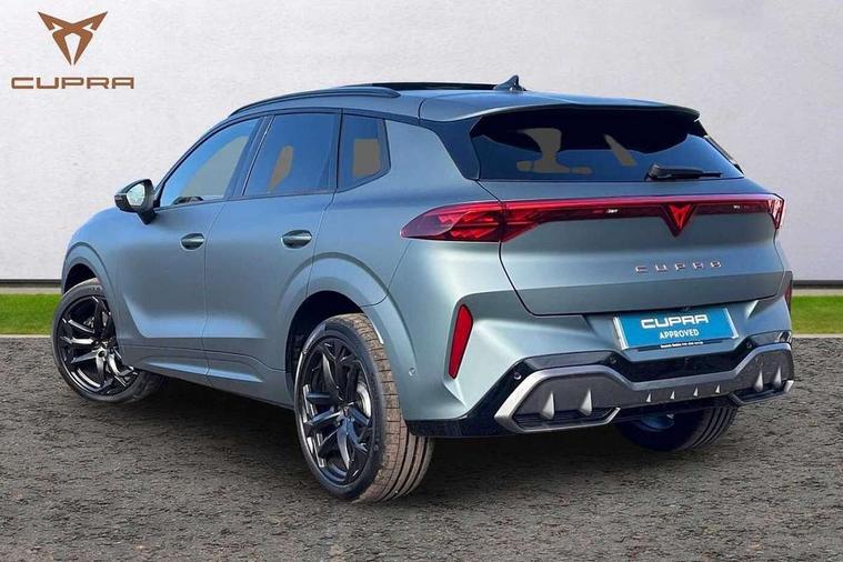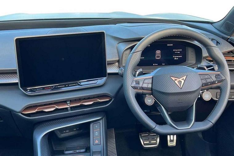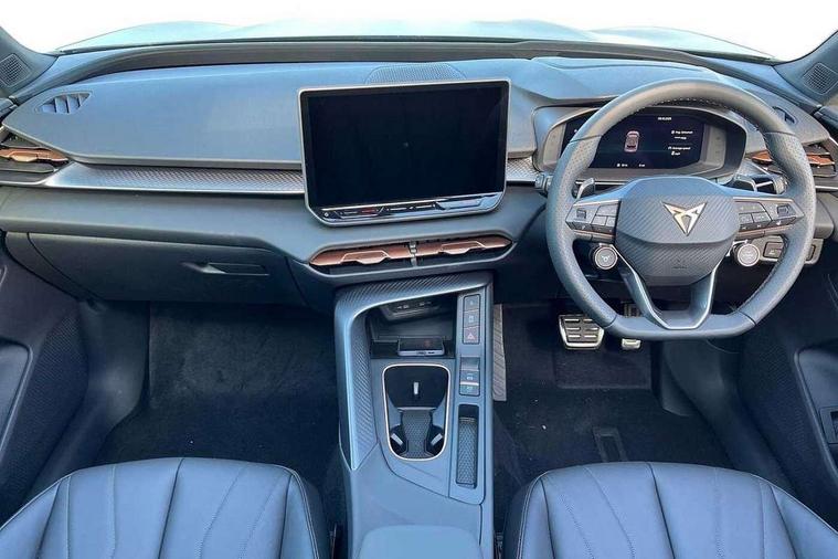 10.25" digital cockpit and configurable dashboard, Adaptive cruise control with follow-to-stop and speed limiter, Advanced driver alert system, Advanced lane assist with semi-automatic vehicle control in a medical emergency and traffic jam assist, Driving profile selection (DCC- Comfort, performance, CUPRA, Individual, Dynamic road sign display, E-call, Electric tailgate with virtual pedal, Emergency steering support with turn assist, Four x USB Type C ports (2 in front and 2 in rear), Front and rear parking sensors, Front assist (Forward collision warning with automatic braking) with multifunction camera and front cross traffic assist, Head up Display, Intelligent park assist, Media system with Nav - 12.9" touch display, voice control, full link phone (wired/wireless), DAB and Steering wheel mounted controls, Rear traffic assist, Side and exit assist, Speed sensitive power steering, Start/stop system with regenerative braking, Top view camera (front camera, rear camera, 2 side cameras), Wireless phone charger, Adaptive chassis control with a 2-valve shock absorber, Immersive by Sennheiser TM - 10 speakers, 1 central speaker, 1 subwoofer, Americas Cup Edition - lasered logo in B pillar, Auto dimming rear view mirror, Black roof rails, CUPRA 3D rear lights with ceremony & swiping indicator and illuminated logo, Dark tinted rear windows, Daytime running lights with automatic headlight control and Coming and Leaving home function, Door mirrors with memory function and lowing function on passenger mirror, Electric front/rear windows, Electrically adjustable, heated and folding door mirrors, Front fog lamps with cornering function, Heat reflecting windscreen, High beam assist, Matte paint, Panoramic sunroof, Rain sensing wipers, Rear fog light on one side, back up light on both sides, Rear side wing doors, Rear wash/wipe, Third brake light, Welcome lights (within exterior mirror housing), 3 seat bench in 2nd row, Black roof lining, Cupra sports pedals, Driver seat memory function, Electrically adjustable front seats including lumbar support, Front and rear head restraints, Front and rear reading lights X 4, Front centre armrest, Heated front seats, Heated leather wrapped multi function sports steering wheel with tiptronic, Illuminated interior front door sills, Isofix, Leather upholstery, Operating voltage 12V, Single front passenger seat, Smart wraparound interior lighting, Sunvisors with illuminated mirror, Three zone climate control with control panel in rear, Unsplit rear seat bench, split folding backrest, with centre armrest, Variable luggage/load compartment floor, Pure performance pack - Terramar, 3 point seatbelts in front with pretensioner and electric height adjustment, 3 point seatbelts on all rear seats, Brake control system - ESC and brake booster, Child proof door locks, Driver and front passenger airbags, Electronic parking brake, Front and rear disc brakes, Front interaction airbag, Front passenger airbag deactivation switch, Front side airbags with curtain airbags, Pre-crash front and rear seat belt tensioner, window closure and hazard lights, Tyre pressure monitoring system, Visual and acoustic seat belt reminder, electric contact in front and rear, Anti theft alarm, Keyless locking and starting system with keyless access, Locking wheel bolts, Black decorative trims, Chrome interior detailing, 20" Vortex exclusive sportblack matte alloy wheels, Breakdown kit, Performance tyres in polmer coating, Tool kit,