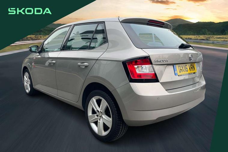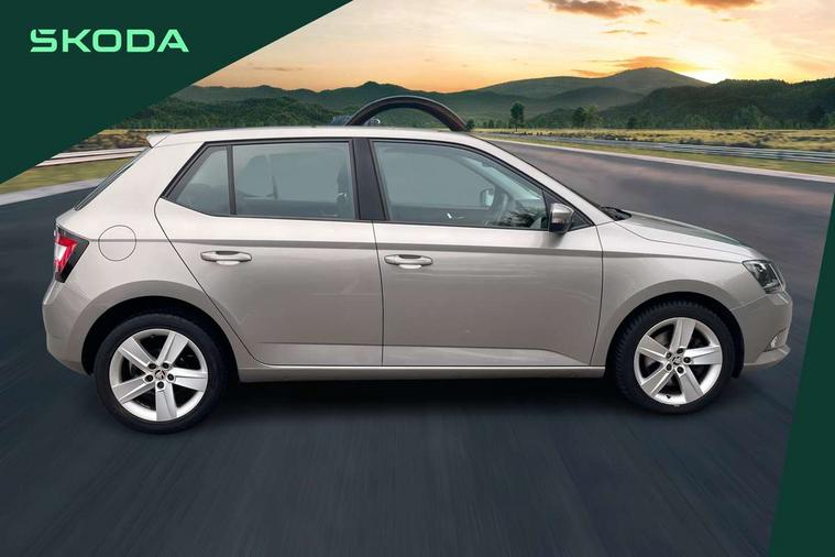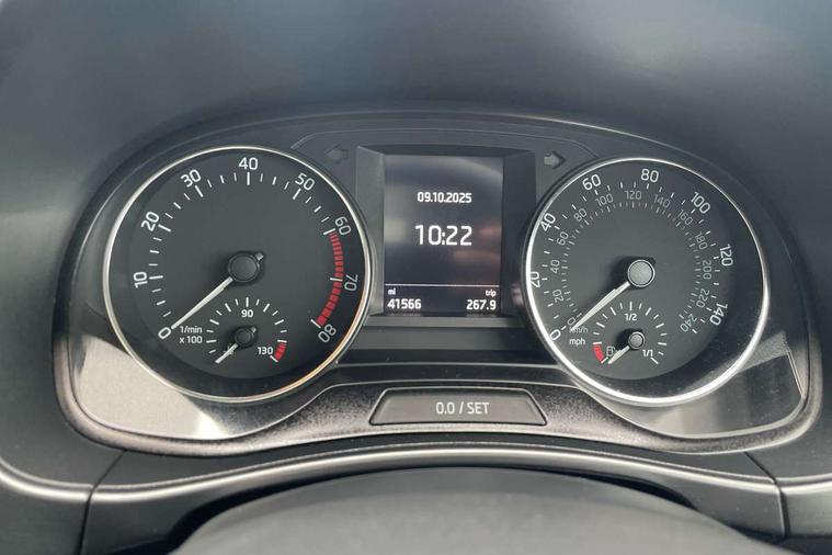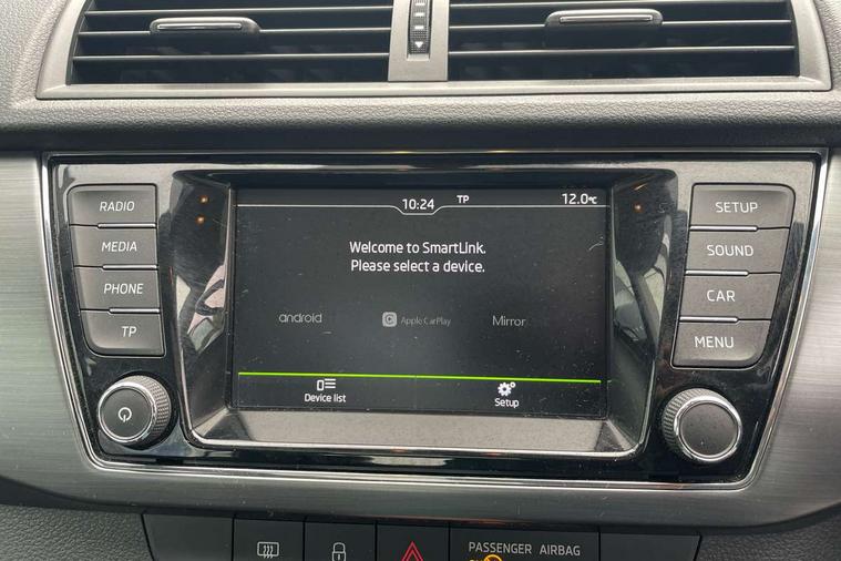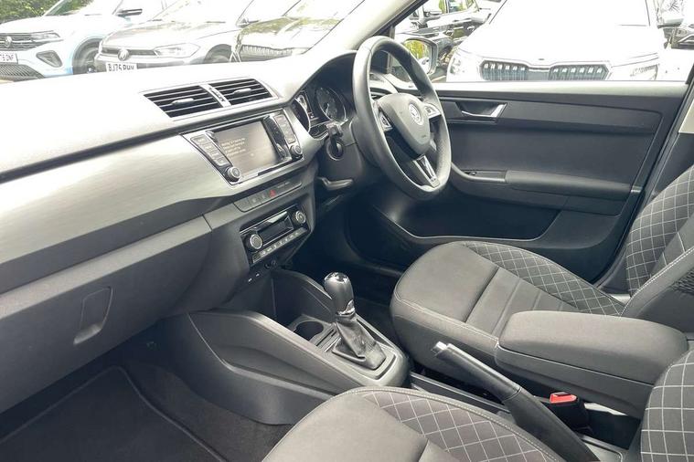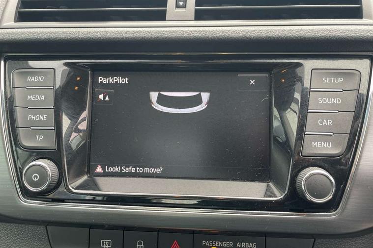 Bluetooth system, Cruise control + speed limiter, Exterior temperature gauge, Front assistant collision mitigation, Maxi dot trip computer, PAS, Service interval indicator, SmartLink, Auxiliary socket for external MP3 player, Bolero radio with telephone control, Mirror Link, USB and SD card, DAB Digital radio, Body colour bumpers, Body colour door handles, Chrome grille surround, Electric front windows, Electrically adjustable and heated door mirrors, Heated rear window, Height adjustable headlamps, Intermittent rear wash/wipe, LED daytime running lights, Tinted rear windows, Tinted windscreen, 1.5L bottle holder in front door panels, 2 height adjustable rear headrests, 60/40 split folding rear seat, Boot stowage box, Cargo area storage tray, Climate control air conditioning, Cloth upholstery, Driver + passenger vanity mirrors, Folding grab handles, Front centre armrest, Front reading lights, Front/rear floor mats, Height adjustable driver's seat, Height adjustable front headrests, Height adjustable passenger seat, Height/reach adjust steering wheel, Interior light with delay, Leather gearshift, Leather handbrake, Lower glovebox cover, Luggage load hooks, Parcel shelf, Pollen filter, Rear courtesy light, Rear storage trays, Storage compartment under front seats, Ticket holder, Two rear outer seat isofix location points, Arkamys surround sound pack - Fabia, Chrome Pack - Fabia, 3x3 point rear seatbelts, ABS, Curtain airbags, Driver and passenger airbags, Driver and passenger side airbags, EDS, ESC with ASR, Front seatbelt pretensioners, Hill hold control, Hydraulic Brake Assist (HBA), Motor Slip Regulation (MSR) - Engine Drag Torque Control, Passenger airbag deactivate switch, Seatbelt warning, Tyre pressure monitor, Alarm with interior monitoring, Immobiliser, Locking wheel bolts, Remote central locking,