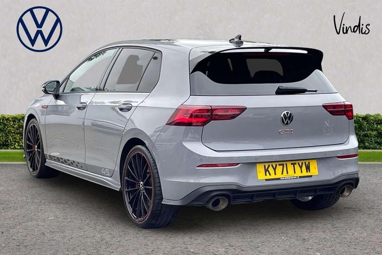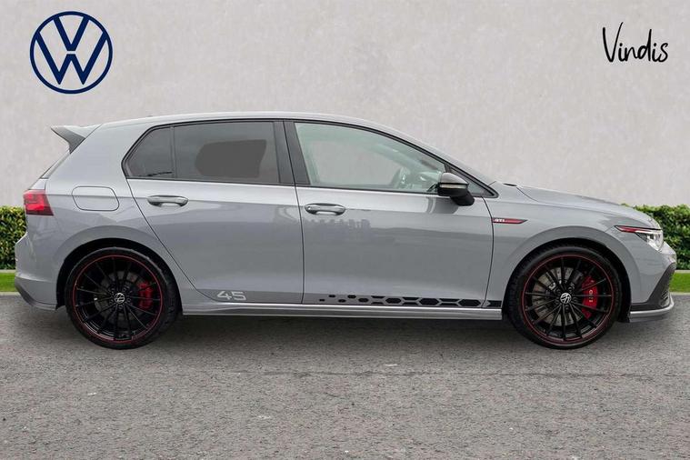 Adaptive cruise control (ACC) with speed limiter and front assist (reacting to vehicles pedestrians and cyclists), Car2X communication, Digital cockpit pro - 10.25" high resolution TFT dash display screen with customizable menus and information, Driver alert system, Driver profile selection, Dynamic road sign display, eCall - Emergency call service for SOS calls to emergency response, Lane assist, Lane change assistant, Mobile phone interface with wireless inductive charging function, Progressive steering, Speedo, rev counter, electronic odometer, trip, service interval display, exterior temperature and fuel gauge, Start/Stop function, Travel assist with emergency side assist with electrically foldable door mirrors, Warning buzzer and light for front seatbelts unfastened, Wireless app connect, Front differential lock, Petrol Particulate Filter, XDS electronic differential lock for improved traction and handling, Premium USB cable in choice of either Apple or Android smartphone compatibility, '45' lettering on the side sill panel and on the boot lid, Advanced high beam control dynamic light assist for LED matrix headlamps, Akrapovic titanium sport exhaust system, Ambient lighting, exterior illuminated styling elements at the sides, Auto dimming rear view mirror, Automatic headlamp activation with Coming home and Leaving home feature, Black painted roof, upper shell of the spoiler and door mirror covers, Body colour bumpers, Body colour door handles, Front and rear electric windows, GTI Clubsport styled bumpers, Heat insulating glass windscreen, Heated rear windscreen, High level 3rd brake light, Highway light, Illuminated front grille, IQ.Light - LED Matrix headlights, dynamic headlight control with advanced high beam control matrix dipped main beam + LED DRL + 22 LED lights, LED front fog lights with 5 honeycomb design, LED License plate illumination, LED rear combination lamp inlcuding dynamic turn signal, Performance rear spoiler, Rain sensor, Rear fog light on one side and reversing lights on both sides, Rear tinted glass 65% light absorbing from B pillar backwards, Rear windscreen washer and wiper with interval delay, Remote electrically heated, adjustable and foldable door mirrors, including door mirror puddle lights and reverse activated kerb-view adjustment on pa, Welcome light, 12V socket in front centre console, 12V socket in luggage compartment, 3 rear head restraints, 3 zone climate with controls in the rear, 45 decal and badge on steering wheel, Aluminium gear knob, Ambient lighting - Customisable 30 colour ambient lighting, Black roof lining, Brushed stainless steel pedals, Centre console, Chrome plated surround to electric mirror button, window switch and air vent surrounds, Door insert in Artvelours, Drivers and front passengers sun visors with vanity mirrors, Front + rear carpet mats, Front centre armrest with storage compartment, Front cupholders x 2, Front reading lights x 2 incorporating LED technology, Front seat lumbar support adjuster, Front sports seats, Glovebox, GTI lettering on the backrests of the front sport seats, Height adjustable front seats, Height and reach adjustable steering wheel, Isofix child seat preparation for 2 rear child seats and front passenger seat, Leather wrapped multifunction sports heated steering wheel with paddle shift, Luggage compartment lighting, Removable luggage compartment cover, Side trim panel and arm support in leatherette, Split folding backrest with centre armrest and unsplit rear seat bench, Woven fabric storage compartments in front and rear doors, 3 point height adj front seatbelts + pretensioners, 3 rear three point seatbelts, ABS, Driver and front passenger airbag with front passenger airbag deactivation, Drivers and front passengers safety optimised head restraints, Electronic parking brake with auto hold, ESC (Electronic Stability Control), Extended pedestrian protection measures, Front and rear passengers curtain airbag system including front side airbags, Front disc brakes, Rear disc brakes, Two tone horn, Tyre pressure monitoring system, Alarm with interior protection and deactivation via infotainment system, Electronic engine immobiliser, Keyless entry with start/stop button on centre console, Black metal chrome decorative inserts in dash and front door trim panels, Soul dashboard, 19" Scottsdale alloy wheels with anti theft wheel bolts, Tyre mobility kit Includes 12V compressor and tyre sealant,