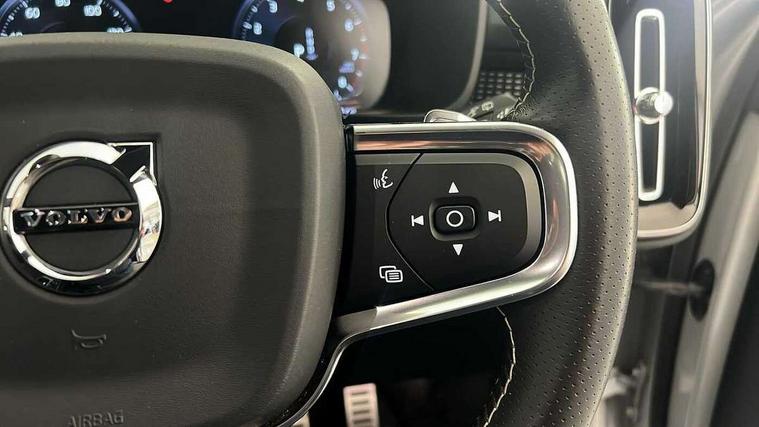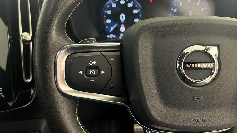 12.3" Active TFT crystal driver's instrument display, 9" centre console portrait touch screen, Adjustable steering wheel force, Bluetooth hands free telephone kit, Drive mode selector, E-call, Lane keep assist with driver alert control, Oncoming Lane Mitigation, Sensus navigation with European mapping and traffic information, Speed limiter, Speed sensitive steering, Voice control system, Volvo on call, DAB Digital radio, Steering wheel mounted remote controls, Adaptive brake lights with high level LED brake lights, Auto dimming interior mirror, Automatic headlamp levelling, Black stone door mirrors, Black stone roof, Colour coordinated auto folding and heated power door mirrors, Dark tinted glass for rear windows + rear screen + side luggage area window, Dual integrated exhaust pipes with high gloss black surround, Electrically adjustable and heated door mirrors, Embossed rear side roof pillar, Front and rear electric windows, Front tread plates, High gloss black front and rear skid plate, High gloss black lower front bumper, High gloss black mesh front grille with high gloss black surround, High gloss black roof rails, High gloss black window trim, Home safe and approach lighting, LED front fog lights, LED Headlights + Active high beam incorporating daytime running lights, Rain sensor windscreen wipers, Rear wiper, Roof antenna, Roof spoiler, Visible VIN plate, 12V socket in front tunnel console and luggage compartment, 2 zone electronic climate control with Clean zone air quality system + pollen filter + cooled glovebox, 3 spoke leather steering wheel with chrome trim, 60/40 split folding rear seat, A-pillar parking ticket holder, Ambient front door and instrumental panel lighting, Black headlining, Bright metal luggage threshold, Centre console cupholders and storage, Driver seat height/tilt/lumbar adjust, Driver's side lower dashboard credit card storage compartment, Extended front seat cushions, Front door pocket and front cupholder illumination, Front footwell illumination, Front tunnel net pocket and integrated waste bin, Glovebox bag hook, Height/reach adjustable steering column, High gloss centre tunnel deco, Illuminated luggage compartment, Illuminated tailgate, Illuminated vanity mirrors + ticket holder, Isofix attachments on outer rear seats, Leather coloured key integrated remote, Leather/nubuck upholstery, Load protection net, Lockable/illuminated glovebox, Multicolour theatre lights, Passenger seat adjustable for lumbar support, Perforated leather gearknob, Perforated leather steering wheel with gearshift paddles, Rear armrest / integral cup holders / storage tray, Rear reading and courtesy lights, Sports pedals, Underfloor stowage compartment, 3x3 point rear seatbelts, City safety, Drivers knee airbag, DSTC-Dynamic Stability and Traction Control, Dual stage driver/passenger airbags, Electronic parking brake with auto hold, Fasten seatbelt reminder, First aid kit, Hill descent control, Hill start assist, Inflatable curtain, Passenger airbag cut-off device, Road sign information display, Run off Road Mitigation, Run off Road Protection, Seatbelt reminder and pretensioners, SIPS (Side Impact Protection System), SIPS airbags, Slippery road and hazard light alert, Tyre pressure monitoring system, Vehicle deceleration control with Anti-lock Brake System, Electronic Brake Distribution and Emergency Brake Assist, Warning triangle, WHIPS whiplash protection system - front, Anti-theft alarm including immobiliser/volume sensor + level sensor, Fuel flap with deadlocking system, Key integrated remote control central locking, Locking wheel nuts, Private locking for tailgate, Cutting edge aluminium inlay,