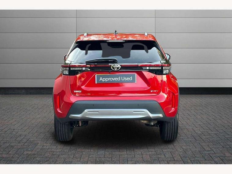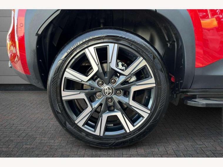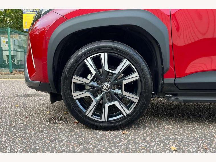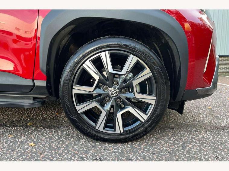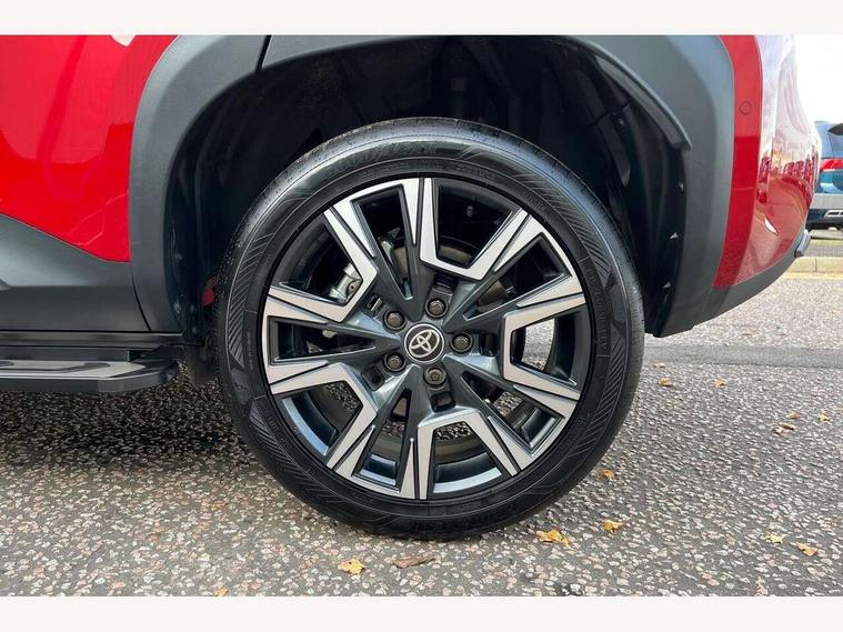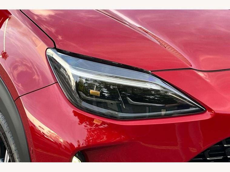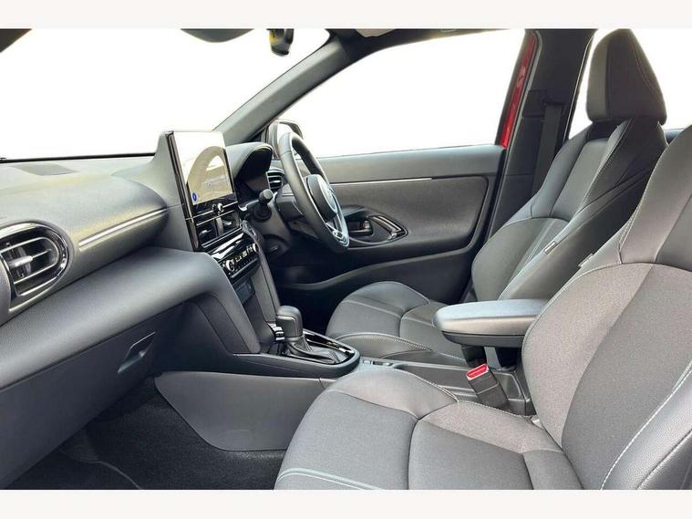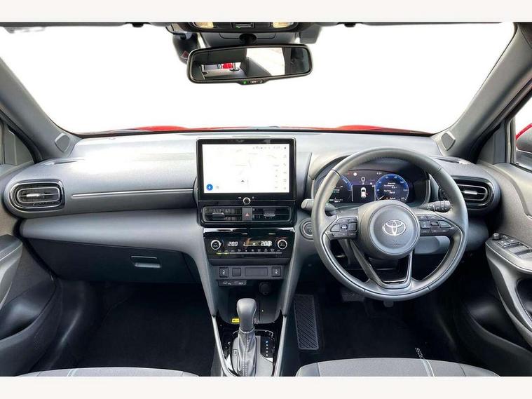 10.5" Multimedia display screen, 10.5" Toyota smart connect+ with navi multimedia system with wireless Smartphone integration incl Apple CarPlay, 360 degree panoramic view monitor, 7" Multi information display screen, Adaptive cruise control, multi info switches on steering wheel, Adjustable speed limiter, Advanced parking assist, Blind spot monitoring, Bluetooth connectivity, Color multi-information display, Digital speedometer, Digital tachometer, Drive mode selector, Driver attention alert system, Dynamic guide lines on reversing camera, eCall emergency system, Electric power steering, Emergency driving stop system, Full range intelligent adaptive cruise control, Hybrid system indicator, Intelligent front and rear parking sensors with clearance sonar and automatic braking, Intersection turn assist, Key reminder warning, Lane change assist, Lane trace assist, My T Connected services, Power tailgate, Pre-collision system enhanced with emergency steering assist, Rear cross traffic alert, Remote boot door release in cabin, Road sign assist - RSA, Safe exit assist, Tailgate, Telephone switch on steering wheel, Wireless Mobile Phone Charger, Steering assisted vehicle stability control, 6 speakers, DAB Digital radio, Front USB Type-C connector, Front USB-C device charger, Acoustic windscreen glass, Anti-jam protection on power windows, Auto dimming rear view mirror, Auto high beam [AHB] with on/off switch, Auto intermittent windscreen wipers, Automatic headlights, Automatic headlights cut-off, Automatically retractable door mirrors, Black door moulding, Black lower front grille, Black protection moulding on side doors, Black roof rails, Black wheel arch mouldings, Body colour door handles, Body colour front bumper, Body colour rear bumper, Electric adjustable heated door mirrors, Follow me home headlights, Front and rear electric windows with auto up/down function, Gloss black upper front grille, Headlight cut off reminder, Indicators integrated on door mirrors, Intermittent rear wiper, Kick activated power back door, LED 3rd brake light, LED daytime running lights guide, LED front fog lights, LED front light guide, LED Indicators, LED projector headlights, LED rear lights with sequential indicators, Manual headlight levelling, Meshed upper front grille, Noise reduction layer on windscreen, Pre wiring for towing hook, Privacy glass, Rain sensor, Rear roof spoiler, Rear side wing doors, Rear window defogger, Shark fin antenna, 12v power outlet - front, 12V power point in boot, 2x Rear coat hooks, 3 seat bench in 2nd row, 3 spoke leather steering wheel, 40/60 split deckboard, 40:20:40 split folding rear bench seat, Adjustable rear headrests, Adjustable speed limiter switch on steering wheel, Boot light, Central armrest, Driver and front passenger personal lights, Driver and front passenger Whiplash injury Lesseing seats, Driver and passenger seatback pockets, Dual zone automatic air conditioning, Fabric door trim, Front console box, Front cup holders, Front door pockets, Front head restraints, Front sport seats, Front/rear assist grips, Gear shift indicator, Grey roof lining, Heated driver and passenger seats, Heated steering wheel, Height adjustable driver's seat, Height adjustable front passenger seat, Hooks for luggage holding belts, ISOFIX child restraint system, Lane departure alert switch on steering control, Leather gearshift, LED centre room light, Light on driver and passenger sun visor, Manual telescopic and tilting steering wheel, Mirror on driver and passenger sun visor, Nanoe-X air purifier, Partial synthetic leather upholstery, Pollen air filter, Power adjustable lumbar support on driver seat, Rear cup holders, Rear door pockets, Rear head restraints, Remote air-conditioning system, Single compartment glovebox, Single front passenger seat, Soft tonneau cover, Storage box under boot floor, Voice recognition switch on steering wheel, White ambient lighting in centre console, White ambient lighting in footwell, White ambient lighting on front doors, Yaris cross floor mats, Tech pack - Yaris Cross, 3x3 point rear seat belts, ABS+EBD+Brake assist, Downhill Assist Control (DAC), Driver and passenger central airbags, Driver and passenger front airbags, Driver and passenger side airbags, Electronic parking brake, Emergency brake light system (EBS), Front seat belt reminder, Hill start assist control (HAC), Passenger airbag on/off switch, Pre-collision system with pedestrian and cyclist detection, Rear door child safety locks, Rear passenger side airbags, Rear seat belt reminder, Traction control, Tyre pressure warning system, Immobiliser, Intrusion alarm, Keyless smart entry with push button start, Power door locks, Power passenger window lock, Remote door lock, Gloss black side air vent surrounds, Tyre repair kit,