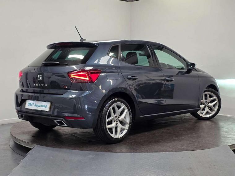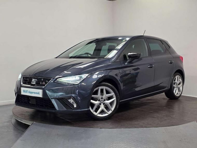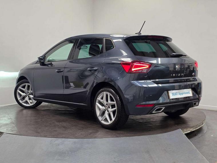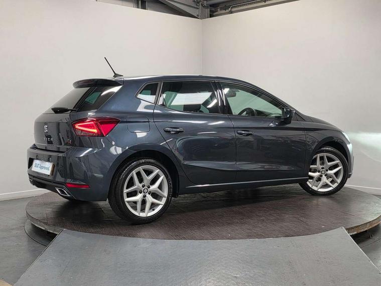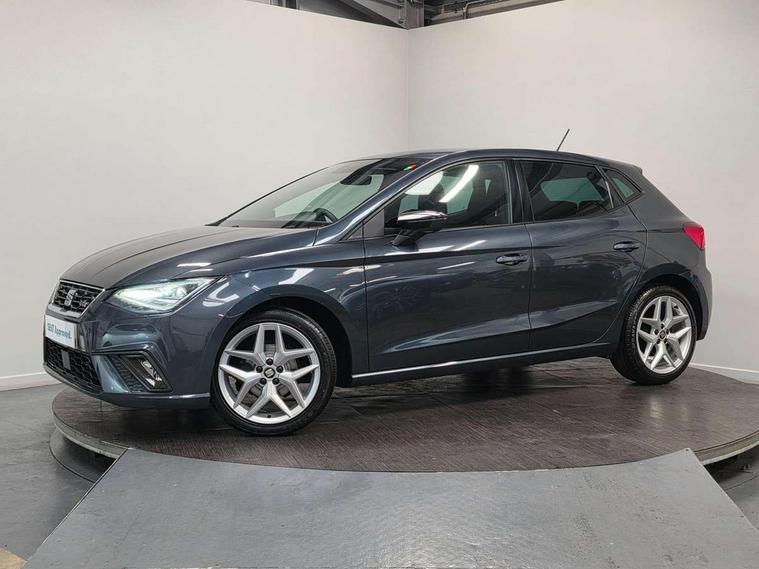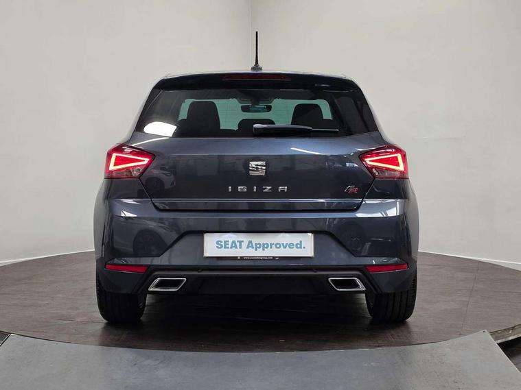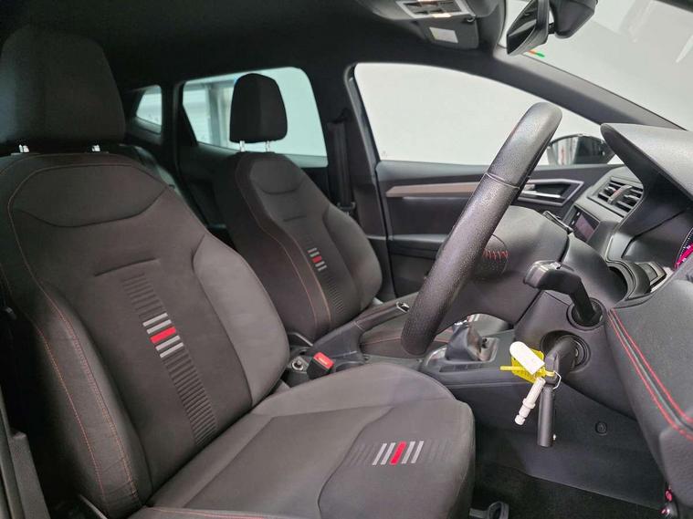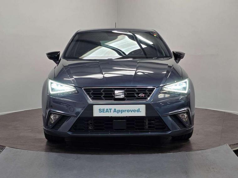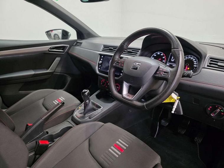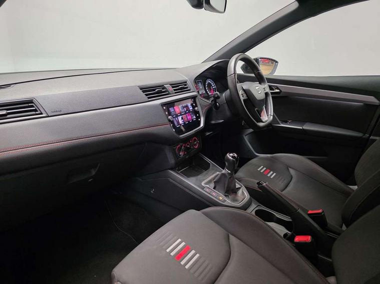 'Lights On' Reminder warning buzzer, Bluetooth Handsfree Phone Connection, Cruise control, Digital clock, Full Link Smartphone Integration with Mirror Link, Apple Car Play, Google Android Auto, Low fuel warning light, Outside temperature gauge, Power Steering, Satellite navigation system with 3D mapping, 8" touch screen, voice control and additional USB port, SEAT Drive profile, SEAT logo boot release, Trip computer, Sports suspension, 6 speakers, Auxiliary input socket, CD player, Digital Audio Broadcast (DAB) Tuner, Radio/MP3 player, SD card slot, SEAT USB media cable, Steering wheel mounted controls, USB port, Anti theft roof antenna, Auto dimming rear view mirror, Automatic headlights, Automatic rain sensing wipers, Body colour bumpers, Body colour door handles, Brilliant black door mirrors, Chrome front grille frame, Chrome grille, Coming/leaving home lighting function, Cornering front fog lights, Dark tinted rear windows, Electric folding door mirrors, Electric front windows, Electric headlight adjustment, Electrically adjustable and heated door mirrors, Exclusive FR rear bumper, Full LED headlights, LED daytime running lights, LED tail lights, Rear fog lights, Twin exhaust pipes, 3 rear headrests, 60/40 split folding rear seat, Air conditioning, Door and steering wheel ice metal decorative inserts, Driver's sunvisor with ticket holder/vanity mirror, Dust/pollen filter, Flat bottomed perforated leather steering wheel with red stitching and FR logo, Front courtesy lights, Front cupholders x 2, Front reading lights, Gear shift indicator, Glovebox, Height adjustable driver's seat, Height adjustable front/rear head restraints, Height adjustable passenger seat, Height/reach adjust steering wheel, Illuminated boot, Instrument lighting with brightness control, Leather handbrake, Multi-colour ambient interior lighting, Nora cloth upholstery, Passenger sunvisor, Rear top tether child seat ISOFIX attachment, Sports seats, Full LED headlight pack - Ibiza, 3 point seatbelts on all 3 rear seats, ABS, Active front headrests, Child locks on rear doors, Curtain airbags, Driver/Front Passenger airbags, ESP+EBA, Front assist (AEB), Front passenger airbag deactivation, Front side airbags, Hill hold control, Multi-Collision braking, Seatbelt warning, Tiredness recognition system, Tyre pressure monitoring system, Electronic engine immobiliser, Locking wheel bolts, Remote central locking + deadlocks, Volumetric alarm with back up horn, Leather dashboard, 17" Dynamic alloy wheels,