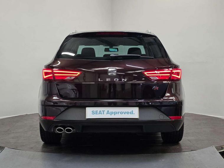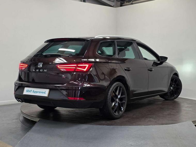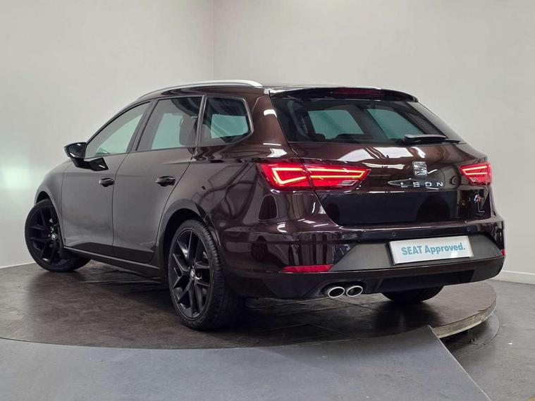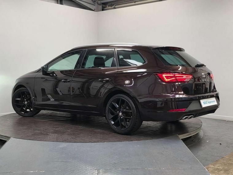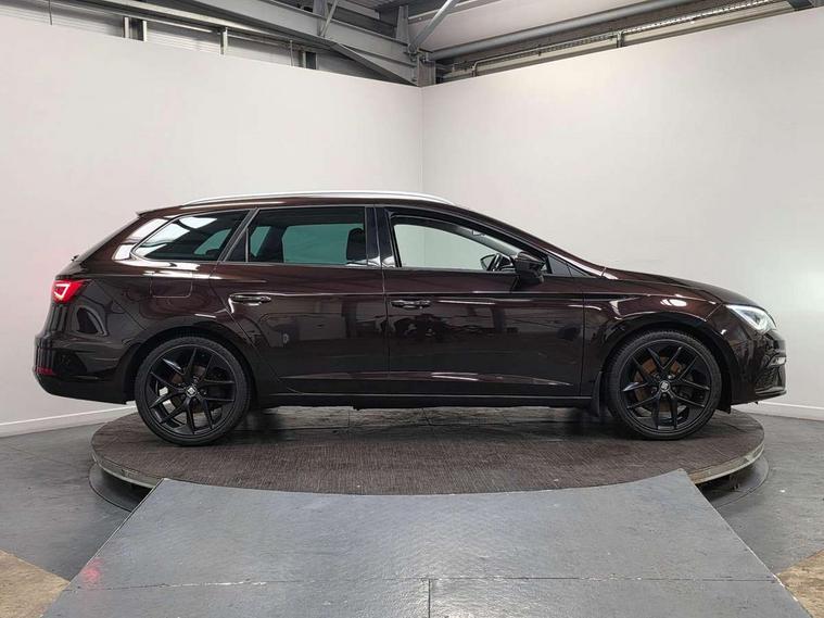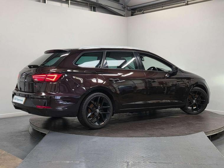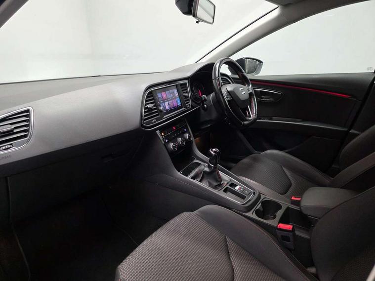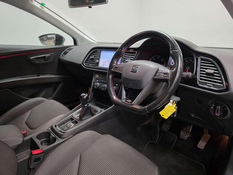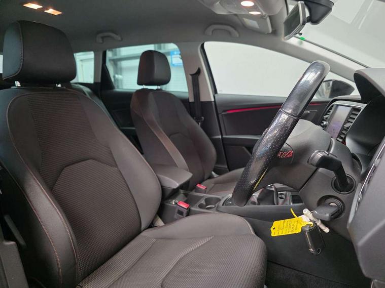 'Lights On' Reminder warning buzzer, 8" touch screen, Bluetooth Handsfree Phone Connection, Low fuel warning light, Outside temperature gauge, Rear parking sensors, Remote fuel flap release, SEAT Drive profile, SEAT logo boot release, Service interval indicator, Trip computer, Voice control system, XDS electronic differential lock, 2 USB ports, 2 USB sockets in rear, 2x SD card slot, Auxiliary input socket, Bluetooth audio streaming, DAB Digital radio, Radio/CD + MP3, Steering wheel mounted audio/phone controls, Aluminium front door sills, Black grille with chrome surround, Body colour door handles, Body coloured bumpers, Body coloured door mirrors, Dark tinted rear windows, Electric adjustable/heated/folding door mirrors, Electric front/rear windows with one touch/auto up/down, Electric headlamp adjustment, High gloss black finish B and C pillars, LED daytime running lights, LED front fog lights, LED Headlights, LED indicators in door mirrors, LED number plate light, LED tail lights, Rear wash/wipe, Reverse activated kerb-view adjustment on passenger's door mirror, Twin exhaust pipes, 12v power point in centre console, 3 height adjustable rear headrests, 60/40 split folding rear seat, Active head restraints, Additional heating and ventilation outlet in rear of centre console, Boot net, Chrome loading sill, Double boot floor, Driver seat height adjust, Driver seat lumbar adjustment, Driver/passenger sunvisors with illuminated vanity mirrors, Dual zone climate control, Dust/pollen filter, Front adjustable head restraints, Front armrest with storage box, Front cupholders x 2, Front seat and rear pockets, Front sports seats, Front/rear floor mats, Height/reach adjust steering wheel, Illuminated boot, Illuminated door sills, Illuminated glovebox, Instrument lighting with brightness control, Leather handbrake, Luggage compartment cover, Luggage tie-down hooks, Passenger seat height adjuster, Passenger seat lumbar adjust, Perforated leather steering wheel with red stitching + gear knob, Rear top tether child seat ISOFIX attachment, Rear window curtains, Storage boxes under front seats, 3 point seatbelts on all rear seats, ABS + traction control, Active pedestrian safety system, Child proof door locks, Collision mitigation braking system, Curtain airbags, Driver/Front Passenger airbags, Drivers knee airbag, Electronic parking brake with auto hold, ESP+EBA, Front assist including city emergency braking, Front seatbelt pretensioners, Front Seatbelt warning, Front side airbags, Hill hold control, Passenger airbag deactivation system, Tyre pressure monitoring system, 2 folding remote keys with window open/close function, Engine immobiliser, Locking wheel bolts, Remote central locking + deadlocks, Volumetric alarm with back up horn, Chrome interior trim,