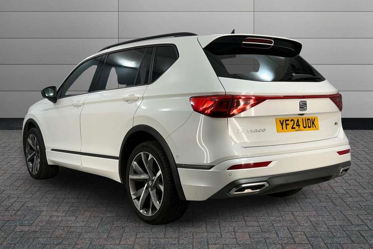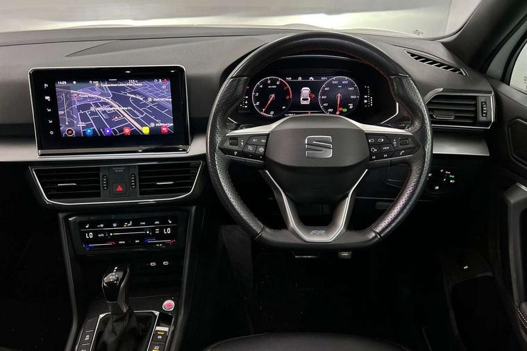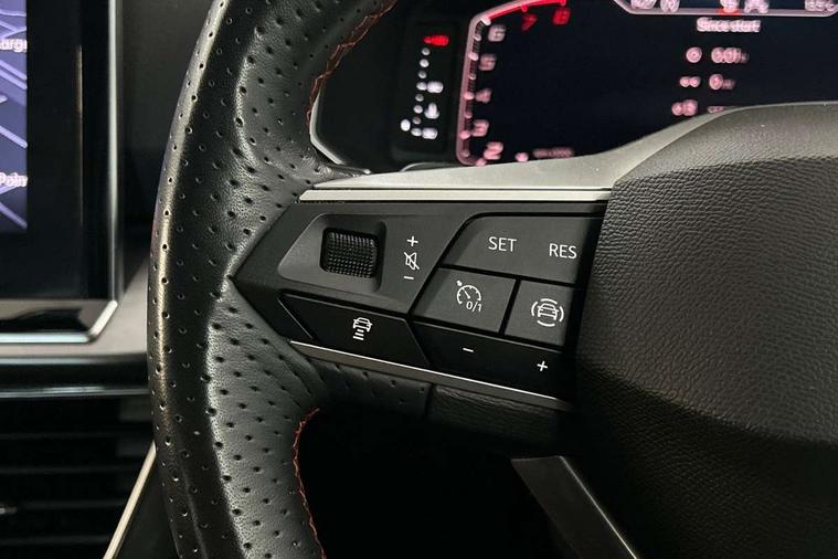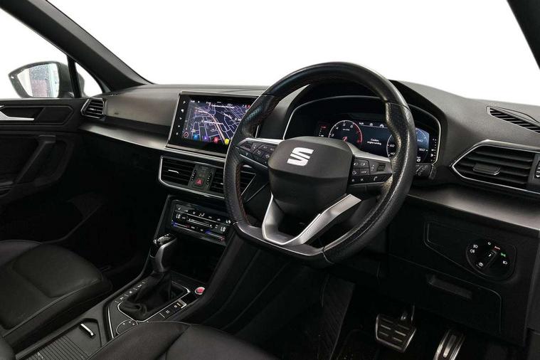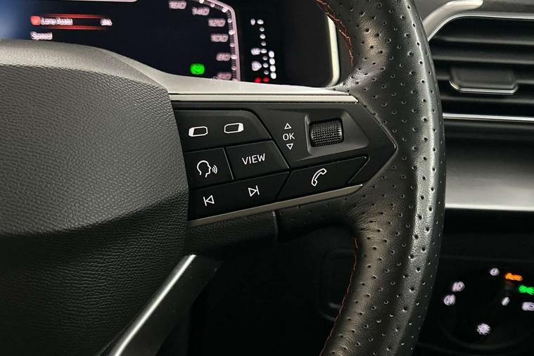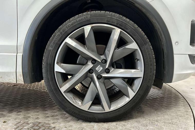 'Lights On' Reminder warning buzzer, 10.25" digital cockpit with multi function display, Adaptive cruise control with speed limiter, Bluetooth audio streaming with handsfree system, Digital clock, e-Call (emergency call), Front assist city emergency braking and pedestrian protection, Full Link Wireless Smartphone Integration with Mirror Link, Apple Car Play, Lane assist, Low fuel warning light, Outside temperature gauge, Power assist steering, RPM counter, Seat connect with safety, service, remote and online, SEAT Drive profile-4 different modes, progressive steering, 4Drive versions with off-road/snow, steering response, throttle response, gear shifts mode, Self parking functionality (includes front and rear parking sensors), Tailgate, Top view camera, Trip computer, Wash water level indicator, Comfort suspension, Sports rear shock absorption, XDS electronic differential lock, Navigation system with 9.2" colour touchscreen with proximity sensor, 3D Map display, DAB, AM/FM Radio, 3 USB (type C), Aux-in, 8 speakers, SD card, Steering wheel mounted audio/telephone controls, USB (type C) cable for Apple and Android compatibility, Auto dimming rear view mirror, Auto headlights with automatic coming and leaving home function, Automatic headlight adjustment, Black door mirrors, Black roof rails, Black window trims, Body coloured side skirts, Coast to coast lighting, Dark tinted rear windows, Dynamic rear indicators, Electric adjustable/heated/folding door mirrors with memory, Electric front/rear windows, Exterior black mouldings, Front grille frame in black, Front halogen fog lights with cornering function, Fuel door linked to central locking, Full LED headlights with LED rear lights, Illuminated aluminium front door sill with trim logo, LED daytime running lights, LED licence plate lighting, LED third brake light, Rain sensing wipers, Rear fog lights, Rear roof spoiler, Rear side wing doors, Rear wash/wipe, Sports bumpers, Twin exhaust pipes, Welcome lighting, 2 individual 3rd row seats, 3 seat bench in 2nd row, 3 zone climate control, Ambient spot lighting and front footwell illumination, Black interior roof, Centre armrest in front with air outlet in rear, Driver and passenger sunvisor with covered and illuminated mirror, Driver's electric lumbar adjustment, Easy fold rear seat system - second and third row, Electric driver's seat with memory, Forward and backward adjustable seats 2nd row, Four cargo rings in the boot, Front bucket seats, Front cupholders, Front integrated headrests, Front passenger seat lumbar adjustment, Front seat back storage pockets, Gear shift indicator, Heated front and outer rear seats, Height adjustable passenger seat, Illuminated boot, Illuminated glovebox, Instrument lighting with brightness control, ISOFIX points in outer 2nd row seats and front passenger seat with top tether anchorage points, Leather gear knob, Leather upholstery, Leather wrapped multifunction steering wheel, Luggage compartment floor with split function, Multicolour ambient lighting in front and rear door panels + LED lights in interior door handles, Rear armrest and easy back seat release mechanism from boot, Rear head restraints, Red stitching on front armrest, Single front passenger seat, Sliding boot cover, Sports front seats, Sports steering wheel, Three 12V sockets, 3x3 point rear seatbelts, ABS, Driver/front passenger airbag, Drivers knee airbag, Electronic parking brake with auto hold, Electronic stability control, Front passenger airbag deactivation, Front side airbags, Hill hold control, Manual rear child locks, Seatbelt reminders for all seats, Tiredness recognition system, Traction control, Two curtain airbags, Tyre pressure monitoring system, Alarm, Keyless enter and go with electric tailgate with virtual pedal, Locking wheel bolts, Power locking and remote control with two foldable keys and opening boot selector, Chrome interior detailing - door and dashboard decorative inserts, 20" 'Cosmo' Grey machined alloys wheels, Tool kit,