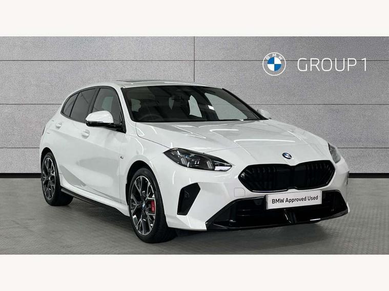Active guard plus, Attentiveness assist, Bluetooth / WiFi interface for wireless connection of mobile terminal devices and audio streaming, BMW ConnectedDrive online services, BMW Live cockpit plus, BMW Teleservices, Check Control warning system for monitoring of lights and door/luggage compartment open warning, Eco pro mode, Electric power steering with Servotronic steering optimised at all speed ranges, Evasion assistant, Flat airvents in instrument panel with adjustable slats, Front and rear parking sensors, Front axle single joint with specific axle kinematics to minimise drive influences on steering + provide increased rigidity agile driving behaviour, Gearshift time display in manual mode, Integrated owners handbook, Left turn warning with brake function, My modes (Personal / Efficient / Sport), Oil sensor for level and grade, On board computer, Optimum shift indicator, Park assist including reversing assistant, lateral parking aid and reversing assist camera, Personal e-SIM, Personal Profile, Pull away assistant, Rigidly mounted rear subframe - Multi link construction with separate spring / damper configuration and excellent driving characteristics, Speed limit Info including no-overtaking indicator, Speed limiter, 49 litre fuel tank, Aluminium lightweight construction, Anti roll bar front and rear, Balancer shaft, Double VANOS twin scroll turbocharging system, Drive Performance Control, Electronic differential lock, Electronic selector lever, High precision injection, M Adaptive suspension, Petrol Particulate Filter, Steptronic transmission with double clutch, Twin tube gas filled shock absorbers with degressive characteristic curve, VALVETRONIC engine management, DAB Digital radio, Auto dimming rear view mirror, Automatic windscreen wipers and automatic headlight, Body colour door handles, Body colour mirror caps, Body colour roof trims, Chrome 'M' logo side designation, Chrome exhaust twin tailpipes round 90mm in left, Chrome kidney grille frame with Satin Aluminium struts, Direction indicator side lights in exterior mirrors, Electrically adjustable exterior mirror with mirror adjustment switch on drivers armrest and aspheric on driver side, convex on passenger side, Exterior M sport design elements, Fading support, Folding side mirrors with auto dimming/folding wing mirrors with auto dimming, Follow me home headlights, Front and rear bumper system with replaceable deformation elements, Front and rear electric windows with open and close fingertip control, anti trap facility and comfort closing, Front bumper panel with M specific design in vehicle colour with inserts in black high gloss, Front door sill finishers in black plastic with M designation in metallic look, Green tinted heat protection glazing, Heated rear window, High gloss black exterior mirrors, High gloss shadowline window frame, Recess cover mirror frames and B/C pillar embelisher trim, High level third brake light, Integrated front windscreen with washer jets, LED daytime running lights, LED eyebrow turn indicators, LED front fog lights, LED Headlights, Lightweight engineering, M identification on the sides, Matt black air guide grilles, Matt black wheel arch trim, Model badge on tailgate right, Nearside reverse light in rear light cluster, Preparation for high beam assistant, Rain sensor, Rear bumper panel with M-specific design in vehicle colour with inserts in black high gloss, Rear fog lights, Rear side wing doors, Rear window wiper, Shark fin antenna, Side sill covers with M specific design in body colour, Trailer stabilisation logic, Visible VIN plate, Welcome lighting, 12V power socket in front centre console with blanking plug, 3 rear seat head restraints, 3 seat bench in 2nd row, 3 spoke sports leather steering wheel with black leather and stitching, pearl chrome decorative finish, specific M Badge, Anthracite front and rear floor mats, Anthracite headlining, Black boot net with lashing eyes, Cargo function on 2nd seat row, Child seat ISOFIX attachment for two outer rear seats and front passenger seat with anchorage points, Conditioned based service, Driver and front passenger backrest net on rear, Driver and front passenger seat heating, Driver side folding compartment in instrument panel, Folding rear clothes hook, Footrest and pedals in black plastic, Four grab handles integrated in roof lining, Front and rear door pockets with bottle holders, Front and rear side armrest integrated into door trim, Front armrest with storage compartment, Gearshift paddles on steering wheel, Glove compartment, Height adjustable front head restraints, Luggage compartment for bag hooks on left and right, foldable luggage compartment liner and four lashing eyelets, Manual adjust steering wheel, Multi-function controls for steering wheel, Rear seat backrest with manual 60:40 split folding with 3 top tether clips integrated on rear of seat panels, Single front passenger seat, Storage compartment in centre console, Storage compartment in luggage compartment, Stowage of the parcel shelf in luggage compartment trim, Sun visors with vanity mirrors and insert tab, Two front centre console cupholders, Type C two USB ports in rear centre console, Upper retaining strap integrated into backrest rear panels, Connected pack professional - 1 Series, Interior lights pack - 1 Series, M Sport exterior styling aerodynamics pack - 1 Series, 2 tone horn, 3 point seatbelts on all seats, front pyrotechnic belt tensioners, stopper and belt force limiters, rear coded belt buckles, Airbags - Front driver/passenger, front and rear curtain head protection, front side, manual deactivation of front passenger airbag, Anti lock braking system (ABS) with brake assist, BMW emergency call, Brake drying, Braking readiness, Child proof locking system in rear door, Comfort modes, Cornering brake control, Crash sensor activating of airbags, Unlocking doors, hazard warning lights, interior light, safety battery terminal, Driver and front passenger seat belt sec