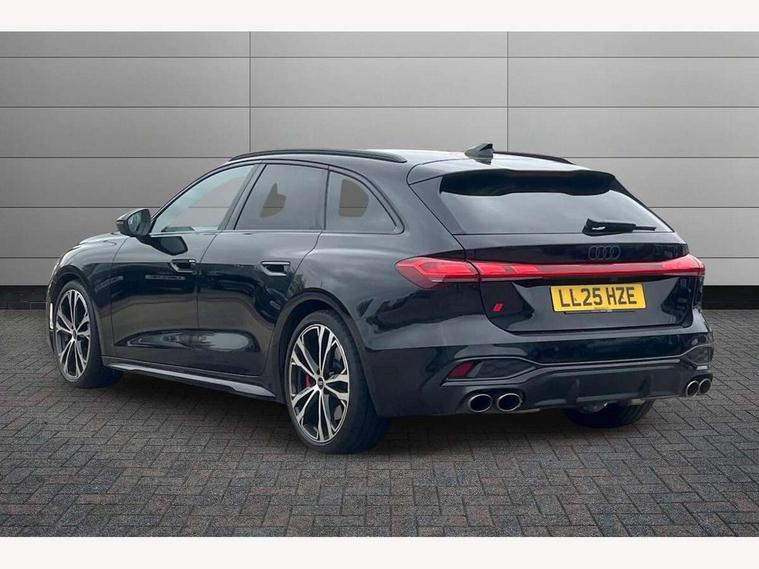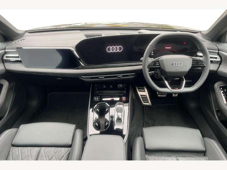 Adaptive cruise assist plus with steering intervention, Advanced driver attention and fatigue montior, Audi application store, Audi assistant, Audi connect emergency call and service, Audi drive select, Audi smartphone interface, Audi virtual cockpit plus with 11.9" OLED colour display, Automatic start/stop system with coasting functionality, Camera based traffic sign recognition, Garage door opener, Intersection assist, Lane change assistant with exit warning system, rear cross traffic alert and rear turn assist, Lane departure warning with emergency assist, MMI 10.9" front passenger touch display, MMI navigation plus with high resolution 14.5" OLED touchscreen colour display, Park assist plus, Parking system plus with 360 display, Progressive steering with servotronic, Swerve assist and turn assist, Top view camera, Traffic sign based speed limiter, Quattro with sport differential, S sports suspension with damper control lowered by 20mm, 2 USB-C ports in both the front and rear, DAB digital radio reception, Smartphone compartment with wireless charging, Aluminium window trims, Auto dimming rear view mirror, Black door handles, Black roof rails, Dark chrome-plated tailpipe trims, Digital OLED tail lights including communication light, Door mirrors - electrically adjustable, heated, folding and auto dimming on both sides, Front and rear electric windows, Front door sill trims with aluminium inlays, illuminated with 'S' logo, Headlight cleaning system, High beam assist, LED daytime running lights, LED third brake light, Matrix LED headlights with eight light signatures selectable via the MMI or the myAudi app, Panoramic glass roof with switchable transparency, Privacy glass, Rear and side windows with heat insulating glass, Rear side wing doors, Rear wash/wipe, Red S rhombus badging with S lettering on rear, S bumpers, radiator grille and diffuser in titanium matt black and diffuser insert in matt silver, White rhombus logo projection light in exterior mirrors, Windscreen with acoustic glazing, 3 rear headrests, 3 seat rear bench, 3 spoke leather steering wheel with multi-function buttons with touch control, flattened on top and bottom, with S badging and contrast stitching, 3-zone automatic climate control, 40:20:40 split folding rear seat bench with centre armrest and cup holders, Comfort front centre armrest, Electric steering wheel adjustment, Electrically adjustable front seats, Front and rear floor mats, Front sport seats plus with integrated headrest and S embossed logo, Headlining in black cloth, Heated front and outer rear seats, Heated steering wheel, i-Size child seat mounting on the front passenger side and outer rear seats, i-Size and top tether on the outer rear seats, Luggage compartment lid, electrically opening and closing, Memory function for driver seat, Pearl Nappa leather upholstery, Pneumatically adjustable lumbar support, Single front passenger seat, Stainless steel pedals and footrest, Steering wheel grips in perforated leather and shift paddles, Ventilation seat and massage function for the driver and front passenger, Black styling package plus - A5, Sound and vision pack - A5, 3x3 point rear seat belts, Acoustic vehicle alerting system, Convenience key with safelock, Driver airbag, Electric child safety locks, First aid kit with warning triangle and vests, Front emergency brake assist, Front passenger airbag, Front passenger airbag deactivation, Hill hold assist, Occupant detection in rear seat area, Proactive passenger protection system for front, sides and rear, Red brake calipers, Seat belt monitoring with rear seat occupant reminder, Side airbags in front and rear with head airbag system and front interaction airbag, Tyre pressure loss indicator, Anti theft alarm, Anti-theft wheel bolts, Keyless Go, Accent surfaces and control buttons in gloss black, Black dashboard with contrast stitching, Softwrap in Dinamica with contrast stitching, Upper and lower interior elements in dinamica microfiber, 20" 5 twin spoke design Audi Sport alloy wheels in metallic black and gloss turned finish, Tyre repair kit,
