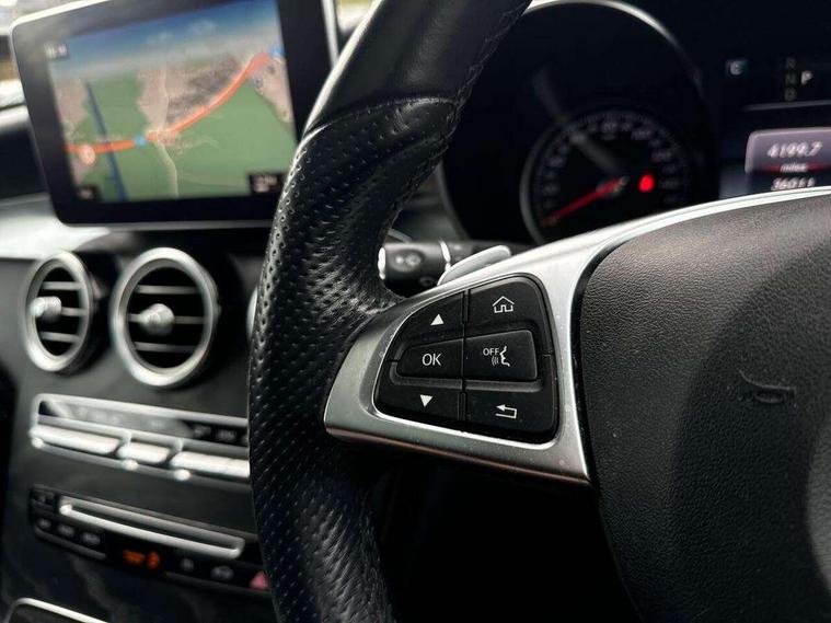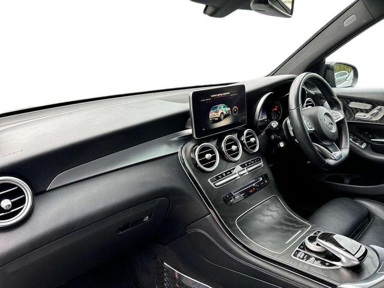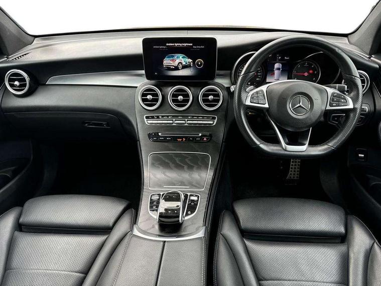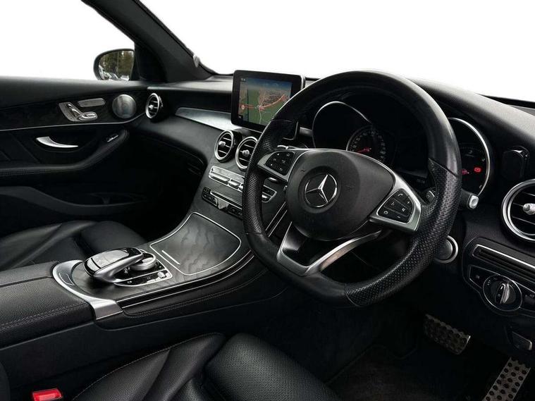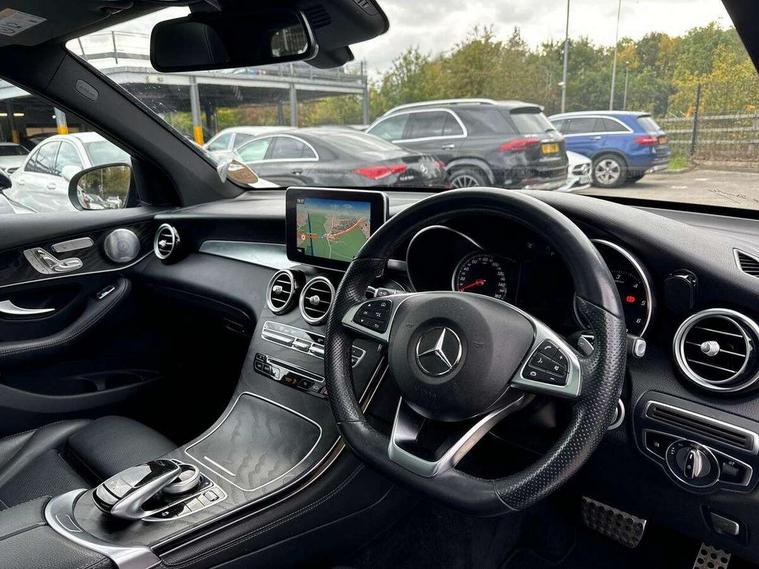 8.4" high resolution display, Active park assist with parktronic system, Attention assist, Bluetooth interface for hands free telephone, Collision prevention assist plus, COMAND online nav with colour display, radio/CD/DVD/MP3, SD card, 10GB music, Emergency Call system, speed limit assist, linguatronic voice control, Crosswind Assist, DYNAMIC SELECT with a choice of driving modes (ECO, Comfort, Sport, Sport+ and Individual), Instrument cluster with 5.5-inch TFT multi-function display, Mercedes connect me with remote online services, Multi function trip computer, Outside temperature gauge, Power opening/closing tailgate, Remote boot release, Service indicator (ASSYST), Touch pad controller for infotainment system, Traffic sign recognition, Diesel particulate filter, Burmester surround sound system, DAB Digital radio, USB connection, Adaptive brake lights, Aerodynamic rear spoiler, AMG bodystyling front and rear aprons, side skirts, Automatic headlights, Body coloured bumpers, Electric panoramic sunroof with sunblind, Electric windows one touch open/close, Electrically adjustable and heated door mirrors, Exhaust tailpipe finisher, Front and rear apron in black, High gloss black beltline and window surround, High gloss black door mirrors, LED daytime running lights, LED rear lamps, Matt black roof rails, Privacy glass (to rear of B post), Radiator grille with 2 louvres in high gloss black, Rain sensor windscreen wipers, Range adjustable headlights, Rear wiper, Tinted glass all round, 2 cupholders in front centre console, 2 way rear head restraints, 3 spoke flat bottom multi-function AMG steering wheel in black nappa leather with chrome inserts, 4 way adjustable front head restraints, 4 way electric lumbar support for driver and front passenger, 40:20:40 split folding rear seats, Ambient lighting, AMG floor mats, AMG sports seats, Auto Mercedes-Benz child seat recognition sensor, Automatic climate control, Black roof lining, Dividing net - rear, Electric front seat height adjustment, Front armrest with storage box, Front door sills with Mercedes Benz lettering, Gearshift paddles, Heated front seats, Height/reach adjustable steering column, Lockable/illuminated glovebox, Rear top tether child seat ISOFIX attachment, Sports pedals with stainless steel surfaces and rubber studs, Sunvisors with illuminated vanity mirrors, Easy-pack load compartment cover, Interior lighting pack - GLC, Memory pack - GLC, Mirror pack - GLC, Storage pack - GLC, 3 rear 3 point seatbelts, ABS with Brake Assist, Active bonnet, Adaptive brake system, ASR, Brake calipers with Mercedes-Benz lettering + perforated brake discs, Child proof door locks, Drivers knee airbag, Dual stage driver/passenger airbags, Electronic parking brake, ESP curve dynamic assist, Front and rear seatbelt reminder, Front passenger seat occupancy sensor, Front side airbags, Hill hold function, Tyre pressure monitoring system, Warning triangle and first aid kit, Window airbags, Alarm system/interior protection/immobiliser, Automatic door locking, Keyless entry and keyless start, Remote central locking,