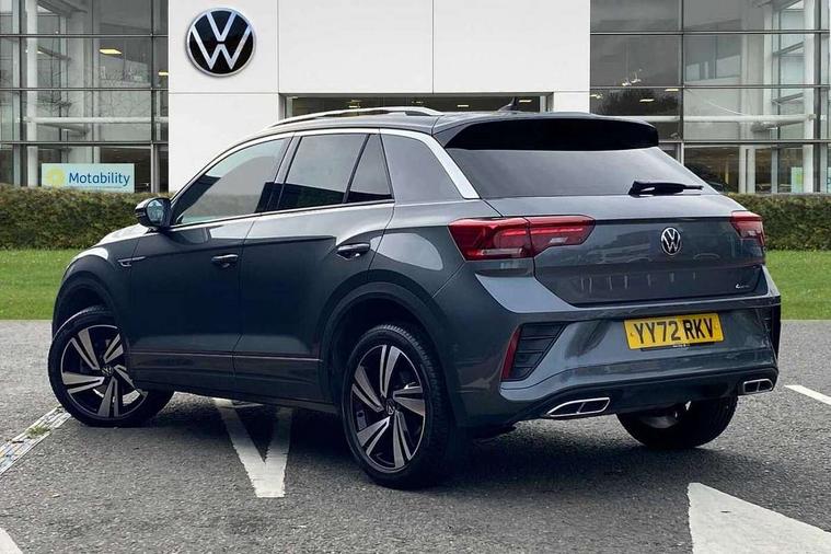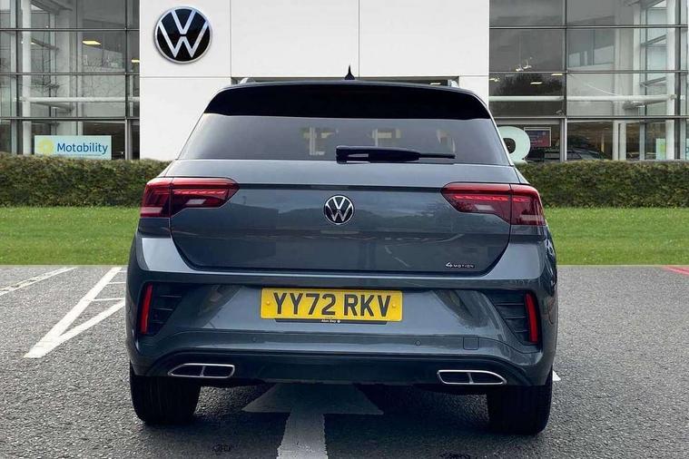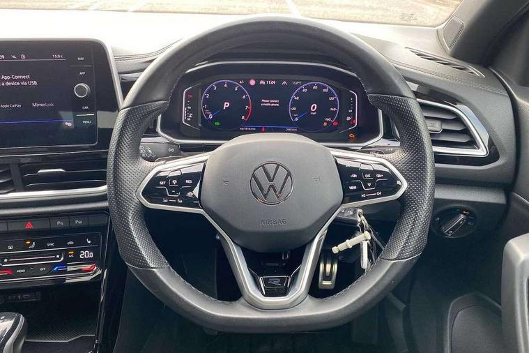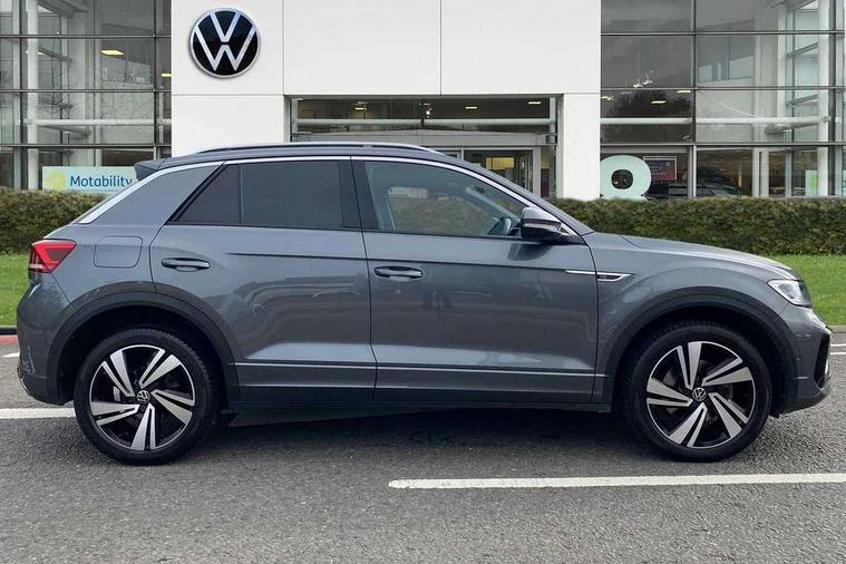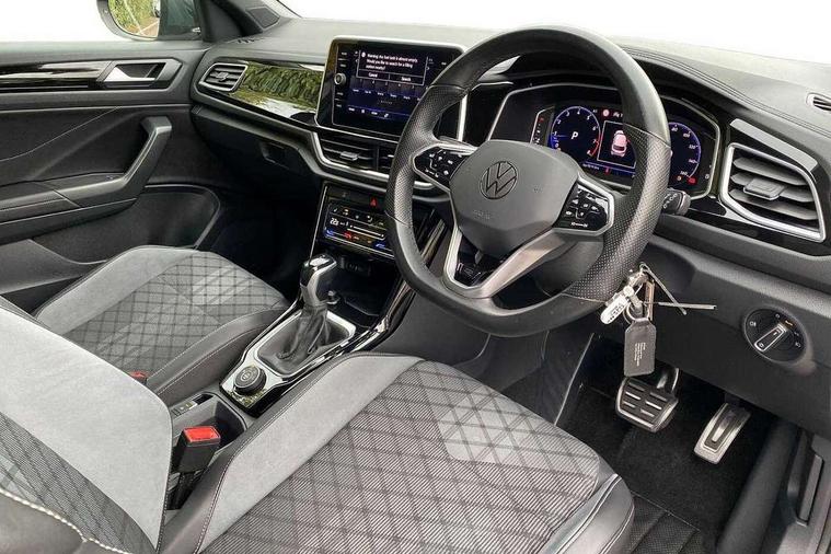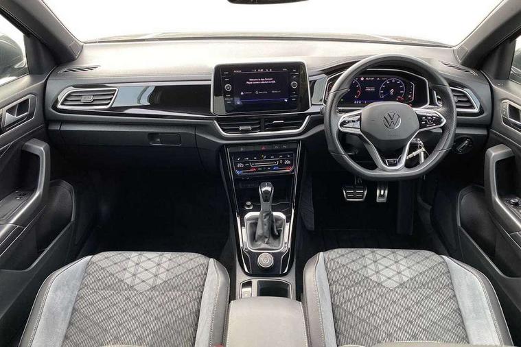 10.25" Digital cockpit pro, Bluetooth mobile phone interface, Driver alert system with fatigue detection, Driver tips and journey analysis, Emergency call service, Lane keeping system Lane Assist, Modified key software - reduce switch off time for key status change to Long no motion, Online services, Park assist including front and rear parking sensors, Service interval indicator, Tailgate/trunk lid release from outside, Think blue trainer driver tips and journey analysis, Warning sound and light for front seatbelts unfastened, Wireless app connect, Battery regeneration during braking, Four wheel drive, Start/stop function with battery regeneration, Diversity antenna for FM reception, Front and rear 6 speakers, Music playback - MP3, WMA and AAC files, Premium USB cable in choice of either Apple or Android smartphone compatibility, SD card slot, Simultaneous pairing of 2 compatible mobile devices, Title and cover art display, We Connect and We Connect Plus functionality, 3rd brake light, Auto dimming interior rear view mirror, Automatic hazard lights activation under emergency braking, Automatic headlight control with LED separate daytime running lights with coming/leaving home function, Extended roof spoiler, Exterior mirrors aspherical on driver side, convex on front passenger side, External USB type C socket and charging sockets, Front windscreen wiper with intermittent wipe and 4 position delay, Heated rear window, LED Plus headlamps, LED rear combination lamps, LED rear number plate lights, LED tail lamp rear comination lamps, Power windows with comfort operation and circuit breaker, R-Line design body coloured bumpers, Rain sensor, Rear exhaust tailpipe, Rear fog light on one side and reversing lights on both sides, Rear side wing doors, Rear wash/wipe with intermittent wipe setting, Remote electrically foldable door mirrors, puddle lights and reverse activated passenger's door mirror, 12V power socket in centre console, 3 rear head restraints, 3 seat bench in 2nd row, 4 load lashing points in luggage compartment, Air care climatronic air conditoning system with active combination filter and 2-zone temperature control, Black roof lining, Chrome plated radiator grille inserts, air vent surrounds and light switch surrounds, Door and side trim panel with leatherette insert, Drawer under drivers seat, Front + rear carpet mats, Front centre armrest, Front cupholders x 2, Front footwell illumination, Front reading light, Front scuff plates with R logo, Instrument lighting, white adjustable panel illumination, Interior ambient lighting and surround lighting, Interior light delay, Isofix child seat preparation, Leather gearshift handle, Load-through provision with cup holder when folded down ('Unsplit rear seat bench, split folding backrest, with centre armrest), Luggage compartment lighting, Single front passenger seat, Stainless steel pedals, Storage compartment in left and right luggage area, Storage compartment in rear doors, Storage compartments in driver and front passenger doors, Sunvisors with illuminated vanity mirrors, Variable boot floor, height adjustable and removable, Driver assistance pack without proactive passenger protection - T-Roc, 3 point height adj front seatbelts + pretensioners, 3 point seatbelts in outer rear with ECE label, ABS, Child locks on rear doors, Driver and front passenger airbag with front passenger airbag deactivation, Driver and front passenger safety-optimised head restraints, Drivers seatbelt reminder, Electronic parking brake, Electronic Stability Control (ESC) inc EDL (Electronic Differential Lock) and ASR (Traction Control), Front and rear passengers curtain airbag system including front side airbags, Front assist with city emergency braking and pedestrian monitoring, Front seat side impact airbags, Hill start assist, Predictive pedestrian protection, Rear disc brakes, Single tone horn, Tyre pressure loss indicator, Volkswagen roadside assistance, Alarm with interior protection, Anti-theft alarm system with interior monitoring, backup horn, and towing protection, Remote central locking with SAFELOCK, radio remote control with 2 remote control folding keys, Trims for alloy wheels,