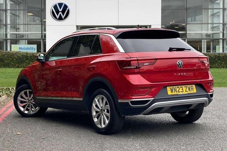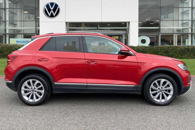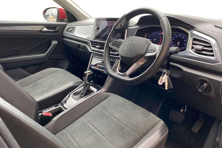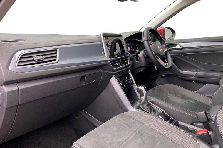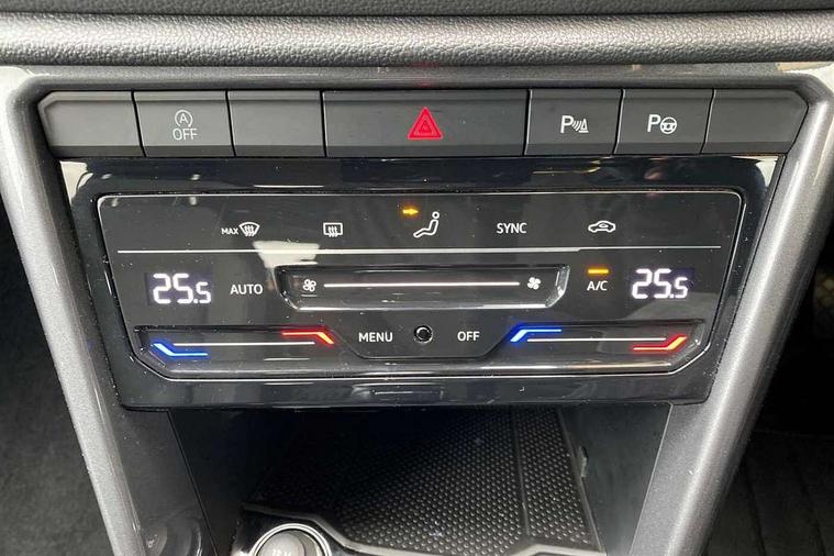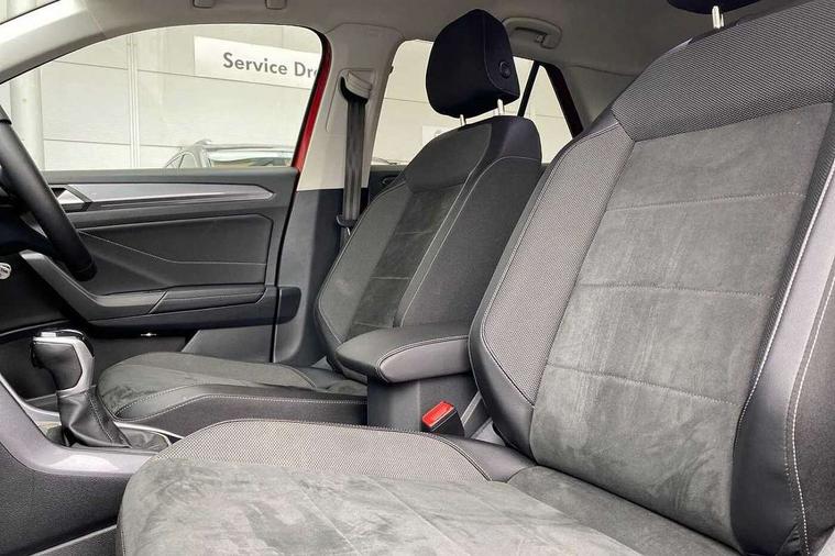 10.25" Digital cockpit pro, Bluetooth mobile phone interface, Driver alert system with fatigue detection, Driver tips and journey analysis, Emergency call service, Lane keeping system Lane Assist, Modified key software - reduce switch off time for key status change to Long no motion, Online services, Park assist including front and rear parking sensors, Service interval indicator, Tailgate/trunk lid release from outside, Think blue trainer driver tips and journey analysis, Warning sound and light for front seatbelts unfastened, Wireless app connect, Battery regeneration during braking, Start/stop function with battery regeneration, Diversity antenna for FM reception, Music playback - MP3, WMA and AAC files, Premium USB cable in choice of either Apple or Android smartphone compatibility, SD card slot, Simultaneous pairing of 2 compatible mobile devices, Title and cover art display, We Connect and We Connect Plus functionality, 3rd brake light, Auto dimming interior rear view mirror, Automatic hazard lights activation under emergency braking, Automatic headlight control with LED separate daytime running lights with coming/leaving home function, Body colour sports bumpers with silver metallic underbody fascia, Dynamic headlight range control with self adjusting whilst driving, Extended roof spoiler, Exterior mirrors aspherical on driver side, convex on front passenger side, External USB type C socket and charging sockets, Front windscreen wiper with intermittent wipe and 4 position delay, Heated rear window, LED rear combination lamps, LED rear number plate lights, LED tail lamp rear comination lamps, Light mode for poor weather, rain, fog or snow, Power windows with comfort operation and circuit breaker, Rain sensor, Rear exhaust tailpipe, Rear fog light on one side and reversing lights on both sides, Rear side wing doors, Rear wash/wipe with intermittent wipe setting, Remote electrically foldable door mirrors, puddle lights and reverse activated passenger's door mirror, 12V power socket in centre console, 3 rear head restraints, 3 seat bench in 2nd row, 4 load lashing points in luggage compartment, Air care climatronic air conditoning system with active combination filter and 2-zone temperature control, Chrome plated radiator grille inserts, air vent surrounds and light switch surrounds, Door and side trim panel with leatherette insert, Drawer under drivers seat, Front + rear carpet mats, Front centre armrest, Front comfort sports seats, Front cupholders x 2, Front footwell illumination, Instrument lighting, white adjustable panel illumination, Interior ambient lighting and surround lighting, Interior light delay, Isofix child seat preparation, Leather gearshift handle, LED interior light with switch off delay/dimmer and 2 front/rear LED reading lights, Load-through provision with cup holder when folded down ('Unsplit rear seat bench, split folding backrest, with centre armrest), Luggage compartment lighting, Non-folding front passenger seat backrest, Single front passenger seat, Storage compartment in left and right luggage area, Storage compartment in rear doors, Storage compartments in driver and front passenger doors, Sunvisors with illuminated vanity mirrors, Variable boot floor, height adjustable and removable, Driver assistance pack without proactive passenger protection - T-Roc, 3 point height adj front seatbelts + pretensioners, 3 point seatbelts in outer rear with ECE label, ABS, Child locks on rear doors, Driver and front passenger airbag with front passenger airbag deactivation, Driver and front passenger safety-optimised head restraints, Drivers seatbelt reminder, Electronic parking brake, Electronic Stability Control (ESC) inc EDL (Electronic Differential Lock) and ASR (Traction Control), Front and rear passengers curtain airbag system including front side airbags, Front assist with city emergency braking and pedestrian monitoring, Front seat side impact airbags, Predictive pedestrian protection, Rear disc brakes, Single tone horn, Tyre pressure loss indicator, Volkswagen roadside assistance, Anti-theft alarm system with interior monitoring, backup horn, and towing protection, Remote central locking with SAFELOCK, radio remote control with 2 remote control folding keys, Trims for alloy wheels,