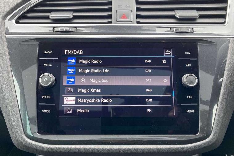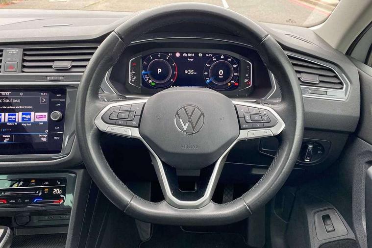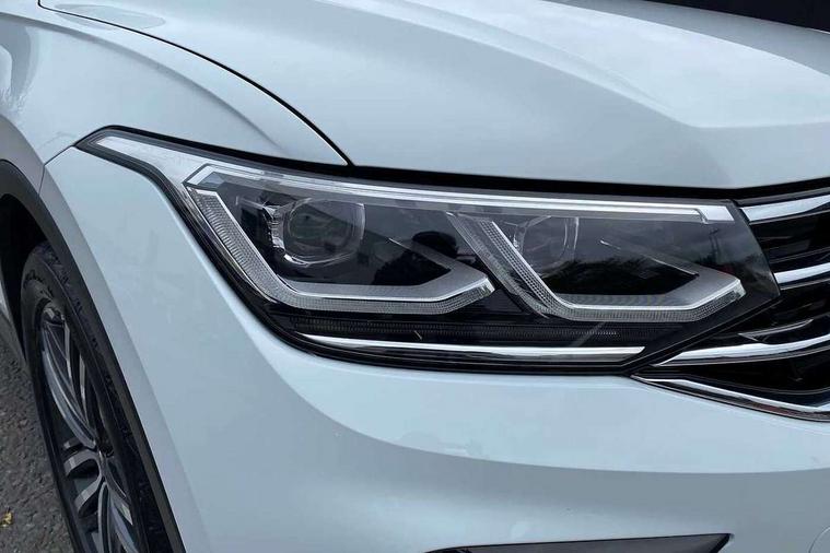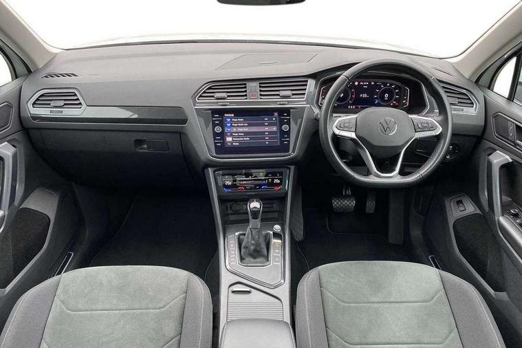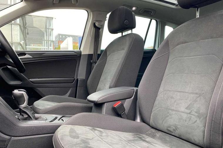 Adaptive cruise control ACC stop and go including speed limiter, App-Connect incl. App-Connect Wireless for Apple CarPlay and Android Auto, Bluetooth phone integration system, Distance control assist, Driver alert system, Driver profile selection, Dynamic road sign display, eCall emergency call system, Electromechanical speed sensitive power steering, Engine start/stop button, Lane keeping system Lane Assist, Lights on warning, Motorised electric tailgate operated via key fob, drivers door and foot movement under tailgate, Multifunction front facing camera, Outside temperature display, Premium multifunction display with multi colour display, Remote control boot opening, Rev counter, Revision / skills operating concept travel assistant, Service interval indicator, Speed limit display, Start/stop system with regenerative braking, Tailgate/trunk lid unlocking from outside, Trip computer, Warning sound and light for doors and tailgate open, Battery regeneration during braking, XDS electronic differential lock for improved traction and handling, 4 X 20 watt output, 8 Speakers, Diversity antenna for FM reception, Radio, SD card slot, Simultaneous pairing of 2 compatible mobile devices, SMS functionality - read, compose and send SMS messages using touch-screen display, Title and cover art display, USB C ports, Aluminium door sill protectors, Auto dimming interior rear view mirror, Automatic headlight control system, Body colour door handles, Body coloured bumpers, Body coloured door mirrors with integrated indicators, Coming/leaving home lighting function, Dynamic headlight range control, Front and rear electric windows, Heated rear window, High level 3rd brake light, IQ light-Adv high beam, Dynamic light assist for LED matrix headlamp+LED separate DRL+DCL, dark red rear LED tech, Poor weather light+ cornering light, Laminated safety glass windshield, heat and sound insulating, LED rear number plate lights, Poor weather light and cornering light, Privacy glass for rear side windows and rear window, Rain sensor windscreen wipers, Rear exhaust tailpipe, Rear fog lamp, Rear side wing doors, Rear windscreen washer and wiper with interval delay, Side and rear windows in heat insulating glass, Tilting and sliding panoramic sunroof with rear panoramic sunroof, Trailer Stability Programme, Windscreen wipers/ intermittent wipe + 4 position delay, 12V outlet in center console rear and in luggage compartment, 12V outlet in front and tray, 2 cup holders in front, 2 LED front reading lights, 2 LED rear reading lights, 3 bench rear seats in 2nd row, 3 rear headrests, 4 load lashing points, 40:20:40 split folding rear seats, Air Care Climatronic 3 zone automatic climate control with enhanced air filter and controls in the rear, Backrest release for left front seat, Climate control unit rear with touch function, Door and side trim panel in foam film and woven fabric, Front centre armrest, Front footwell illumination, Front seats head restraints (x-adjustment), Height adjustable front seats, Height/reach adjust steering wheel, Instrument lighting white adjustable panel illumination, Interior light with delay, Isofix Preparation 2 Rear child seats, Leather gear knob, Lockable cooled glovebox, Luggage compartment lighting, Luggage net, Rear bench seat asymetrically split folding, longitudinally movable and folding with load-through hatch and center armrest, Remote unlocking for rear seat backrest, Removable luggage cover, Removable rear headrests, Safety optimised front head restraints, Single front passenger seat, Sliding/reclining rear seats, Standard rear seat release, Storage compartment in driver's door, Storage compartment in passenger's door, Storage compartment in rear doors, Storage compartments in luggage area left and right, Storage tray on dashboard, Sun visors with illuminated vanity mirrors, Top front comfort seats, Variable boot floor, height adjustable and removable, Easy open and close pack with safelock - Tiguan, 3 point seat belt for centre rear seats, 3 point seat belts with seat belt pretensioners for the outer rear seats, Active bonnet, Curtain airbags for front and rear passengers, Driver/Front Passenger airbags, Drivers knee airbag, Electronic parking brake with auto hold, Electronic Stability Control with driver steering recommendation, ABS, ASR, EDL, EDTC and trailer stabilization, Front assist with autonomous emergency braking (for Adaptive Cruise Control ACC up to 130 mph), Front disc brakes, Front passenger airbag deactivation, Front side airbags, Height adjustable front 3 point seatbelts + pretensioners, Hill hold control, Manual child proof rear door locks, Pedestrian monitoring system, Power assisted brakes, Proactive passenger protection system in combination with front assist, Rear disc brakes, Rigid safety cell with front and rear crumple zones, Two tone horn, Warning sound and light for front seat belts if unfastened, Anti theft alarm system with interior monitoring, backup horn and towing protection, Anti theft wheel bolts, Central locking system with safelock radio remote control and 2 remote control folding keys, Electronic engine immobiliser, Tool kit,