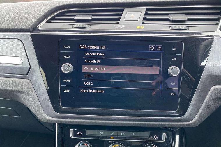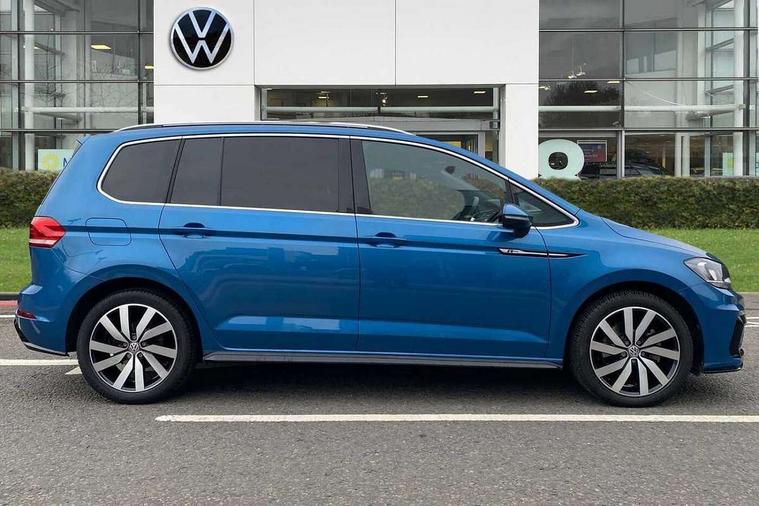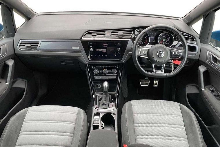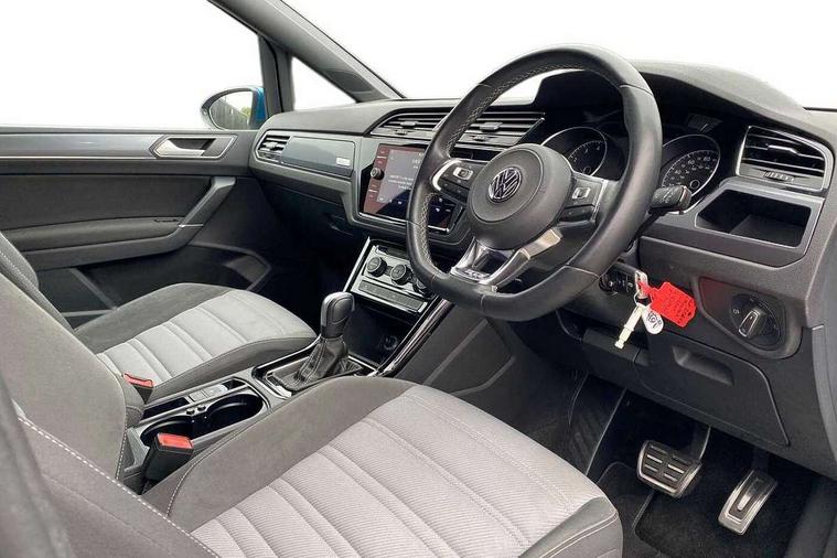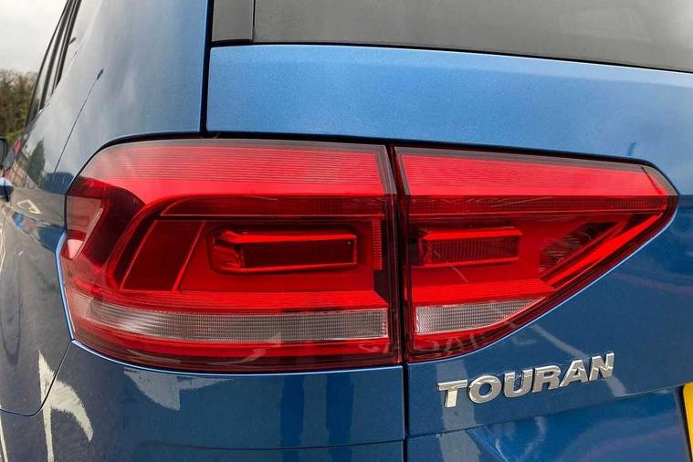 Adaptive cruise control, Audible lights on warning, Bluetooth telephone connectivity, Car information display, Driver alert system, Driver electronic voice amplification function, Electronic odometer, External temperature gauge, Flat tyre indicator, Mobile pairing with SMS function, Multi function computer, Multifunction colour display, Rev counter with fuel gauge, Speed limiter, Speed sensitive power steering, Stop/start system, Think blue trainer driver tips and journey analysis, Trip and service interval display, Petrol Particulate Filter, XDS electronic differential lock, 4x20 watt output, 8 Speakers, Audio Connectivity System, DAB Digital radio, MP3/WMA compatability, Multi device interface, SD card slot, Title and cover art display, USB connection, Aerial integrated into side window, Body colour bumpers, Body colour door handles, Body colour door mirrors with integral indicators, Chrome fog light surround, Chrome lower front bumper insert, Chrome trimmed front air intake surrounds, Chrome trimmed radiator grille louvre inserts, Chrome trimmed side windows, Daytime running lights, Dusk sensor + auto driving lights, Electric folding door mirrors with reverse activated kerb-view adjustment on passenger's door mirror, Front and rear electric windows, Fully galvanised body, Gloss black finish B pillar, Green tinted heat insulating glass, High level third brake light, Range adjustable headlights, Rear tinted glass from B-pillar backwards approx 65% tinted, Rear wash/wipe with intermittent wipe setting, Silver roof rails, Tailgate wiper- reverse gear activation, Twin chrome exhaust tailpipes, Unique R Line badging, Windscreen wipers intermittent wipe, 12V power point for Row 2, 12V socket in luggage compartment, 2 individual fold flat 3rd row seats, 2 three point seatbelts in 3rd row, 2nd row centre armrest, 2nd row centre seat converts into table, 3 single slide/fold/removable 2nd row seats, 3 Zone electronic climate control with automatic air recirculation, 3x3 point seatbelts on 2nd row with height adjust on outer seats, 4 boot load lashing points, 4 way adjustable front head restraints, 4 way driver/front passenger adjustable head restraints, 5 headrests, Aluminium kick plate, Ambient lighting in door trim, Black roof lining, Driver and front passenger under seat drawer, DSG Paddle Shifts, Dust/pollen filters, Foldable front passenger seat backrest, Front + rear carpet mats, Front and rear reading lights, Front centre armrest with storage compartment, Front comfort seats with lumbar support, Front cupholders x 2, Front passenger seat height adjust, Front seat R Line logo with rear seat backrest, Front seat storage pockets, Front seatback folding tables, Front seats with R-Line logo, Grey stitching on steering wheel, Height adjustable driver's seat, Height/reach adjust steering wheel, Illuminated glovebox, Illuminated vanity mirrors, Instrument lighting white adjustable panel illumination with red night time illumination, Interior light with delay, Isofix on 3rd row seats, Large storage compartment in roof console, Leatherette on rear of front seats, Low tunnel 2nd row seat, Luggage compartment lighting, Media box in dashboard on passenger side, Multi storage in passenger/luggage areas, Multi-function centre console with storage facilities, Multifunction leather trimmed steering wheel including leather trimmed gear knob with 3.5" screen with multifunction computer, R-Line door sill protectors, Retractable luggage cover, Split folding rear seat backrests, Stainless steel pedals, Storage bins on all doors, Convenience Pack - Touran, Mirror pack - Touran, R line styling pack - Touran, 3 point height adjustable front seatbelts, Auto hold function, Automatic post collision braking system, Door open warning reflectors, Driver/Front Passenger airbags, Drivers knee airbag, EDL + ASR, Electronic parking brake, Energy recovery system, ESC with ABS, First aid kit, Front and rear (row 2) curtain airbags, Front assist including city emergency braking, Front seat side impact airbags, Front/rear disc brakes, Hill hold control, Hydraulic Brake Assist (HBA), Loose wheel warning function, Passenger airbag deactivation system, Pre crash preventive occupant protection, Seatbelt warning lamp and buzzer, Traction control, Two tone horn, Warning triangle, Alarm with remote central locking and interior protection, Electronic engine immobiliser, Black lead grey decorative inserts dash and door panel, Chrome plated instrument surrounds, Embroidered emblems to headrestraints, 18" Marseille alloy wheels with mobility tyres and anti-theft wheel bolts,