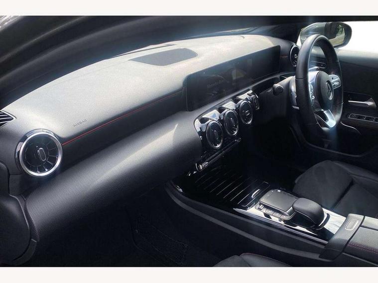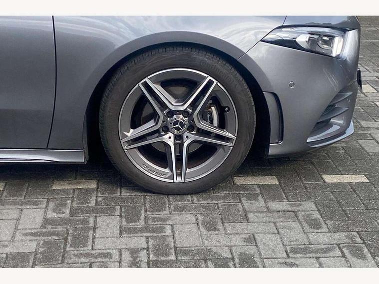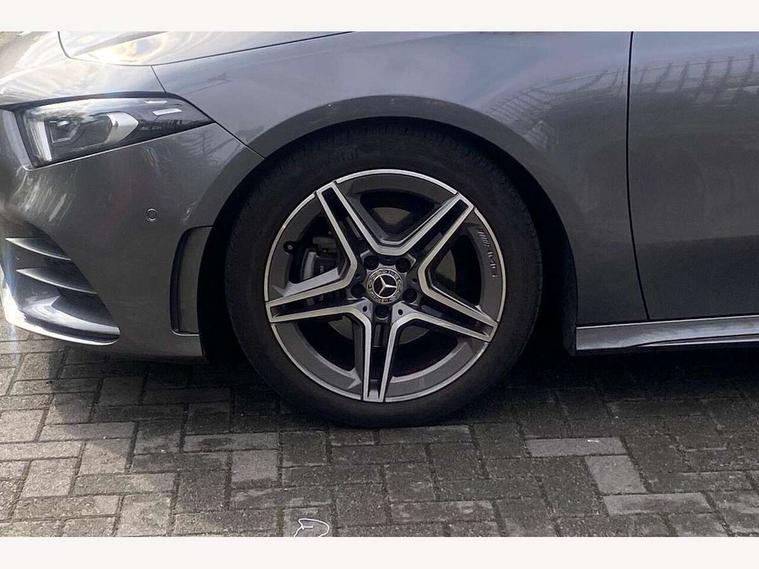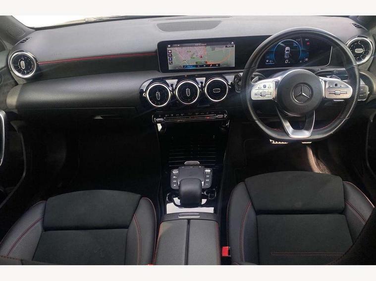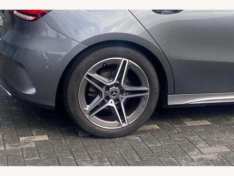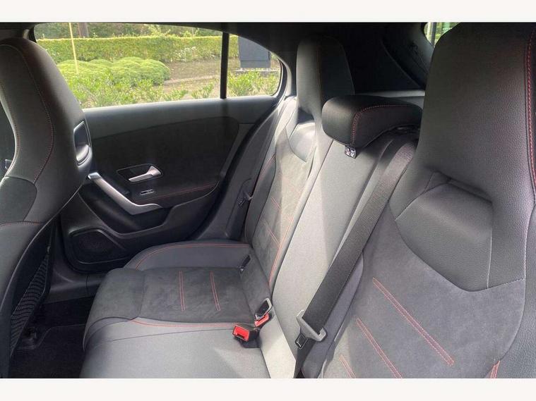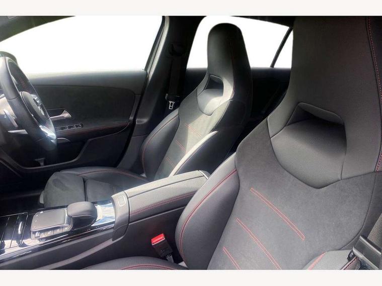 10.25" media display, 180 degree rear view camera with parking guidelines, 7" colour screen in instrument panel, Active lane keep assist, Active park assist with parktronic system including front and rear parking sensors, Attention assist, Brake pad wear indicator warning light, Car wash mode, Cruise control + speed limiter, Direct steering, Dual bluetooth interfaces, DYNAMIC SELECT with a choice of driving modes (ECO, Comfort, Sport and Individual), ECO start/stop function, Fluid level warning indicator for fuel, oil, coolant and washer fluid, Hard-disk navigation, Hey Mercedes Voice activation, Lamp failure indicator, Mercedes me connect including emergency call system, accident recovery, breakdown and maintenance management, Outside temperature gauge, Owners manual in English, Pre-installation for private car sharing, Pre-installation for Vehicle Monitoring, Pre-installation for Vehicle Setup, Preinstallation for Mercedes Benz link, Service indicator (ASSYST), Smartphone integration with Apple CarPlay and Android auto, Speed sensitive power steering, Trip computer, Wireless charging, Lowered comfort suspension, Rear axle torsion beam, 2 USB ports (type C) in rear stowage compartment and one in front of center console, 6 speakers, DAB Digital radio, MBUX multimedia system with DAB digital radio and touchpad including satellite navigation, Mercedes-Benz sound system - 100W, 4 Electric Front and Rear windows, Adaptive brake lights, AMG bodystyling - Front apron with splitter in chrome, rear apron with chrome trim and chrome visible trim elements in tailpipe, Black weather strip, Body colour bumpers, Body colour door handles, Body colour side skirt, Body coloured door mirrors, Chrome beltline trim, Diamond radiator grille with chrome pins and silver louvre + chrome insert, Electric adjustable and heated door mirrors with integrated LED side indicators, Exhaust system - Twin visible tailpipes in polished stainless steel, Headlamp assist automatic headlamp activation, Heated glass rear windscreen + timer control, LED high performance headlamps with integrated LED daytime running lights, LED tail lamp, LED third brake light, Privacy glass, Radio aerial, Rain sensing windscreen wipers with two sensitivity settings, Rear fog lights, Rear wiper, Window line trim strip in chrome, 3 Spoke flat bottom leather multi function steering wheel with perforated leather in grip area, 40:20:40 split folding rear seats, Artico man-made leather/Microfibre Dinamica upholstery with red contrast stitching, Auto Mercedes-Benz child seat recognition sensor, Black air vents with surround in silver chrome, Black roof lining, Brushed stainless steel sports pedals with rubber studs, Controller on centre console with chrome surround, Floor mats with stitched edging and AMG lettering, Front centre armrest with storage compartment, Front door sills with Mercedes Benz lettering, Front seat backs luggage nets, Front seat cushion length adjustment, Galvanished gear shift paddles on steering wheel, Heated front seats, Height/reach adjustable steering column, Interior mirror with reading lamps in black and frameless, Manual height adjustable front seats, Rear head restraints, Seat occupancy sensor for front passenger seat, Sports seats with integrated headrests, Stowage compartment in centre console with retractable cover, Sunvisors with illuminated vanity mirrors, Touchpad on center console, Twin front cupholders, Two zone thermotronic luxury automatic climate control, Light and sight pack - A Class, Mirror package - A Class, Seat comfort pack - A Class, 3 rear 3 point seatbelts, ABS with Brake Assist, Active bonnet, Active brake assist includes forward collision warning system with autonomous braking, Adaptive brake assist with hold function and hill start assist, Black seatbelts, Childproof locks manually operated for rear doors and electrically operated for rear power windows, Crash responsive emergency lighting, Driver and passenger head and side airbags, Drivers knee airbag, Dual stage driver/passenger airbags, Electronic parking brake, ESP curve dynamic assist, ESP with ASR, Front and rear seatbelt reminder, Front brake callipers with Mercedes Benz lettering, ISOFIX and top tether child seat fixing points in two outer rear seats, Tyre pressure monitoring system, Warning triangle and first aid kit, Window airbags, Alarm system/interior protection/immobiliser, Keyless Go, Remote central locking and crash sensor with emergency opening function, Urban guard vehicle protection system with immobiliser and interior protection, Dinamica microfibre trim in black, 18" AMG 5 twin spoke light alloy wheels in titanium grey with highsheen finish, Summer tyres, Tirefit sealant kit,