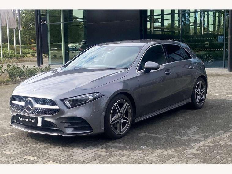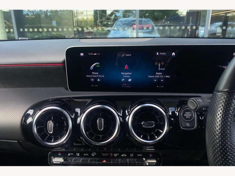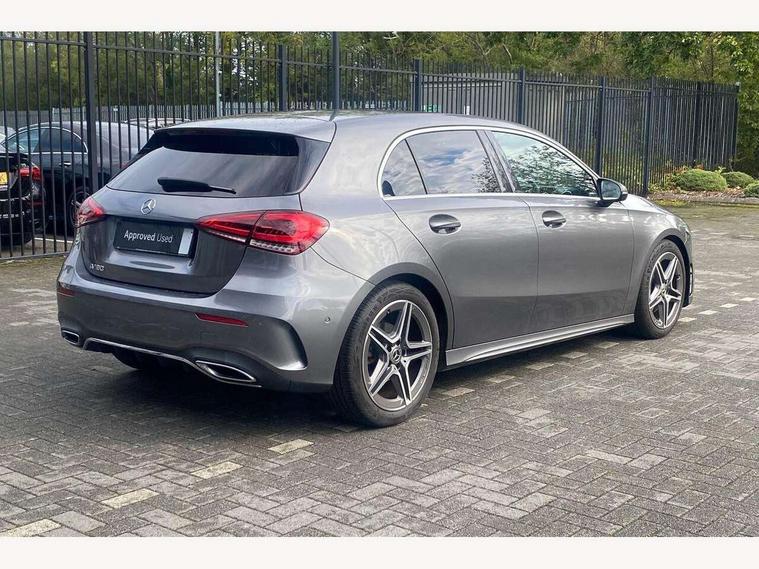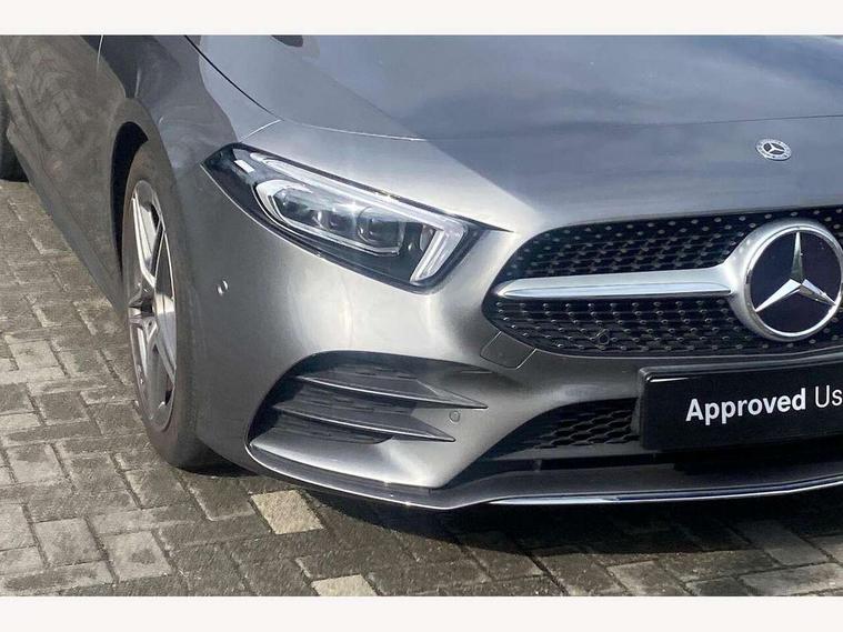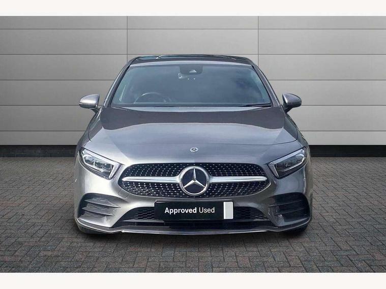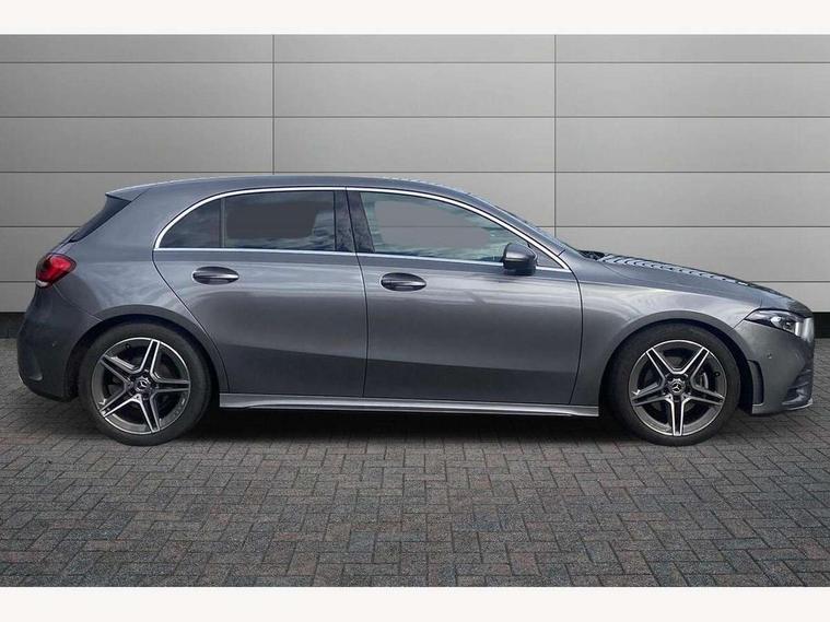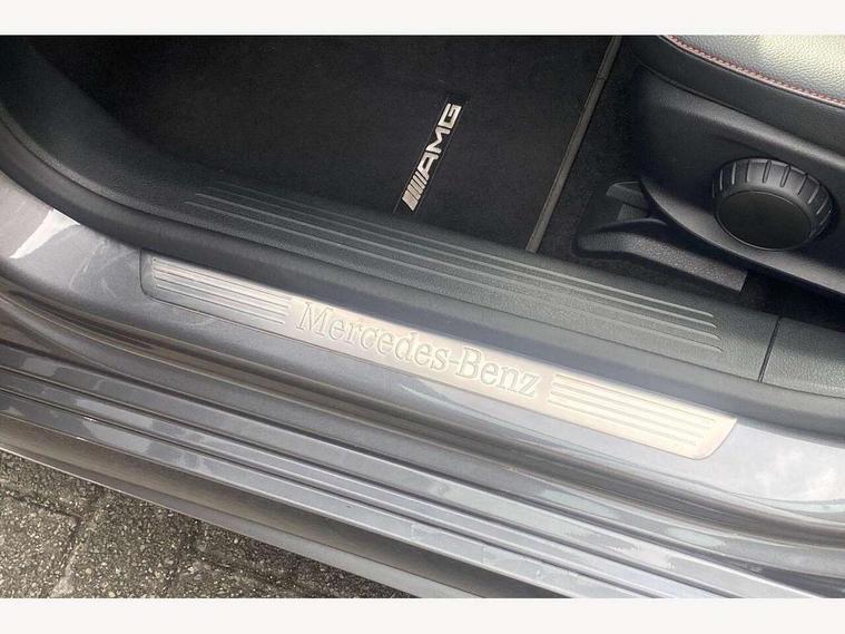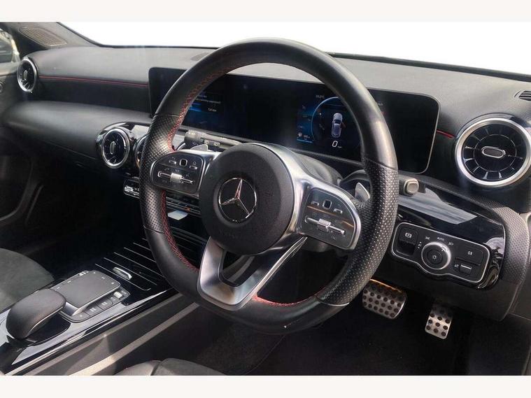 10.25" media display, 180 degree rear view camera with parking guidelines, 7" colour screen in instrument panel, Active lane keep assist, Active park assist with parktronic system including front and rear parking sensors, Attention assist, Brake pad wear indicator warning light, Car wash mode, Cruise control + speed limiter, Direct steering, Dual bluetooth interfaces, DYNAMIC SELECT with a choice of driving modes (ECO, Comfort, Sport and Individual), ECO start/stop function, Fluid level warning indicator for fuel, oil, coolant and washer fluid, Hard-disk navigation, Hey Mercedes Voice activation, Lamp failure indicator, Mercedes me connect including emergency call system, accident recovery, breakdown and maintenance management, Outside temperature gauge, Owners manual in English, Pre-installation for private car sharing, Pre-installation for Vehicle Monitoring, Pre-installation for Vehicle Setup, Preinstallation for Mercedes Benz link, Service indicator (ASSYST), Smartphone integration with Apple CarPlay and Android auto, Speed sensitive power steering, Trip computer, Wireless charging, Lowered comfort suspension, Rear axle torsion beam, 2 USB ports (type C) in rear stowage compartment and one in front of center console, 6 speakers, DAB Digital radio, MBUX multimedia system with DAB digital radio and touchpad including satellite navigation, Mercedes-Benz sound system - 100W, 4 Electric Front and Rear windows, Adaptive brake lights, AMG bodystyling - Front apron with splitter in chrome, rear apron with chrome trim and chrome visible trim elements in tailpipe, Black weather strip, Body colour bumpers, Body colour door handles, Body colour side skirt, Body coloured door mirrors, Chrome beltline trim, Diamond radiator grille with chrome pins and silver louvre + chrome insert, Electric adjustable and heated door mirrors with integrated LED side indicators, Exhaust system - Twin visible tailpipes in polished stainless steel, Headlamp assist automatic headlamp activation, Heated glass rear windscreen + timer control, LED high performance headlamps with integrated LED daytime running lights, LED tail lamp, LED third brake light, Privacy glass, Radio aerial, Rain sensing windscreen wipers with two sensitivity settings, Rear fog lights, Rear wiper, Window line trim strip in chrome, 3 Spoke flat bottom leather multi function steering wheel with perforated leather in grip area, 40:20:40 split folding rear seats, Artico man-made leather/Microfibre Dinamica upholstery with red contrast stitching, Auto Mercedes-Benz child seat recognition sensor, Black air vents with surround in silver chrome, Black roof lining, Brushed stainless steel sports pedals with rubber studs, Controller on centre console with chrome surround, Floor mats with stitched edging and AMG lettering, Front centre armrest with storage compartment, Front door sills with Mercedes Benz lettering, Front seat backs luggage nets, Front seat cushion length adjustment, Galvanished gear shift paddles on steering wheel, Heated front seats, Height/reach adjustable steering column, Interior mirror with reading lamps in black and frameless, Manual height adjustable front seats, Rear head restraints, Seat occupancy sensor for front passenger seat, Sports seats with integrated headrests, Stowage compartment in centre console with retractable cover, Sunvisors with illuminated vanity mirrors, Touchpad on center console, Twin front cupholders, Two zone thermotronic luxury automatic climate control, Light and sight pack - A Class, Mirror package - A Class, Seat comfort pack - A Class, 3 rear 3 point seatbelts, ABS with Brake Assist, Active bonnet, Active brake assist includes forward collision warning system with autonomous braking, Adaptive brake assist with hold function and hill start assist, Black seatbelts, Childproof locks manually operated for rear doors and electrically operated for rear power windows, Crash responsive emergency lighting, Driver and passenger head and side airbags, Drivers knee airbag, Dual stage driver/passenger airbags, Electronic parking brake, ESP curve dynamic assist, ESP with ASR, Front and rear seatbelt reminder, Front brake callipers with Mercedes Benz lettering, ISOFIX and top tether child seat fixing points in two outer rear seats, Tyre pressure monitoring system, Warning triangle and first aid kit, Window airbags, Alarm system/interior protection/immobiliser, Keyless Go, Remote central locking and crash sensor with emergency opening function, Urban guard vehicle protection system with immobiliser and interior protection, Dinamica microfibre trim in black, 18" AMG 5 twin spoke light alloy wheels in titanium grey with highsheen finish, Summer tyres, Tirefit sealant kit,
